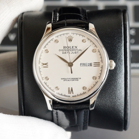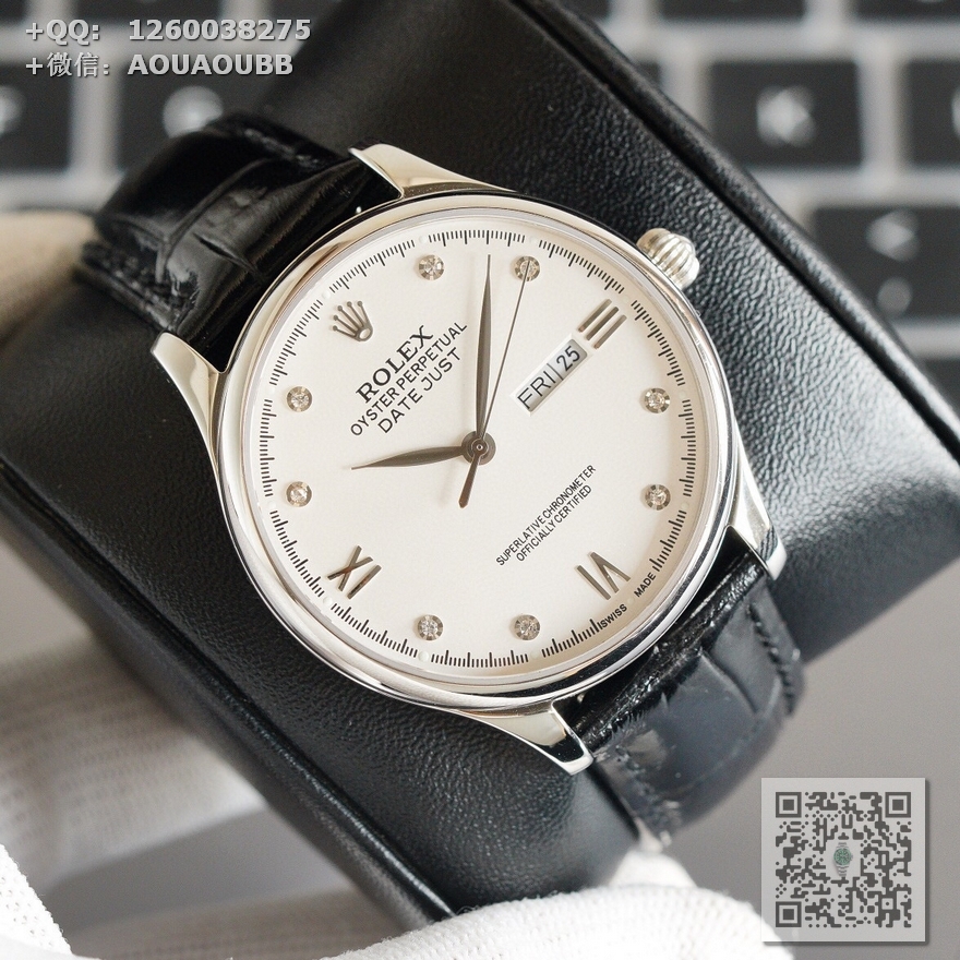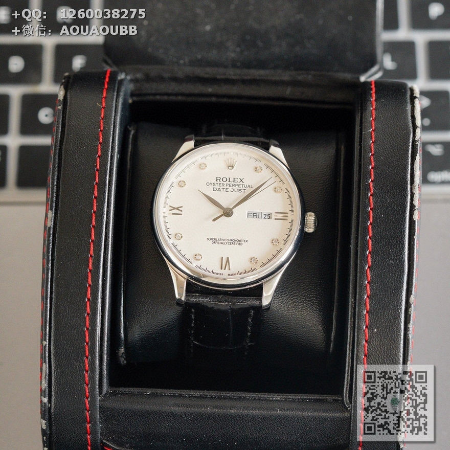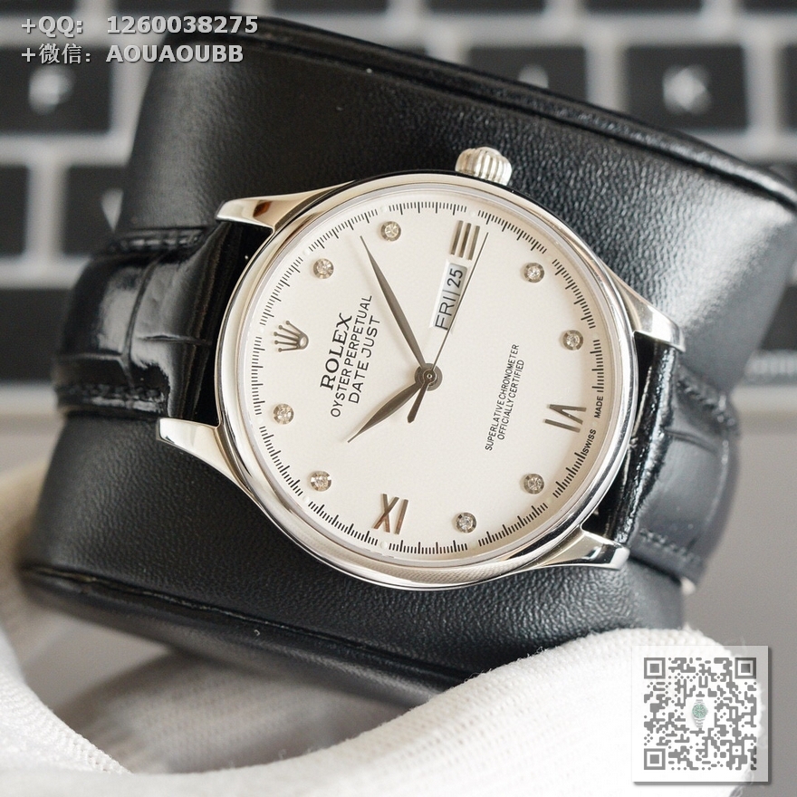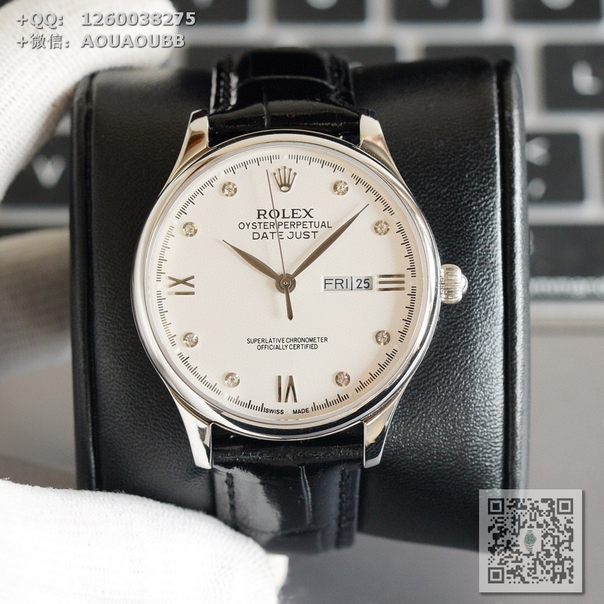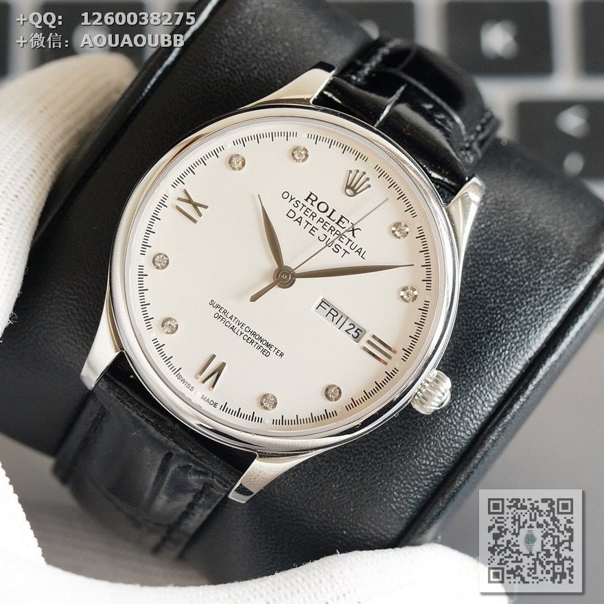 【产品介绍】劳力士经典日志系列双日历男士商务全自动机械腕表 ,经典大三针设计,尊贵大气,绅士风范,卓越品质,热卖全城。采用进口全自动机械机芯,顶级精钢表壳,进口小牛皮表带,蓝宝石镜面,尺寸40mm