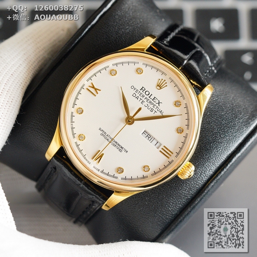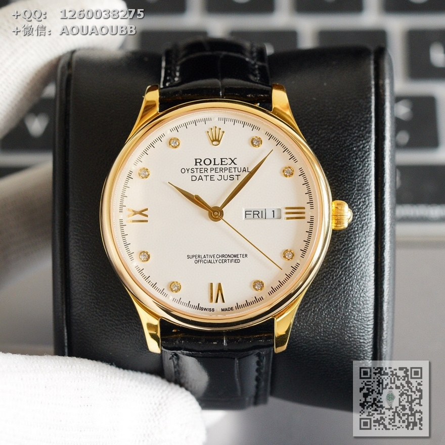 【产品介绍】劳力士经典日志系列双日历男士商务全自动机械腕表 ,经典大三针设计,尊贵大气,绅士风范,卓越品质,热卖全城。采用进口全自动机械机芯,顶级精钢表壳,进口小牛皮表带,蓝宝石镜面,尺寸40mm