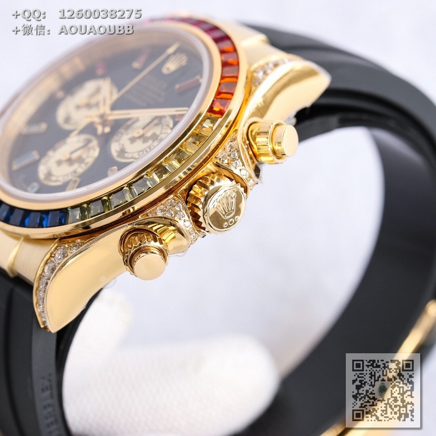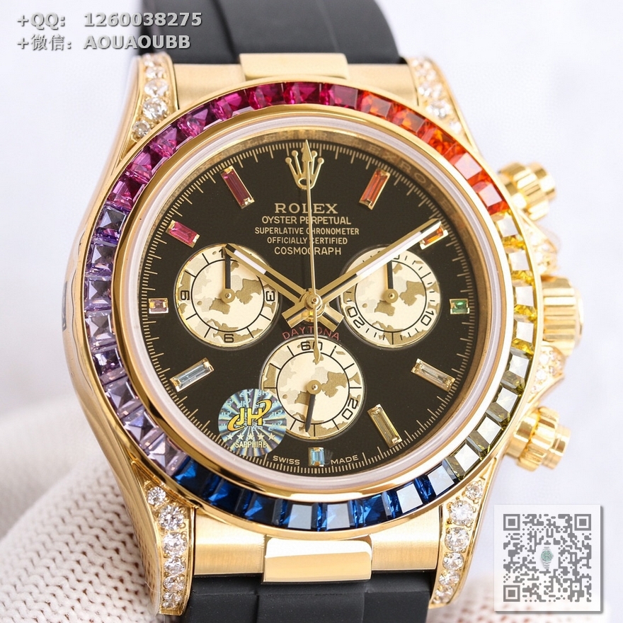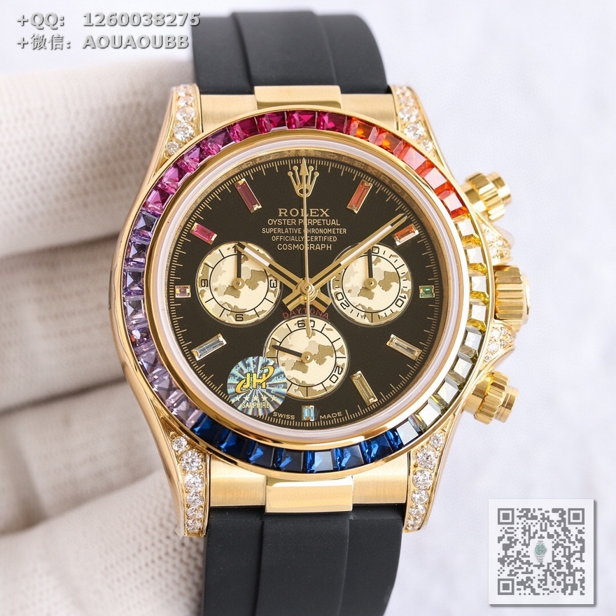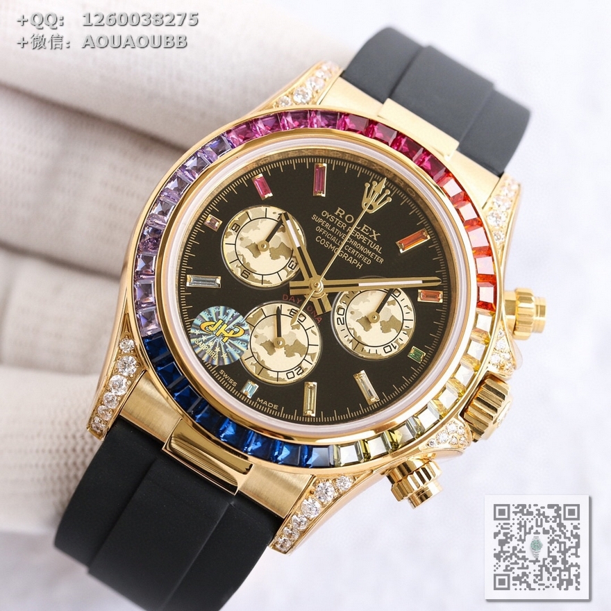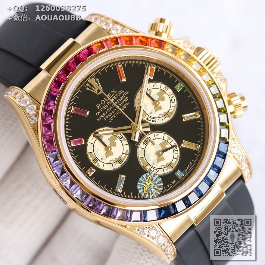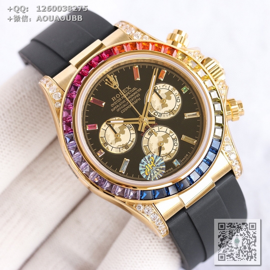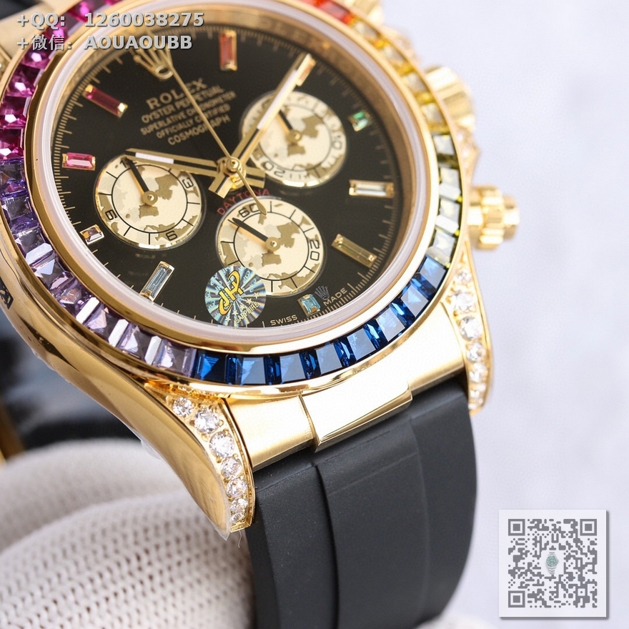 【产品介绍】AR高端精品 劳力士宇宙彩虹迪,超A款式,硕石面,烫金面,表扣细腻整洁,表壳按键防滑齿纹更加明显立体,精益求精,原版复刻!完美品质!