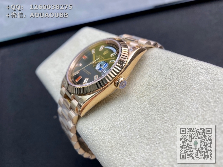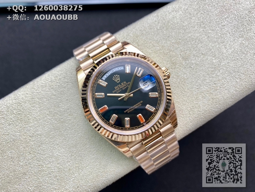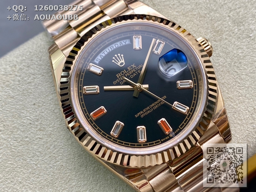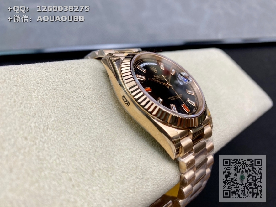 【产品介绍】EW Factory力作V2升级版 劳力士Rolex星期日志型40mm终极版 搭载原版3255自动机械机芯228239系列腕表,40毫米直径,研发耗时16个月!原版1比1开模。重点升级了以下几个要点:1.表壳直径与2019最新版3255型系列一致40毫米。2.表带头粒与原装一致,5件拼装,难度非常高,表带与表壳交错型无缝连结。3.把头皇冠处下方修改为与原版一致的两个圆点。4.表扣与原版一致里面加装了弹簧,字体大小工艺和原装一致。5.表壳侧面与原版一致增加二维码防伪、底盖有验货二维码。6.表壳与表带连接处的壳身刻有与原版一致的型号数字228239。7.表的内影圈刻上了与保修卡一致的产品流水数字,而且做到了正品一致的一表一卡一码 绝不重复)8.附全套原版套装配置包括(保修卡,说明书,型号条型码与正品一致)全套包装与正品一致(市面上真正的原装一比一星期日历型)