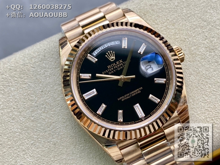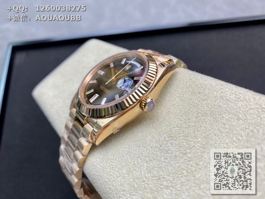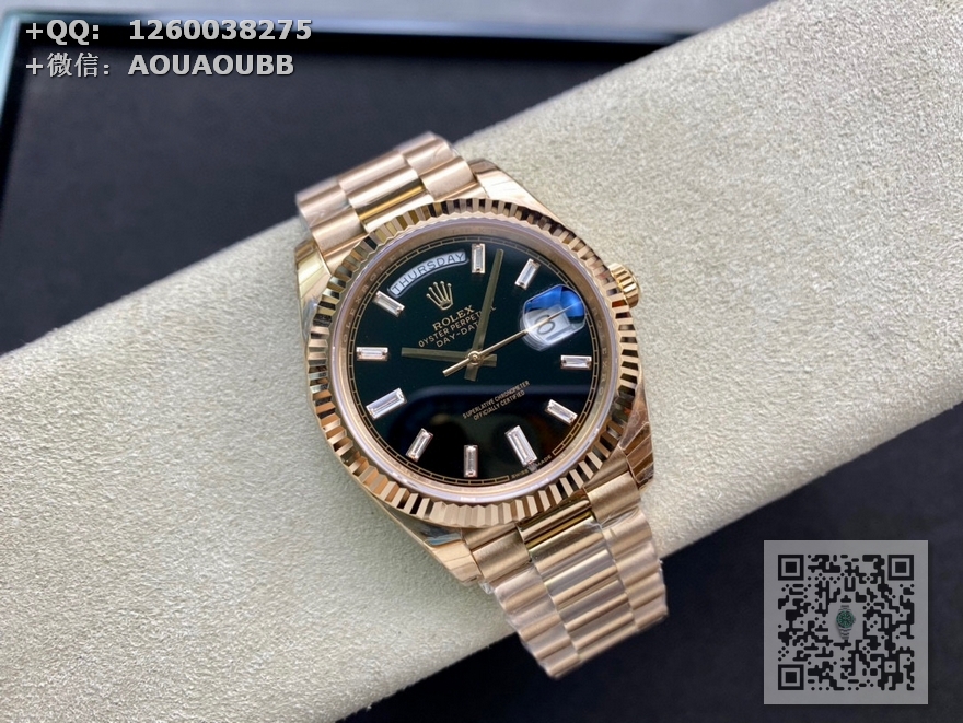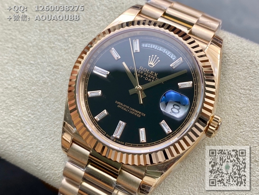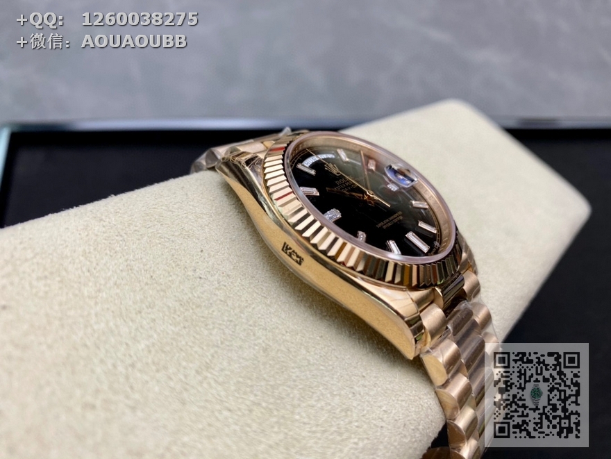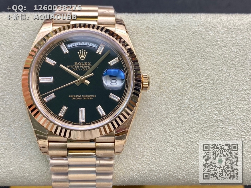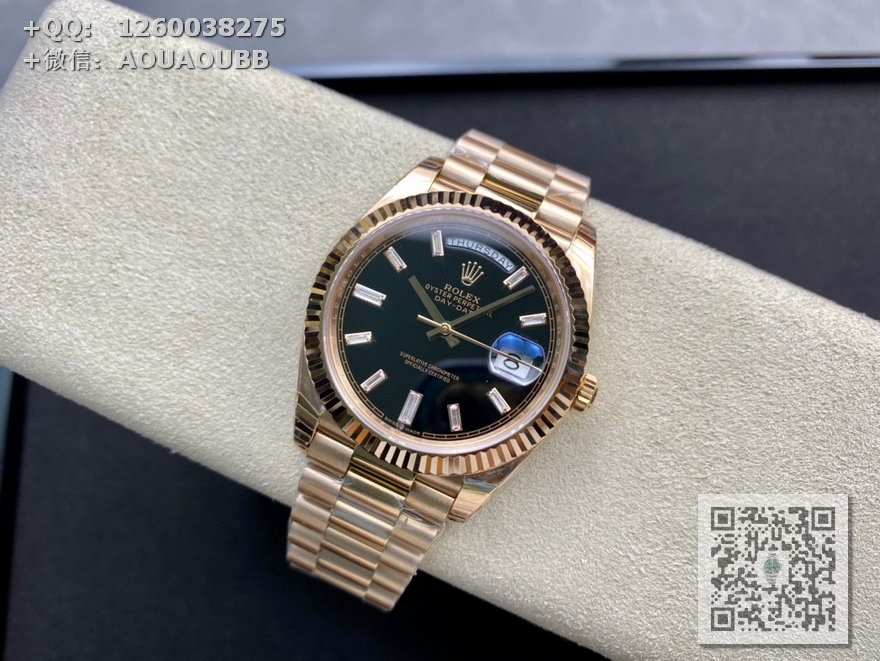 【产品介绍】EW Factory力作V2升级版 劳力士Rolex星期日志型40mm终极版 搭载原版3255自动机械机芯228239系列腕表,40毫米直径,研发耗时16个月!原版1比1开模。重点升级了以下几个要点:1.表壳直径与2019最新版3255型系列一致40毫米。2.表带头粒与原装一致,5件拼装,难度非常高,表带与表壳交错型无缝连结。3.把头皇冠处下方修改为与原版一致的两个圆点。4.表扣与原版一致里面加装了弹簧,字体大小工艺和原装一致。5.表壳侧面与原版一致增加二维码防伪、底盖有验货二维码。6.表壳与表带连接处的壳身刻有与原版一致的型号数字228239。7.表的内影圈刻上了与保修卡一致的产品流水数字,而且做到了正品一致的一表一卡一码 绝不重复)8.附全套原版套装配置包括(保修卡,说明书,型号条型码与正品一致)全套包装与正品一致(市面上真正的原装一比一星期日历型)