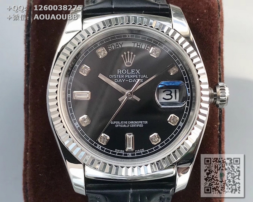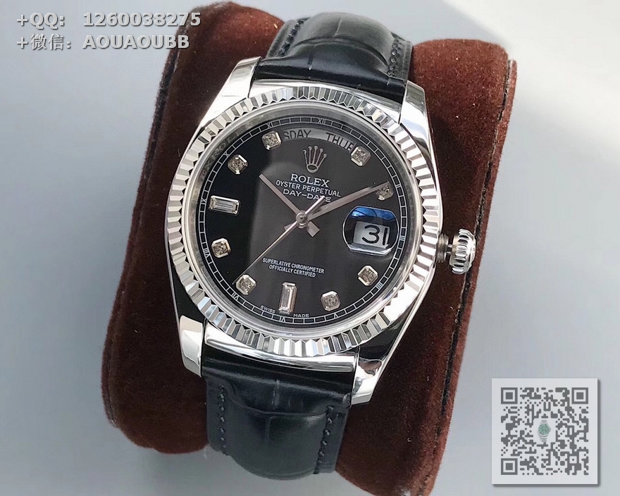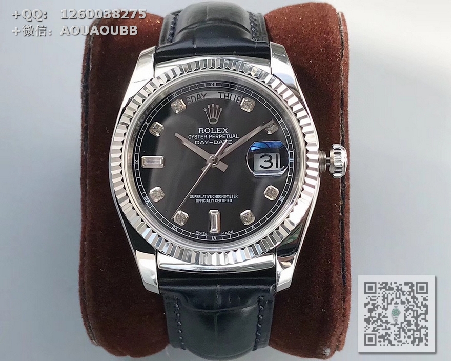 【产品介绍】N厂现货供应!不一样的品质,劳力士最经典的系列除了DD没有之一,劳力士day-date 36mm中性尺寸星期日历型系列新款少量到货 采用仿制鳄鱼皮材质表带,原装表扣,表盘采用美国进口钻石原产研制成性,还原原装一切真实写照!每表均附带专柜原厂标签!为确保与官方逞一致特定制复刻原装3255全自动机械机芯!白壳与金玫壳耳背刻意针对正品修正,白壳耳背为三处刻字,而金玫壳因为有金属材料,与正品一致表耳为4个位置刻字!N厂独具匠心之作!好货从来不过多的描述,欢迎订购!