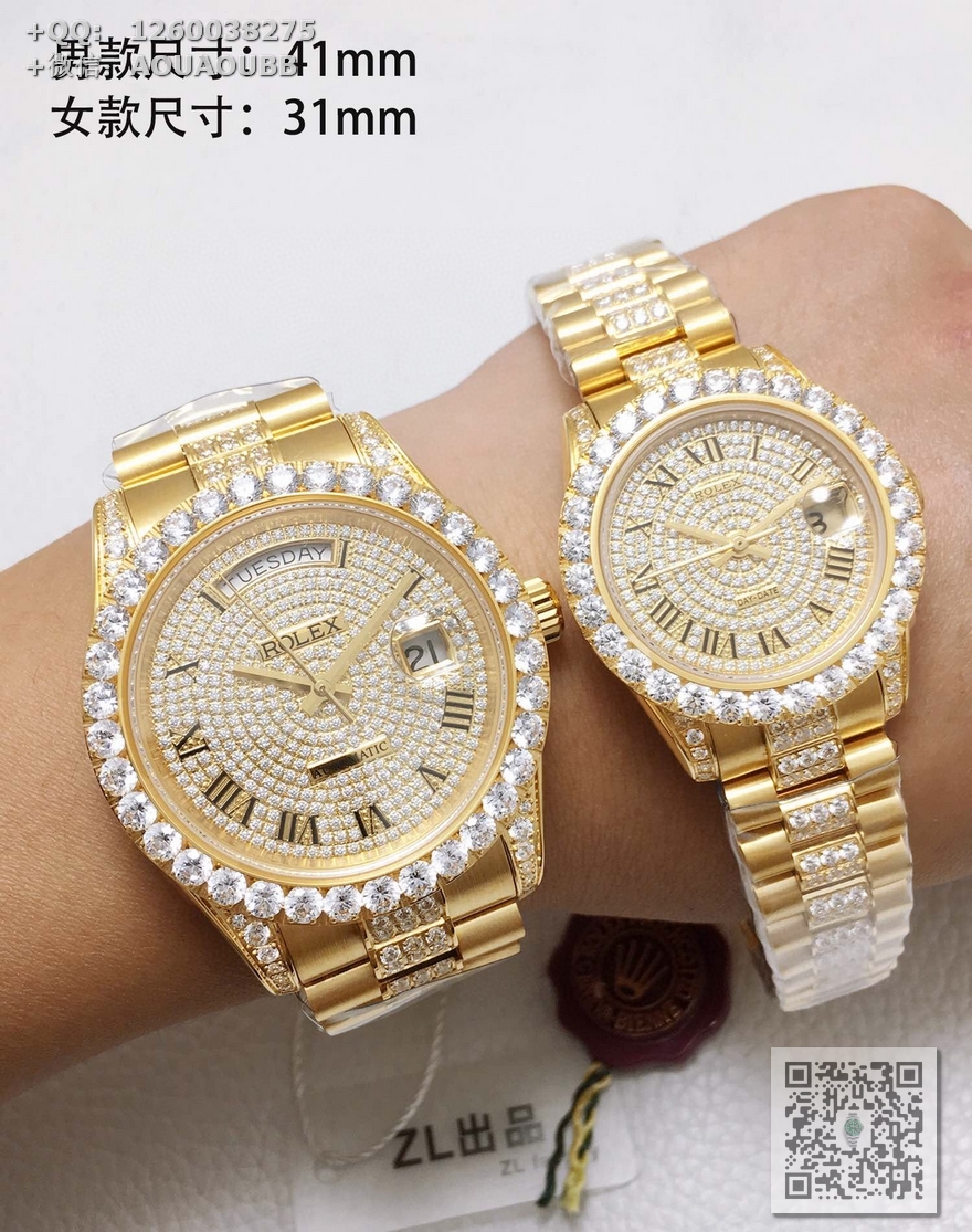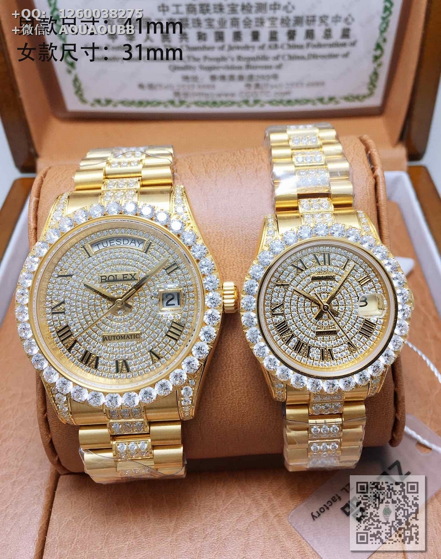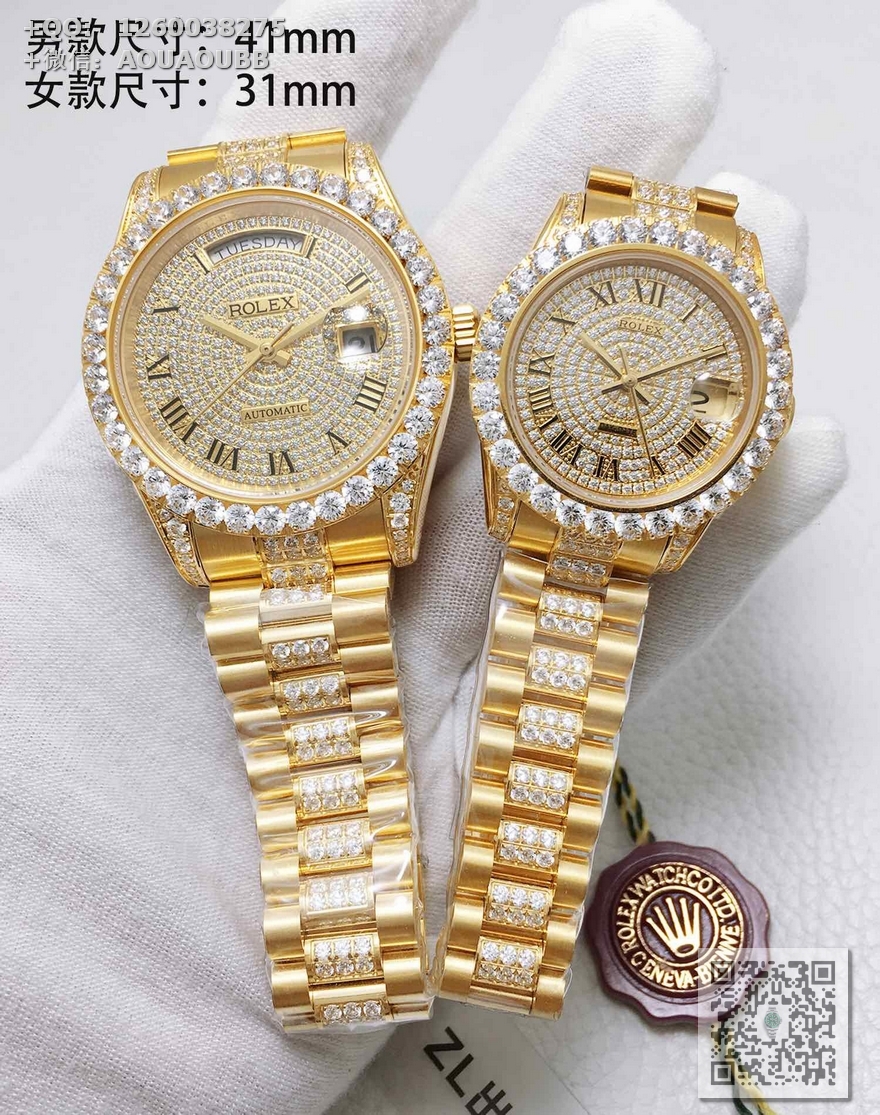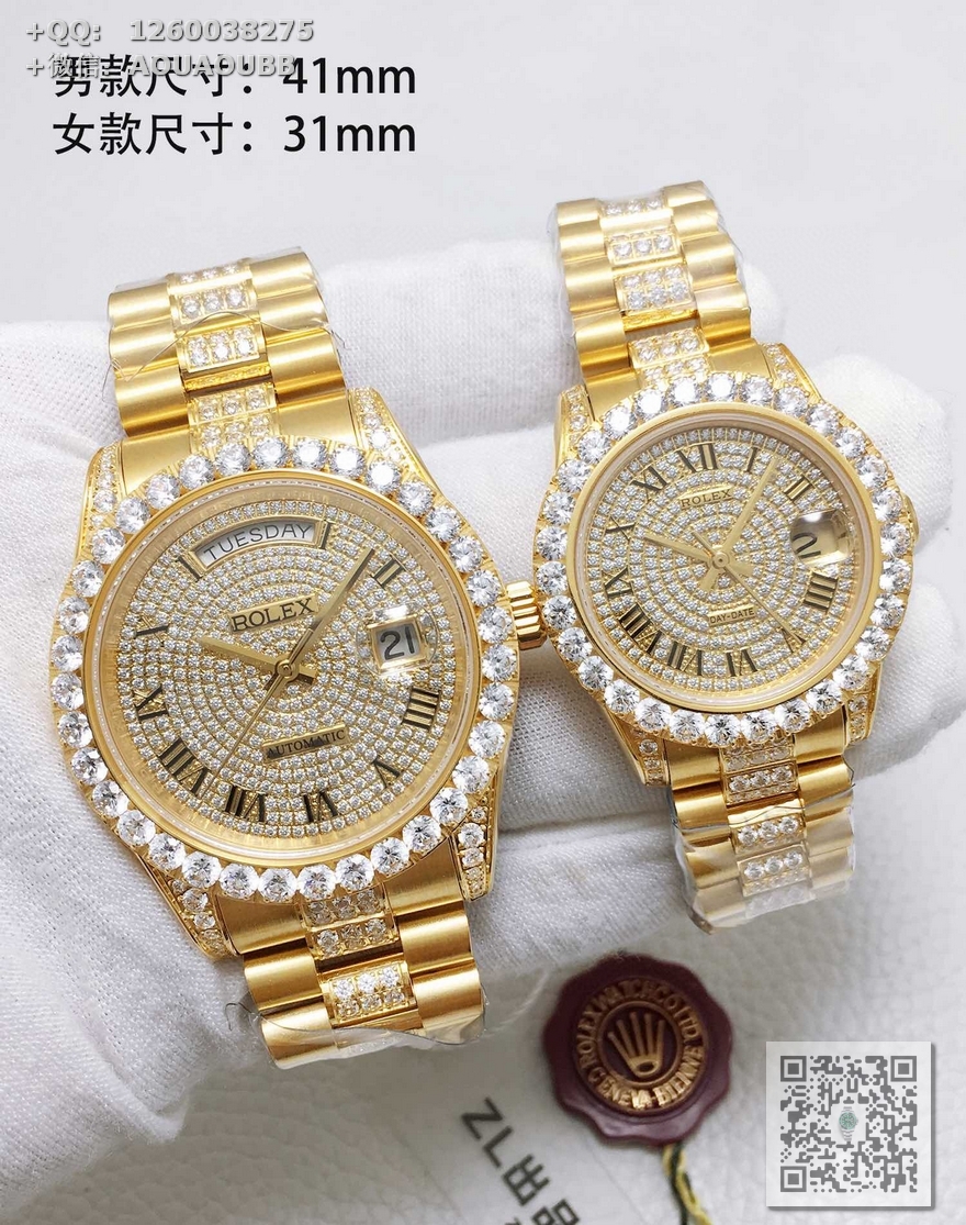 【产品介绍】V3升级版本 原版开模复刻所有零件与官版互通!尺寸重量均与正版一致,劳.力士Rolex日志型星期日历型️天星经典款系列情侣挚爱对表,男直径41mm,女直径31mm,厚度11mm【机芯】全自动机械表原装进口机芯,所有机芯出厂均严格调试确保走时精准,性能稳定,零返修【表盘字面】采用顶级施华洛世奇美钻,手工镶嵌工艺而成精益求精理念设计【表壳表扣】顶级材质的904L精钢表壳搭配904L精钢表带/原装保险扣,️表扣内侧抛光腐蚀工艺钢印!️表带采用904L蚝式钢打造,表链中排镶满最顶级施华洛世奇美钻,效果惊艳,光华四射【表镜】抗刮损蓝宝石水晶玻璃,防反光凸透式放大日历窗,纯水刀切割!采用最顶级的施华洛世奇美钻,历经数日的手工镶嵌而成,永不掉钻的承诺!每个极致的细节都是顶级V3工厂匠心开发诚意之作 表里如一 独具匠心!欢迎各路表友品鉴