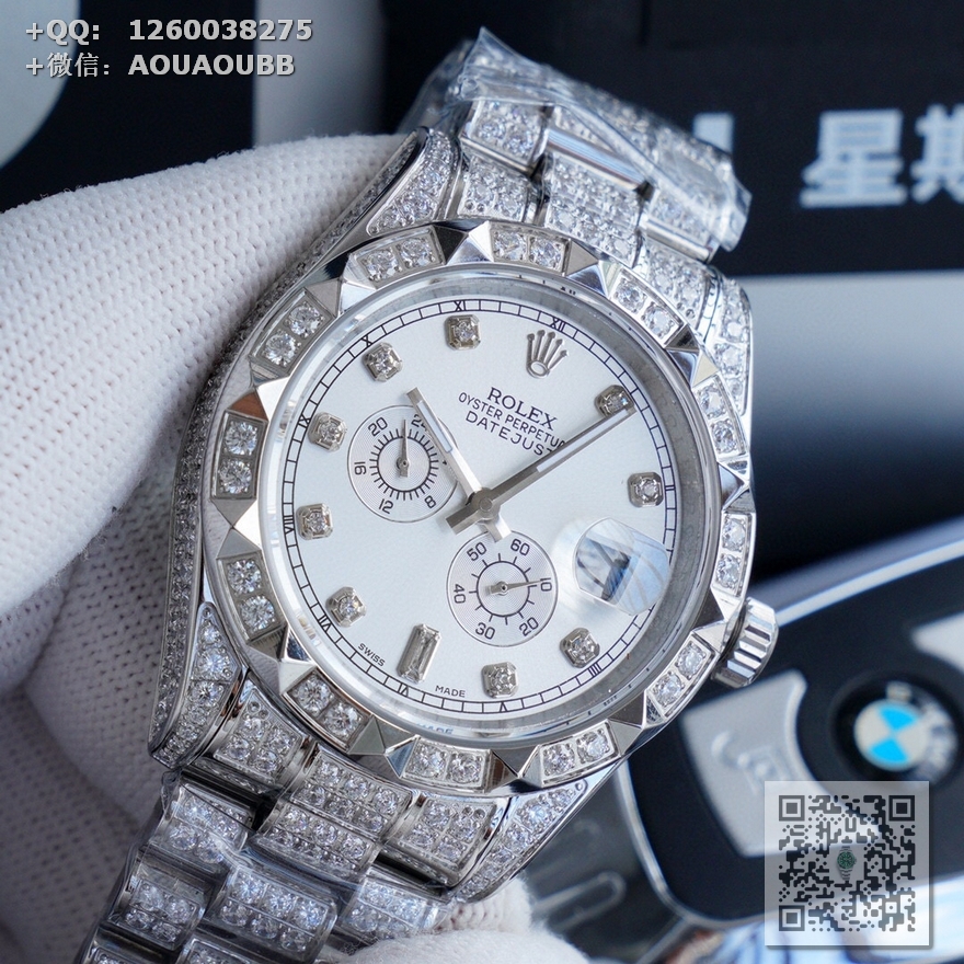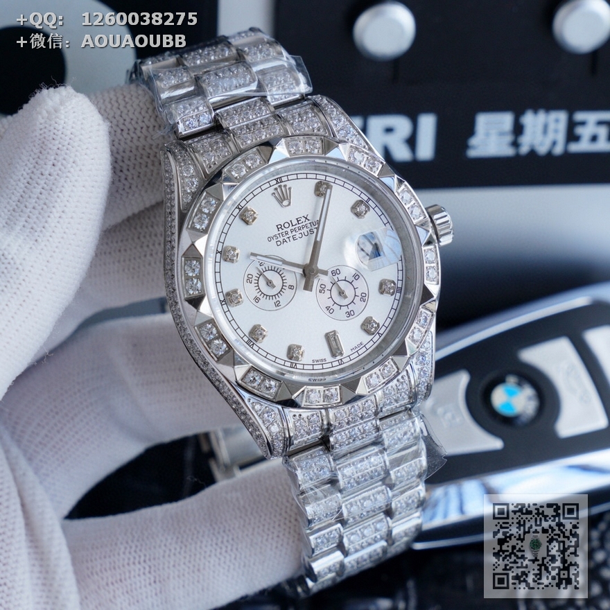 【产品介绍】TW顶级V2升级版 推出劳力士Rolex日志型星期日历型️天星经典款系列,直径41mm,厚度12mm【机芯】全自动机械表原装进口机芯,所有机芯出厂均严格调试确保走时精准,性能稳定,零返修【表盘字面】采用顶级施华洛世奇美钻,手工镶嵌工艺而成精益求精理念设计【表盘功能】️字位24小时计时功能️字位跑秒计时功能【表壳表扣】顶级材质的904L精钢表壳搭配904L精钢表带/原装保险扣,️表扣内侧抛光腐蚀工艺钢印!️表带采用904L蚝式钢打造,蚝式表带由两排宽大、平整的表链节组成,极其坚固,表链全身整齐镶满最顶级施华洛世奇美钻,效果惊艳,光华四射【表镜】抗刮损蓝宝石水晶玻璃,防反光凸透式放大日历窗,纯水刀切割!采用最顶级的施华洛世奇美钻,历经数日的手工镶嵌而成,永不掉钻的承诺!每个极致的细节都是顶级TW工厂匠心开发ZL诚意之作 表里如一 独具匠心!欢迎各路表友品鉴!️请认准独家品质