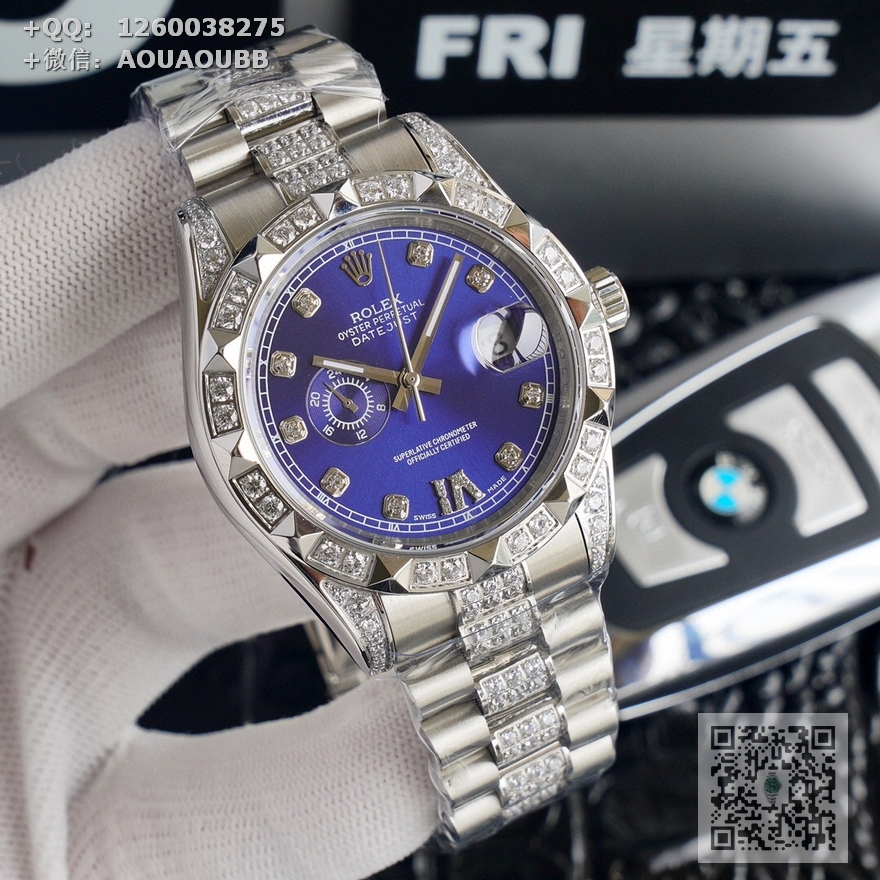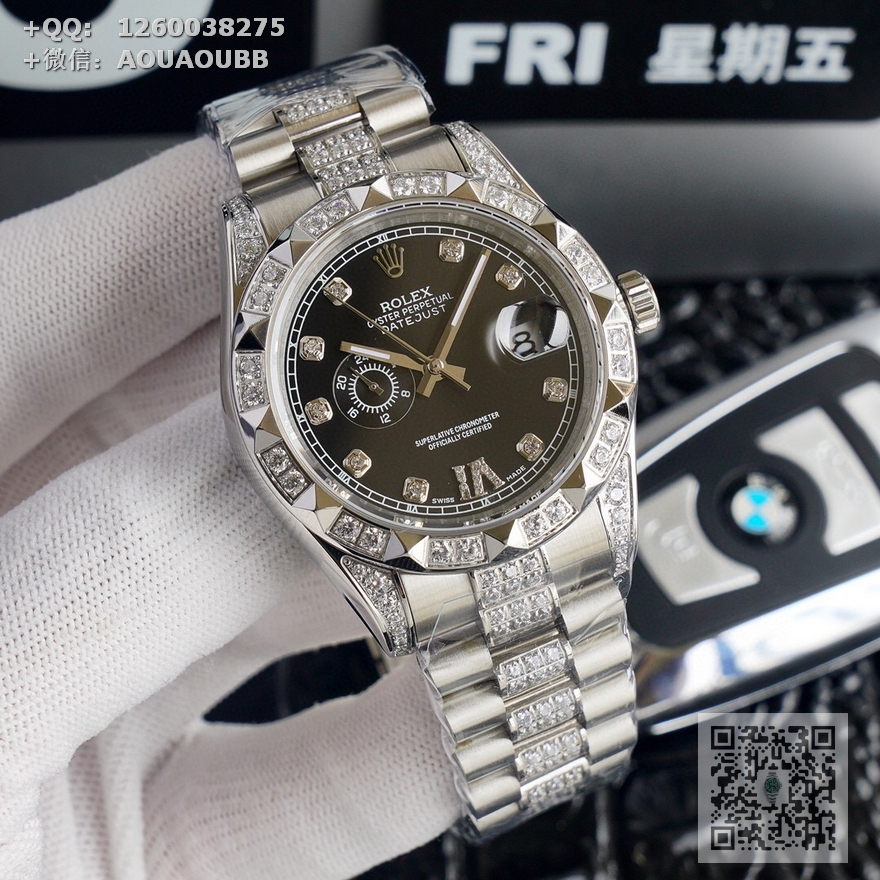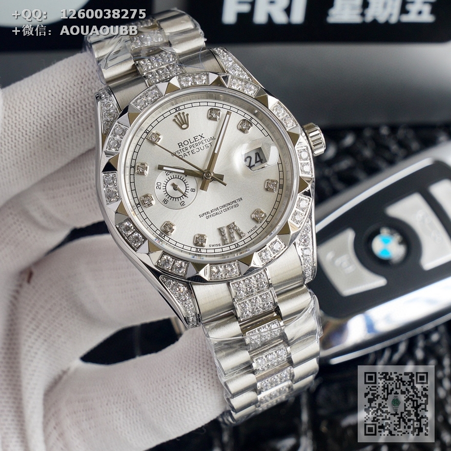 【产品介绍】TW顶级V2升级版 推出劳力士Rolex日志型星期日历型️天星经典款系列,直径41mm,厚度12mm【机芯】全自动机械表原装进口机芯,所有机芯出厂均严格调试确保走时精准,性能稳定,零返修【表盘字面】采用顶级施华洛世奇美钻,手工镶嵌工艺而成精益求精理念设计【表盘功能】️字位24小时计时功能️字位跑秒计时功能【表壳表扣】顶级材质的904L精钢表壳搭配904L精钢表带/原装保险扣,️表扣内侧抛光腐蚀工艺钢印!️表带采用904L蚝式钢打造,蚝式表带由两排宽大、平整的表链节组成,极其坚固,表链全身整齐镶满最顶级施华洛世奇美钻,效果惊艳,光华四射【表镜】抗刮损蓝宝石水晶玻璃,防反光凸透式放大日历窗,纯水刀切割!采用最顶级的施华洛世奇美钻,历经数日的手工镶嵌而成,永不掉钻的承诺!每个极致的细节都是顶级TW工厂匠心开发ZL诚意之作 表里如一 独具匠心!欢迎各路表友品鉴!️请认准独家品质