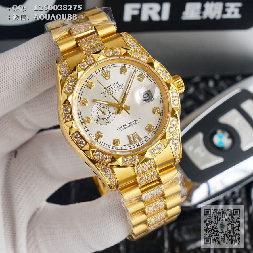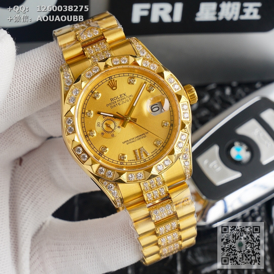 【产品介绍】TW顶级V2升级版 推出劳力士Rolex日志型星期日历型️天星经典款系列,直径41mm,厚度12mm【机芯】全自动机械表原装进口机芯,所有机芯出厂均严格调试确保走时精准,性能稳定,零返修【表盘字面】采用顶级施华洛世奇美钻,手工镶嵌工艺而成精益求精理念设计【表盘功能】️字位24小时计时功能️字位跑秒计时功能【表壳表扣】顶级材质的904L精钢表壳搭配904L精钢表带/原装保险扣,️表扣内侧抛光腐蚀工艺钢印!️表带采用904L蚝式钢打造,蚝式表带由两排宽大、平整的表链节组成,极其坚固,表链全身整齐镶满最顶级施华洛世奇美钻,效果惊艳,光华四射【表镜】抗刮损蓝宝石水晶玻璃,防反光凸透式放大日历窗,纯水刀切割!采用最顶级的施华洛世奇美钻,历经数日的手工镶嵌而成,永不掉钻的承诺!每个极致的细节都是顶级TW工厂匠心开发ZL诚意之作 表里如一 独具匠心!欢迎各路表友品鉴!️请认准独家品质