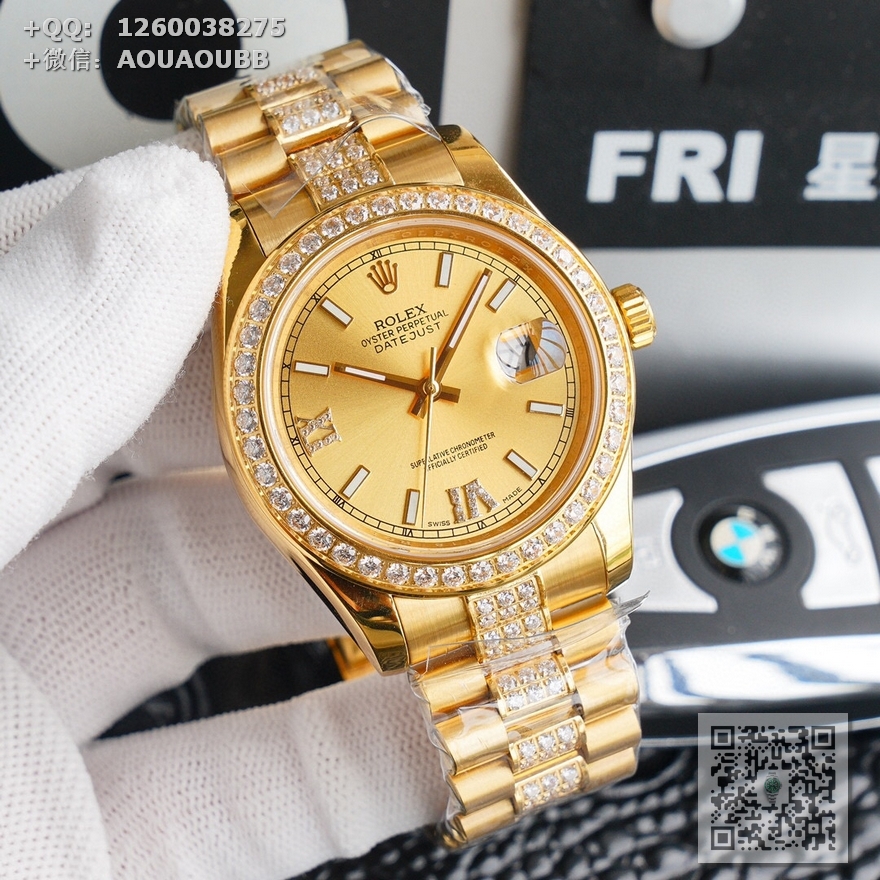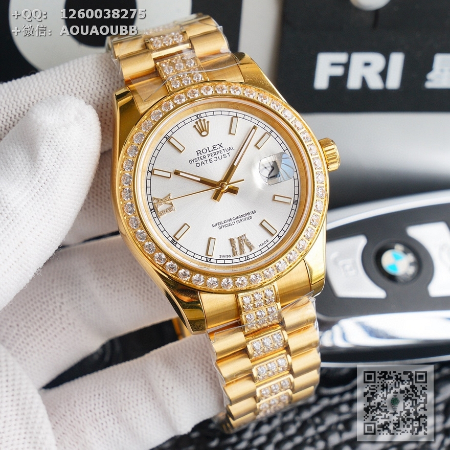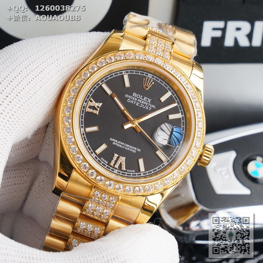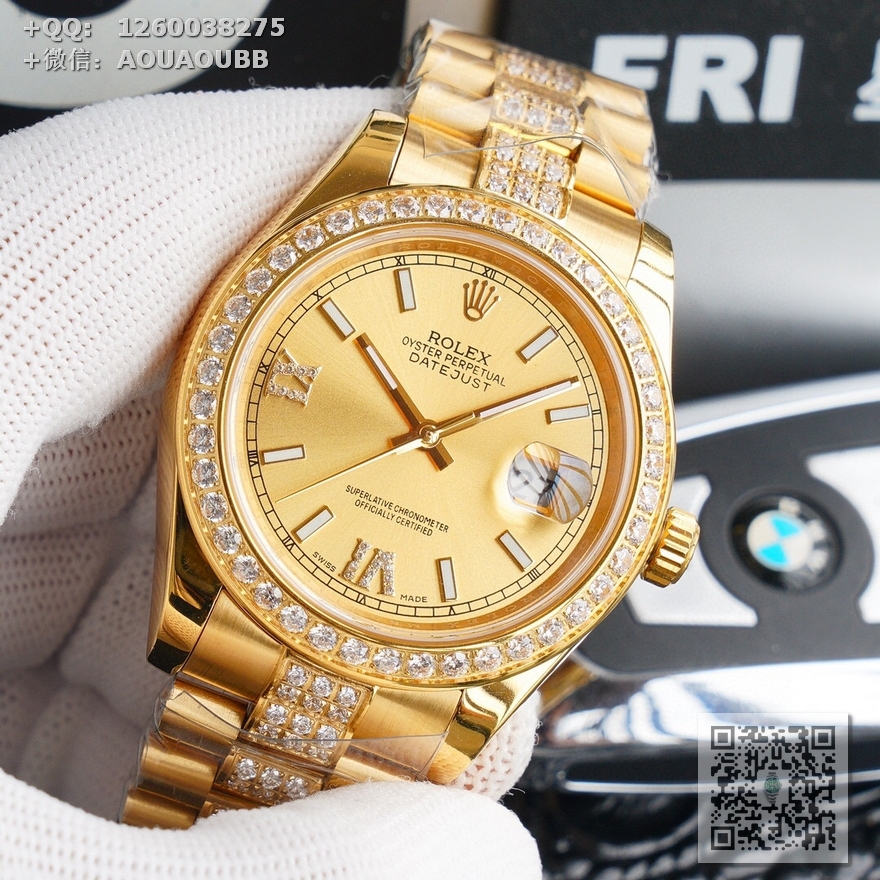 【产品介绍】V6最高版本推出劳力士Rolex日志型星期日历型️天星经典款系列,直径40mm,厚度12mm【机芯】全自动机械表原装进口3235机芯,所有机芯出厂均严格调试确保走时精准,性能稳定,零返修【表盘字面】采用顶级施华洛世奇美钻,手工镶嵌工艺而成精益求精理念设计【表壳表扣】顶级材质的904L精钢表壳搭配904L精钢表带/原装保险扣,️表扣内侧抛光腐蚀工艺钢印!️表带采用904L蚝式钢打造,蚝式表带由两排宽大、平整的表链节组成,极其坚固,表链全身整齐镶满最顶级施华洛世奇美钻,效果惊艳,光华四射【表镜】抗刮损蓝宝石水晶玻璃,防反光凸透式放大日历窗,纯水刀切割!采用最顶级的施华洛世奇美钻,历经数日的手工镶嵌而成,永不掉钻的承诺!每个极致的细节都是顶级V6工厂匠心开发诚意之作 表里如一 独具匠心!欢迎各路表友品鉴!️请认准独家品质