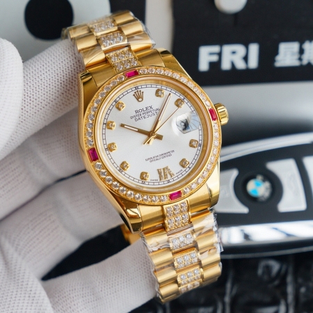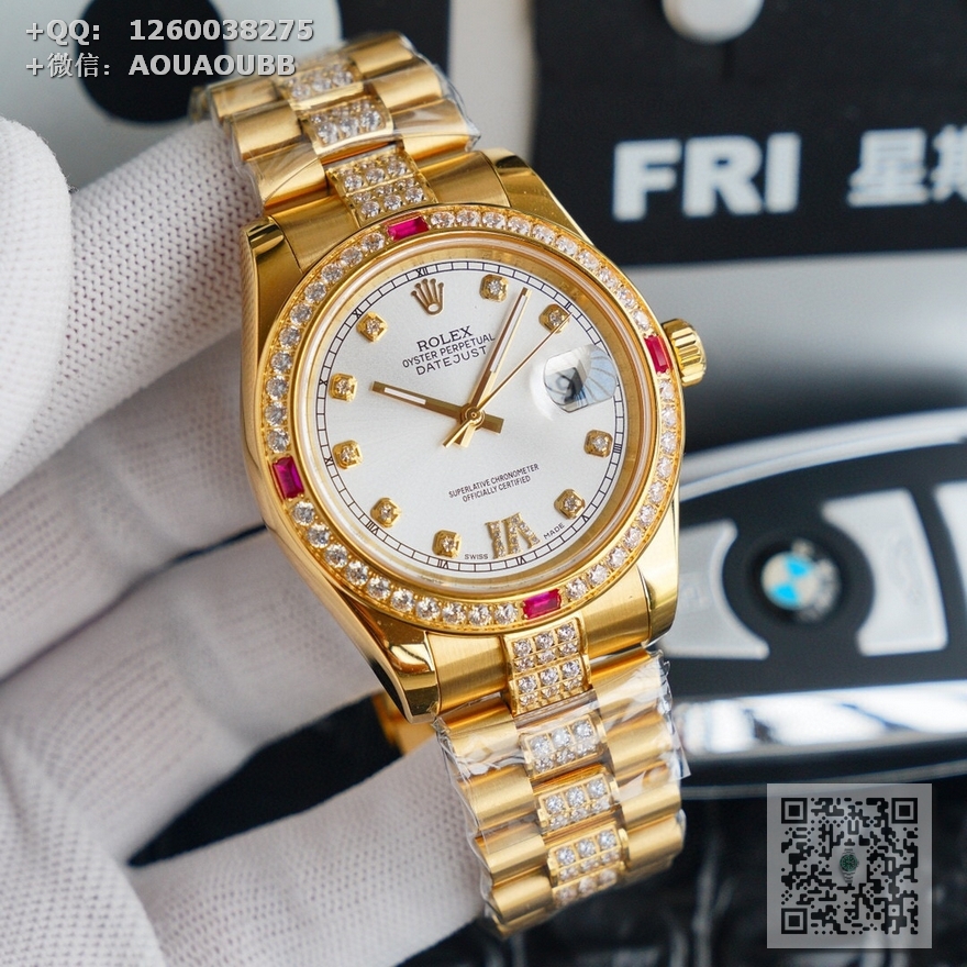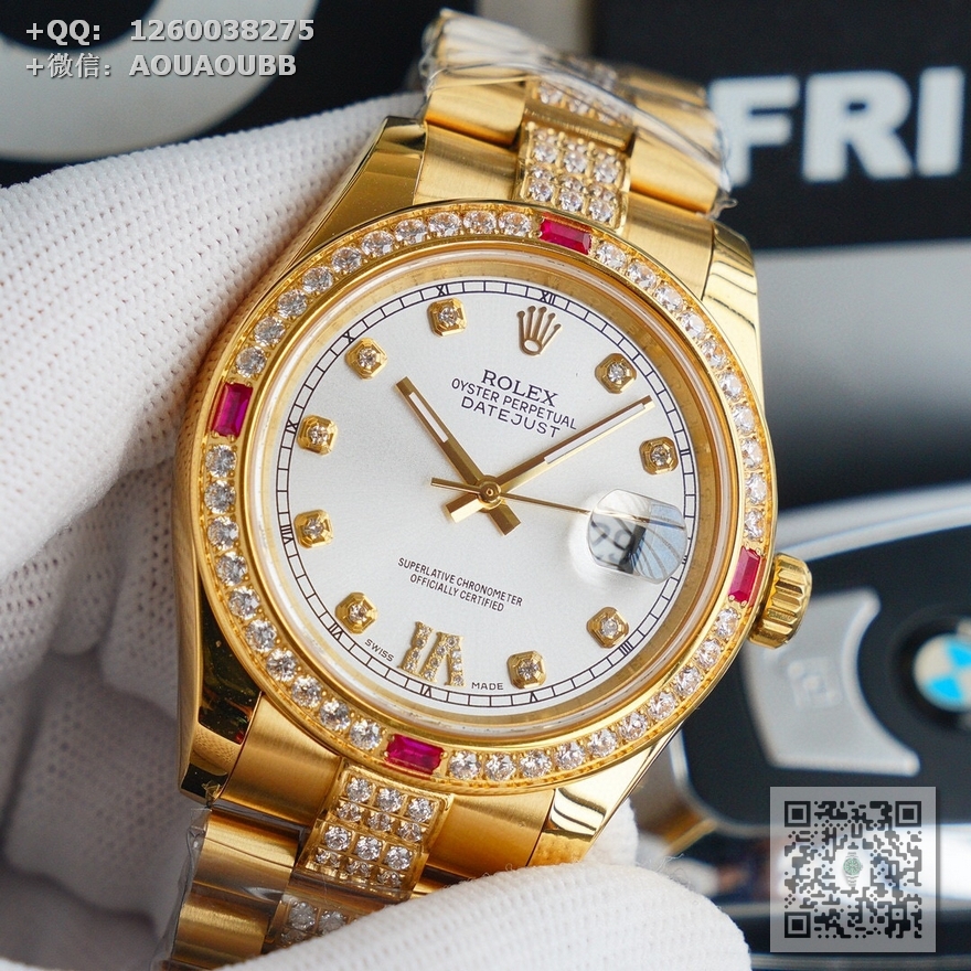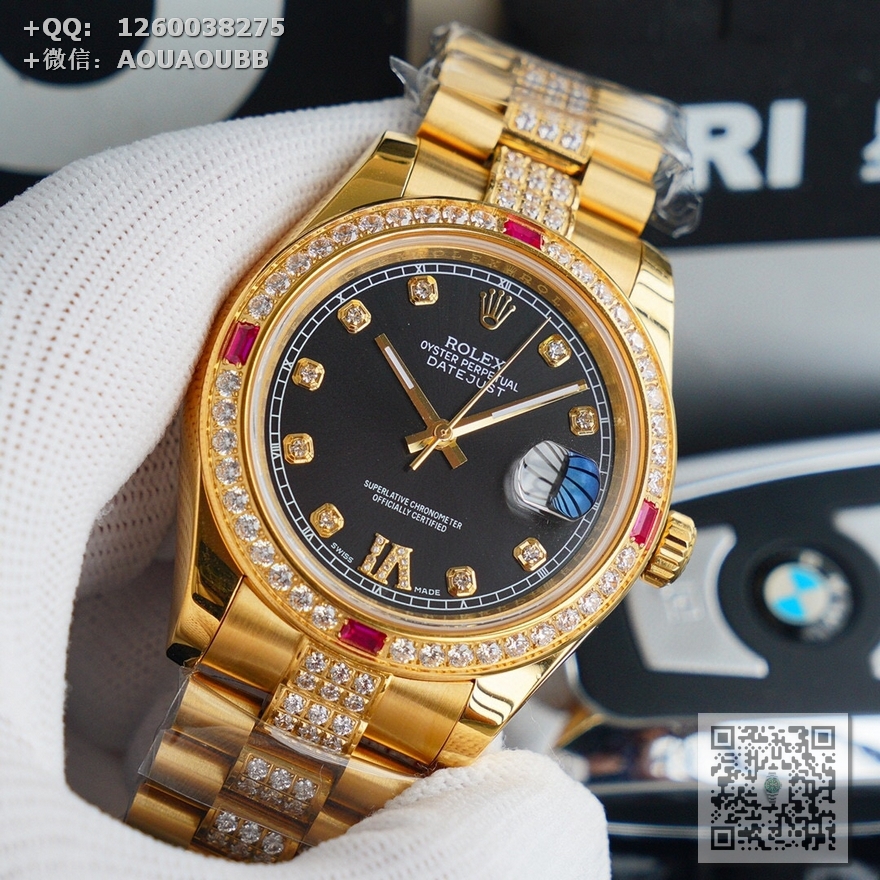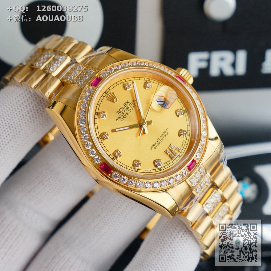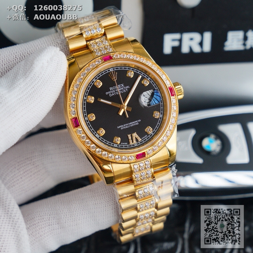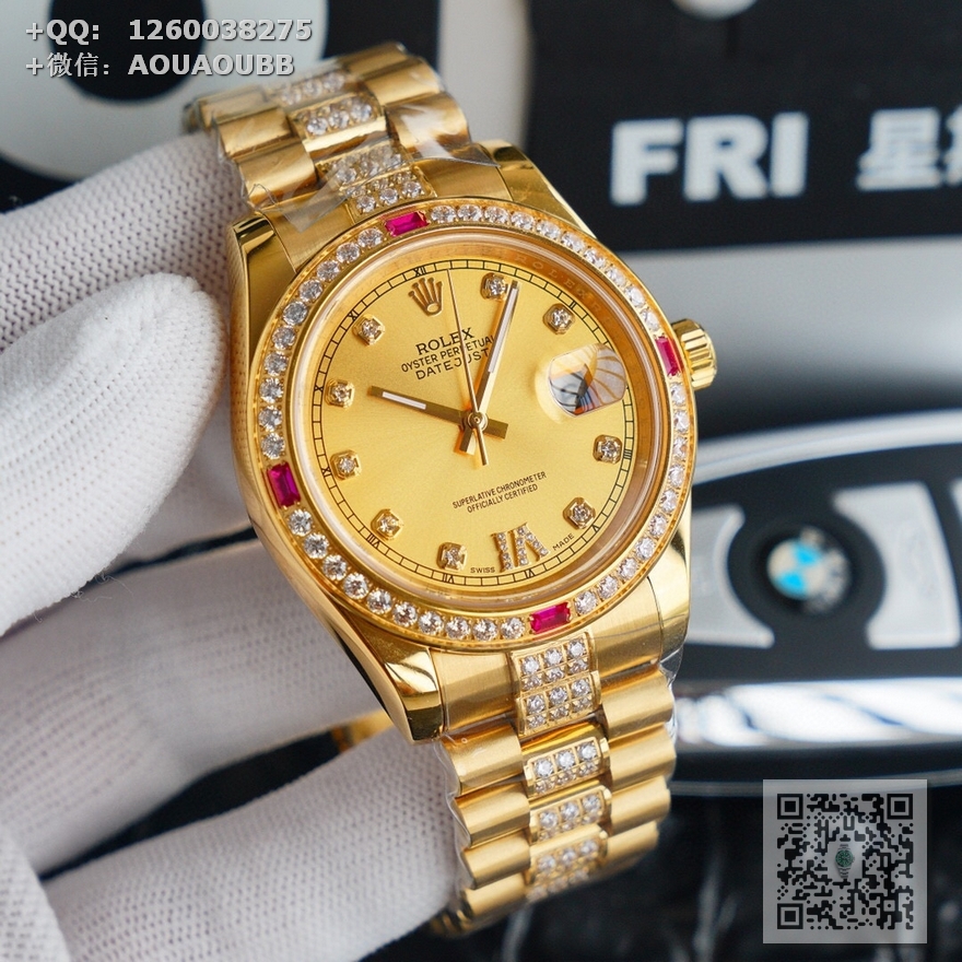 【产品介绍】V6最高版本推出劳力士Rolex日志型星期日历型️天星经典款系列,直径40mm,厚度12mm【机芯】全自动机械表原装进口3235机芯,所有机芯出厂均严格调试确保走时精准,性能稳定,零返修【表盘字面】采用顶级施华洛世奇美钻,手工镶嵌工艺而成精益求精理念设计【表壳表扣】顶级材质的904L精钢表壳搭配904L精钢表带/原装保险扣,️表扣内侧抛光腐蚀工艺钢印!️表带采用904L蚝式钢打造,蚝式表带由两排宽大、平整的表链节组成,极其坚固,表链全身整齐镶满最顶级施华洛世奇美钻,效果惊艳,光华四射【表镜】抗刮损蓝宝石水晶玻璃,防反光凸透式放大日历窗,纯水刀切割!采用最顶级的施华洛世奇美钻,历经数日的手工镶嵌而成,永不掉钻的承诺!每个极致的细节都是顶级V6工厂匠心开发诚意之作 表里如一 独具匠心!欢迎各路表友品鉴!️请认准独家品质