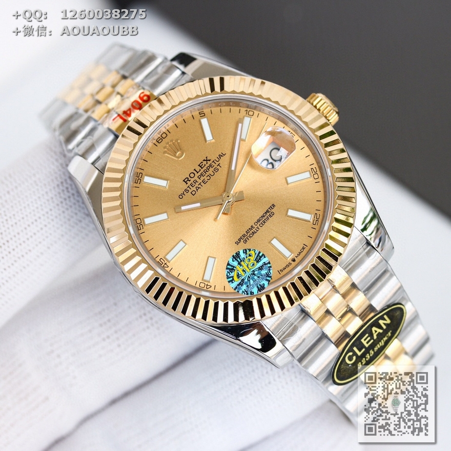 【产品介绍】clean厂/C厂 新品劳力士41mm日志型系列,1:搭载2836-2机械机芯,机芯及其稳定2:整表904L精钢 /搭配clean厂钢带 /3:表盘颜色无限接近原装 4:全市场唯一日历字体对版 后续1-31号挨个字体真假对比 5:唯一做到指针夜光/字钉夜光 做到同色 因为都是第三方工厂加工+自购瑞士 c1+c3夜光粉 6:字钉/皇冠唛头钉 全白金电镀处理 虽然clean的款式不多 但是几乎款款均为精品 彻底解决世面上的大部分日志痛点!