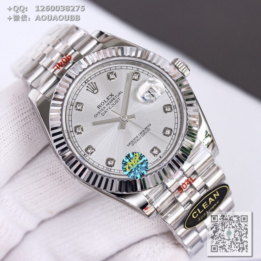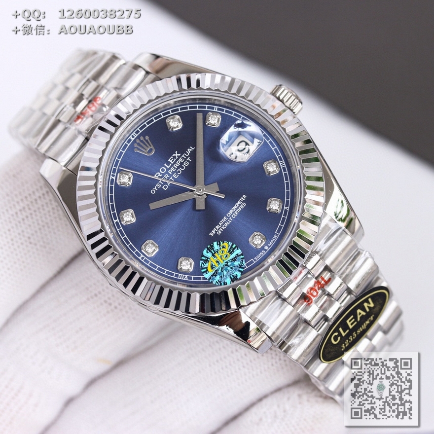【产品介绍】clean厂/C厂 新品劳力士41mm日志型系列,1:搭载2836-2机械机芯,机芯及其稳定2:整表904L精钢 /搭配clean厂钢带 /3:表盘颜色无限接近原装 4:全市场唯一日历字体对版 后续1-31号挨个字体真假对比 5:唯一做到指针夜光/字钉夜光 做到同色 因为都是第三方工厂加工+自购瑞士 c1+c3夜光粉 6:字钉/皇冠唛头钉 全白金电镀处理 虽然clean的款式不多 但是几乎款款均为精品 彻底解决世面上的大部分日志痛点!