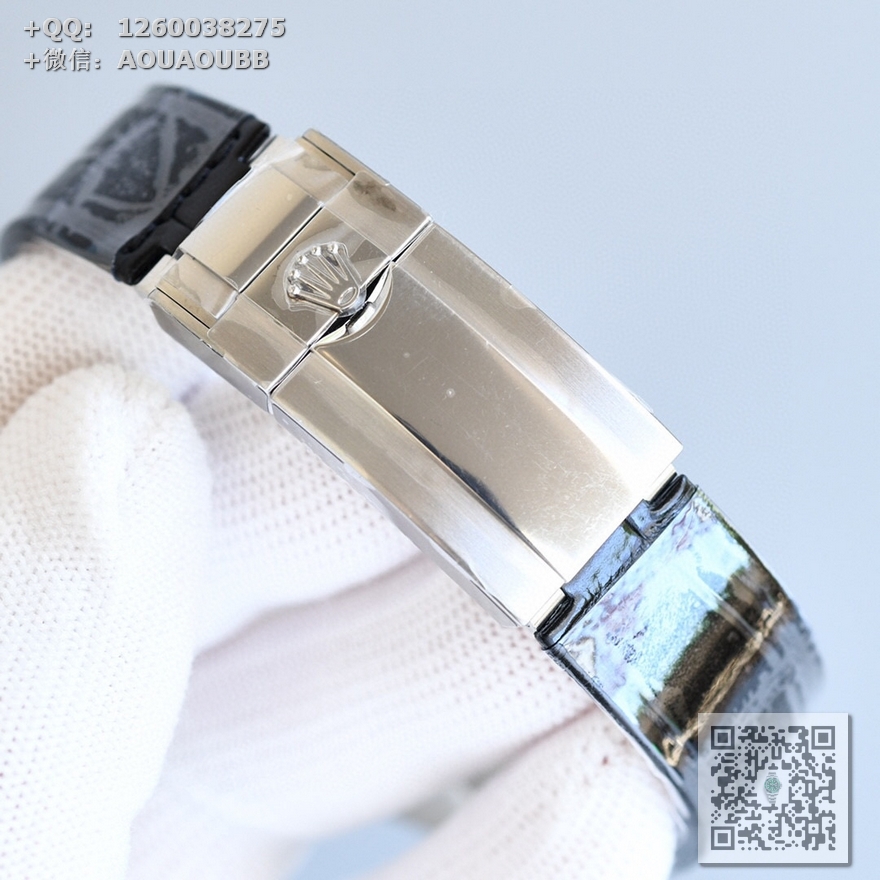表带釆用美洲鳄鱼皮配搭原装折叠扣表扣,连接表壳更细致优化!表扣细节刻字也到位!复刻诚心力作,让我们一起一劳永逸!一直梦寐以求、今触手可拥有!