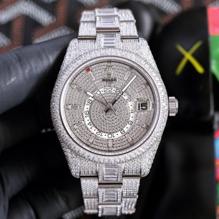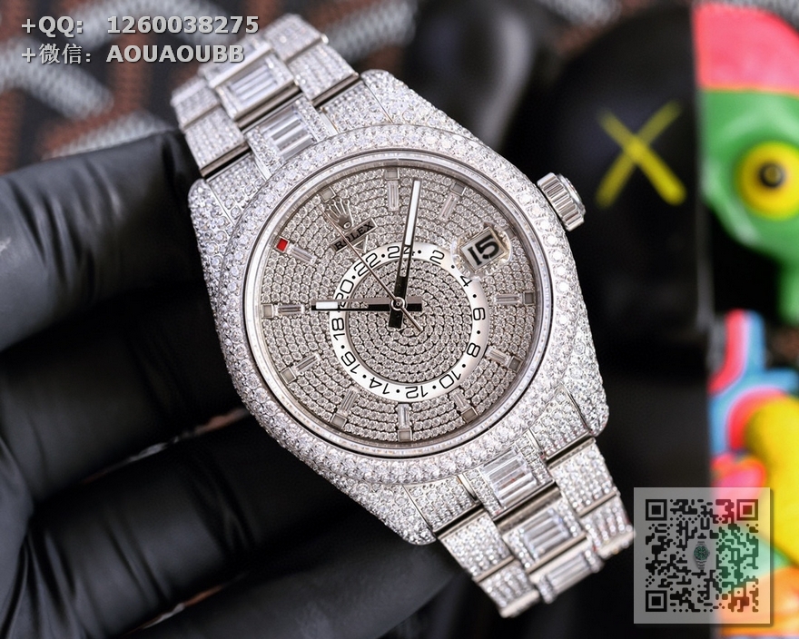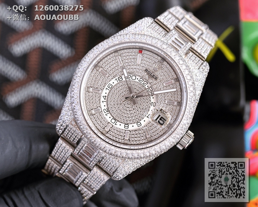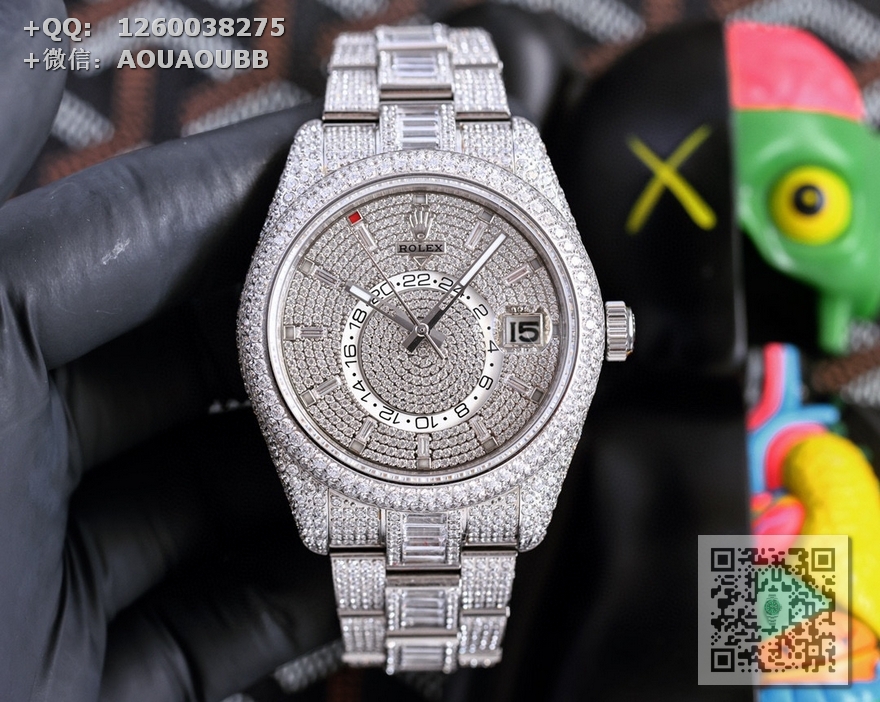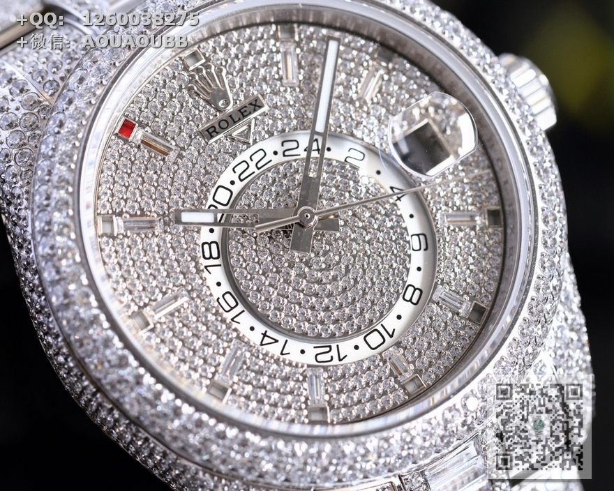 【产品介绍】劳力士Rolex Skv-Dweer.纵航者型满天星定制版闪耀来袭,手腕上的极致奢美艺术品,整只腕表圆型钻方型占采用施华洛世奇钻进行镶嵌,火彩十足极致闪耀,表壳,表带实现独家最密集的全无边镶嵌工艺,此工艺可与媲美手工镶嵌,方形钻更是采用逼镶工艺,同样可与嫡美手三工镶嵌,精心打造精品只为呈现极致完美的满钻腕表;表壳采用904L精钢制作,尺寸42MM,使用旋转外卷可设定腕表调转月份功能,抗刮损蓝宝石玻璃镜面通透明亮,防反光凸透式放大日历窗;(表带】采用904精钢制作,圆型钻.方型钻采用施华洛世奇钻镶嵌,蚝式摺扣配5毫米易调链节伸展系统,在各和情况下佩戴都倍感舒适;【无钻表盘】放射太阳纹理,表盘配置长方形超强冰蓝夜光指针与钟点标记,散发持久光芒,清晰易读;【满钻表盘】圆型钻,方型钻均采用施华洛世奇钻镶嵌,配置超强冰蓝夜光指针,散发持久光芒,清晰易读【机芯】搭载全自动9001机械机芯【功能】日期显示,月份显示、双时区。