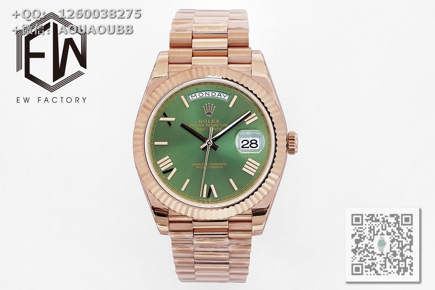 【产品介绍】EW厂V2劳力士星期日志型 3255自动机械机芯128238系列腕表,40毫米直径,研发耗时一年半,原版1比1开模。重点升级了以下几个要点:1、表壳直径与2019最新版3255型系列一致40毫米。2、表带头粒与原装一致、5件拼装、难度非常高,表带与表壳交错型无缝连结。3、把头皇冠处下方修改为与原版一致的两个圆点。4、表扣与原版一致里面加装了弹簧,字体大小工艺和原装一致。5、表壳侧面与原版一致增加二维码防伪、底盖有验货二维码。6、表壳与表带连接处的壳身刻有与原版一致的型号数字。7、表的内影圈刻上了与保修卡一致的产品流水数字,8、附全套原版套装配置包括(保修卡,说明书,型号条型码与正品一致)全套包装与正品一致(市面上真正的原装一比一星期日历型)