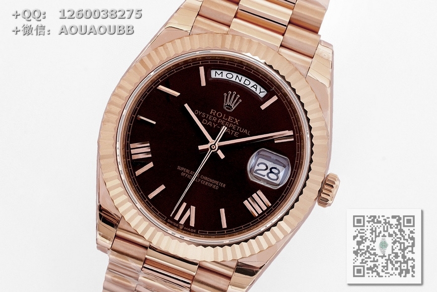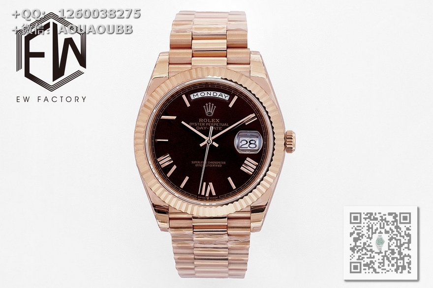 【产品介绍】EW厂V2劳力士星期日志型 3255自动机械机芯128238系列腕表,40毫米直径,研发耗时一年半,原版1比1开模。重点升级了以下几个要点:1、表壳直径与2019最新版3255型系列一致40毫米。2、表带头粒与原装一致、5件拼装、难度非常高,表带与表壳交错型无缝连结。3、把头皇冠处下方修改为与原版一致的两个圆点。4、表扣与原版一致里面加装了弹簧,字体大小工艺和原装一致。5、表壳侧面与原版一致增加二维码防伪、底盖有验货二维码。6、表壳与表带连接处的壳身刻有与原版一致的型号数字。7、表的内影圈刻上了与保修卡一致的产品流水数字,8、附全套原版套装配置包括(保修卡,说明书,型号条型码与正品一致)全套包装与正品一致(市面上真正的原装一比一星期日历型)