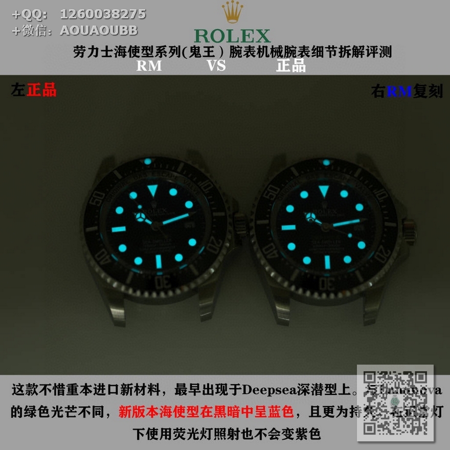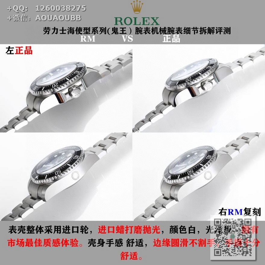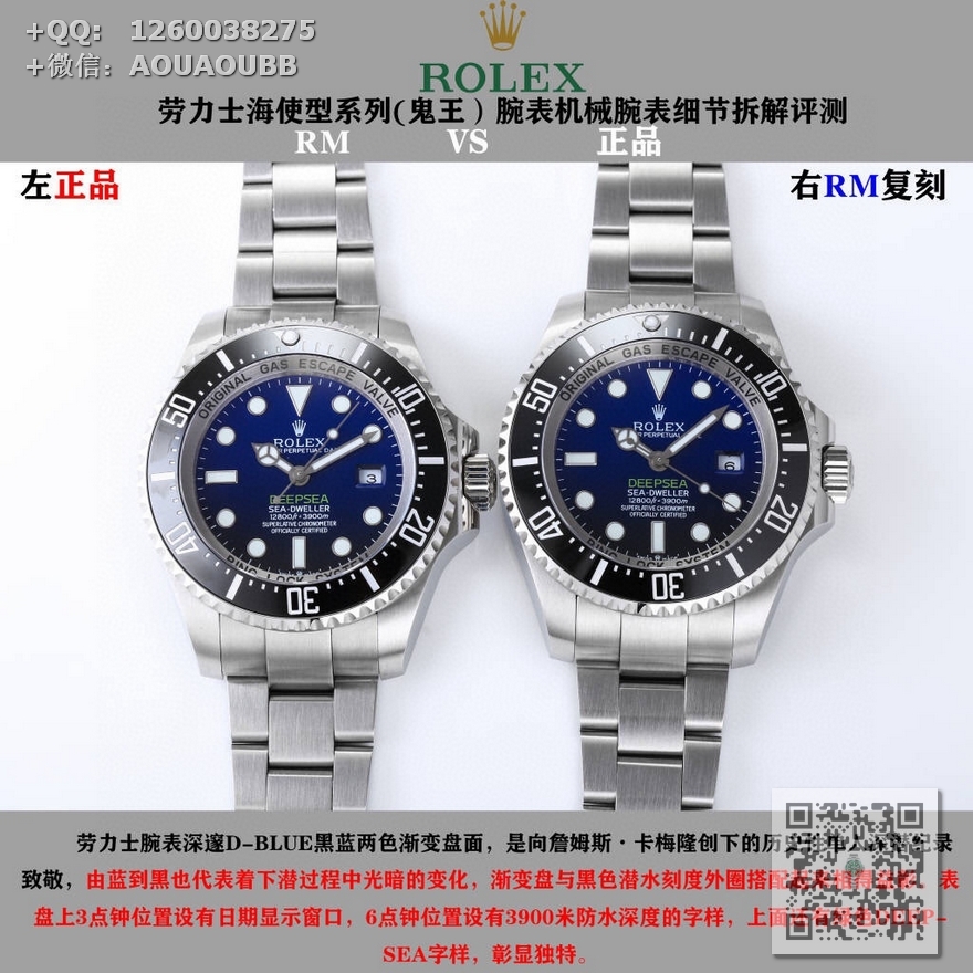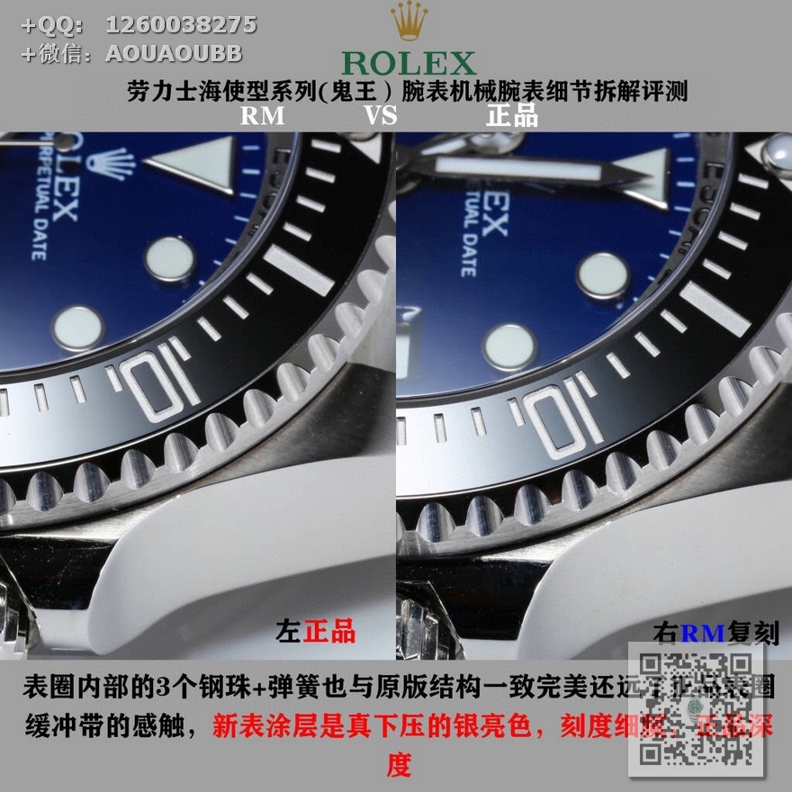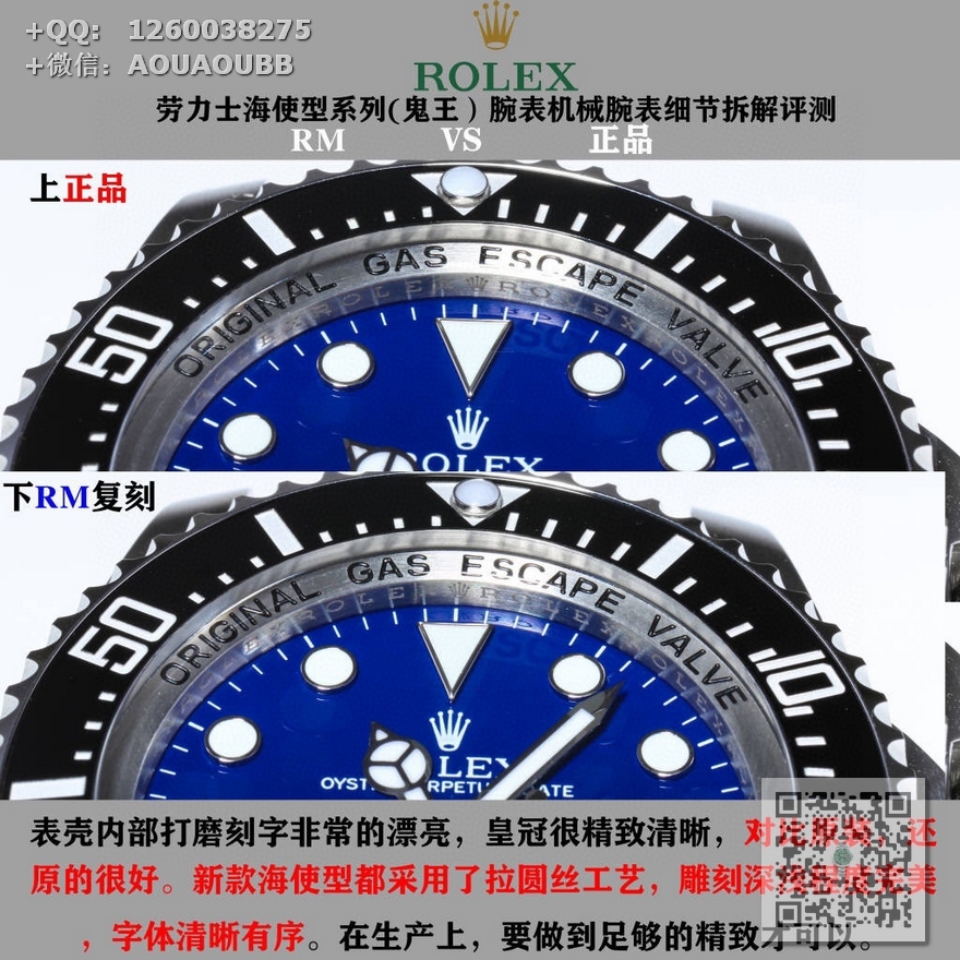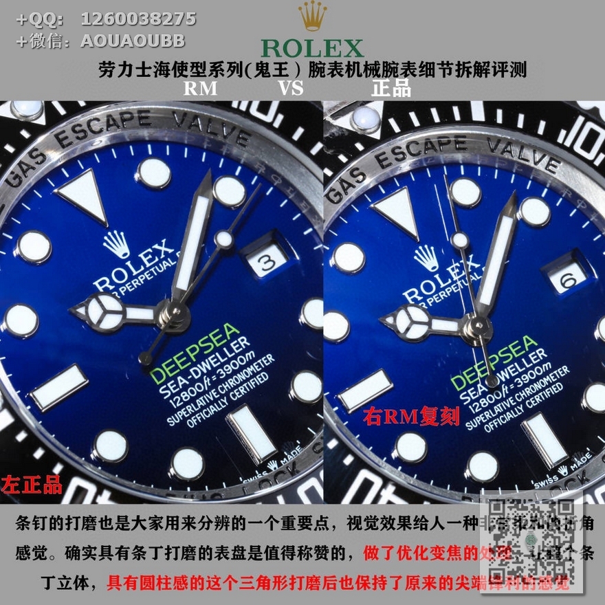 【产品介绍】RMF 904L 劳力士 ROLEX 3235机芯超级渐变蓝鬼王~126660(字面6点有皇冠logo)较前代有重要革命性升级,怒荐之作原装开模,细节完美11圈口夜光珠采用原装冲压技术,告别胶水,不再会有脱落的诟病。陶瓷表圈亦采用最新原装冲压技术,内部结构完美同步原装,转圈声音及力度同原装一致。陶瓷表圈采用原装镀白金技术,经久耐用,细致乱真。渐变蓝色面盘经正品比对且无数次调试,足可乱真。市面唯一钢带头部同步原装宽度加宽,佩戴更舒适,视感更完美(老版本钢带比较瘦窄),表扣伸缩结构完美克隆,表扣内最新刻字更新为022。全表升级为原装一致904L精钢,拉丝更精湛,质感更逼真,且拥有原装一致的抗腐蚀及耐磨水平。搭载超级3235机芯(市面独家,真结构非甲板,顺时调时,瞬跳日历)真正从内而外超级克隆。RMF 904L126660