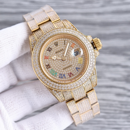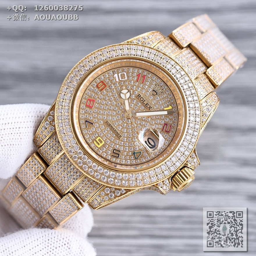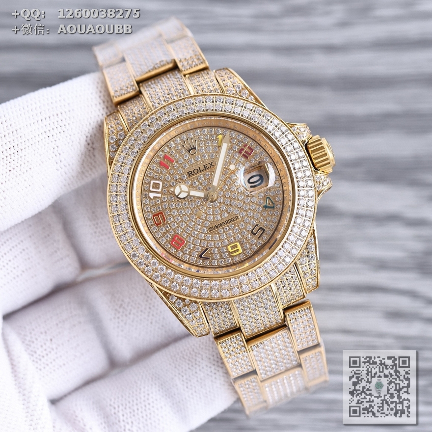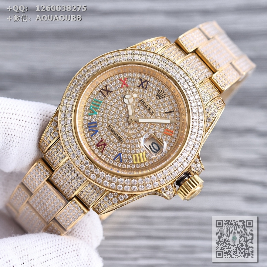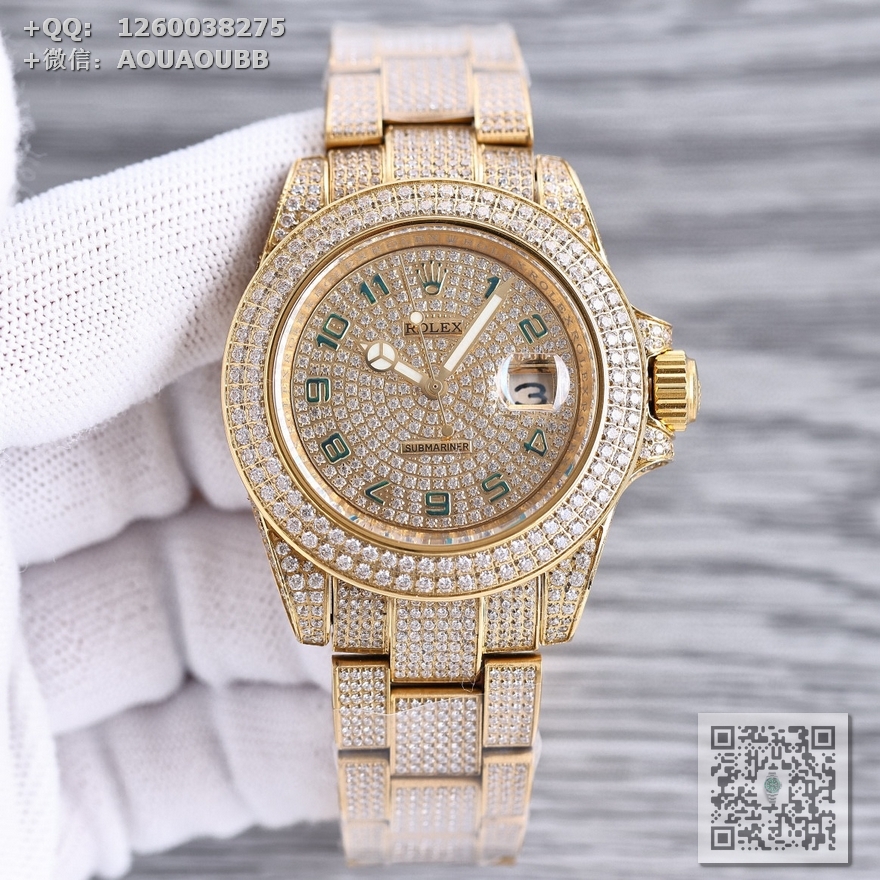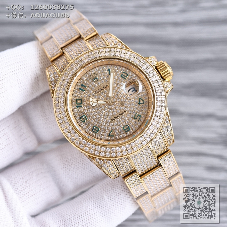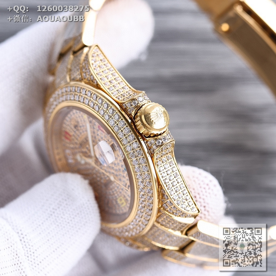 【产品介绍】劳力士奢华极致满天星版本腕表904精钢打造,密镶顶级施华洛世奇美钻,奢华品质的诠释,璀璨夺目,魅力绽放。表壳表链全镶满美钻,金光闪闪,进口2824全自动机芯,腕表尺寸41mm