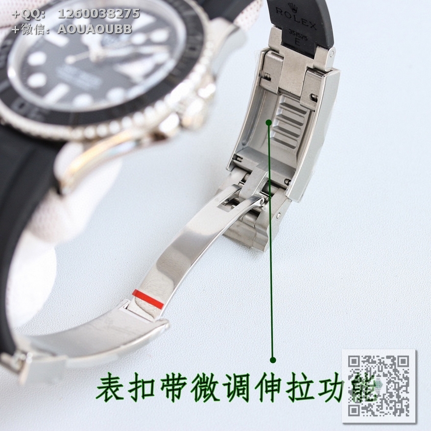 【产品介绍】最新游艇白金/黄金顶级版本 市面最强版本,劳力士 游艇名仕型系列(YM白金壳陶瓷圈胶带版)尺寸42MM搭载高版本3235高储存动力机芯,904全白钢壳套,带微调功能折叠蚝式保险扣 Pyesterflex橡胶表带人性化二级可剪设计 字面刻度易读 Chromalight 夜光(持久蓝光)防刮损蓝宝石玻璃镜面 旋入式,三扣锁三重防水系统,防水100米!面上最强的复刻版本 真正的原版1比1开模 和正品一模一样,市场少有人跟正品的细节,无论做工鑫与整体手感也是市面最接近正品的超级,完美复刻原版。
