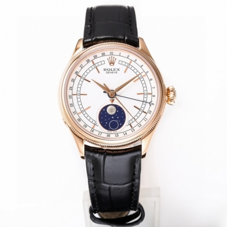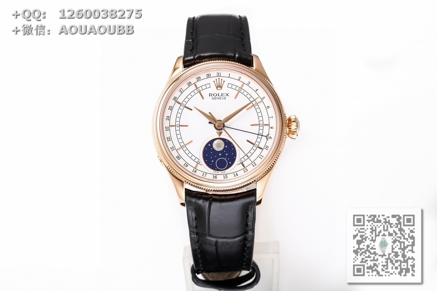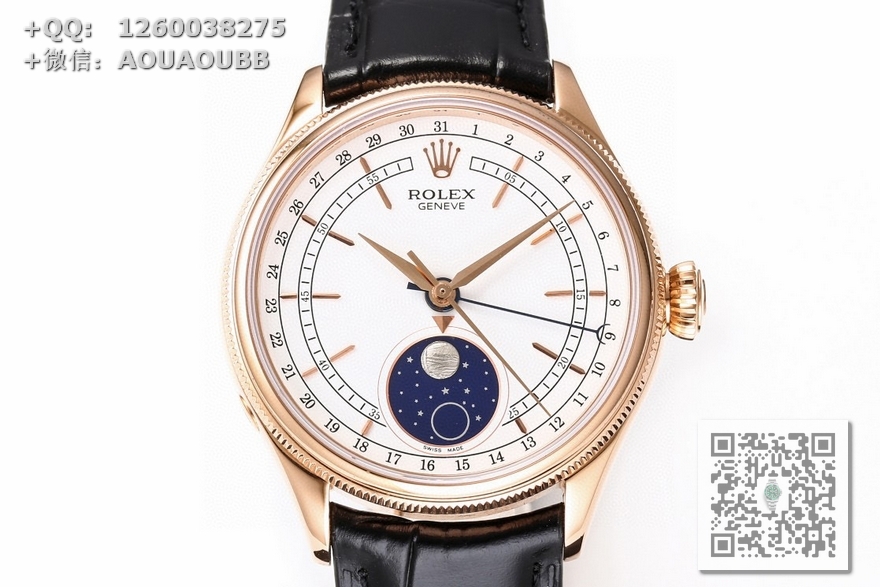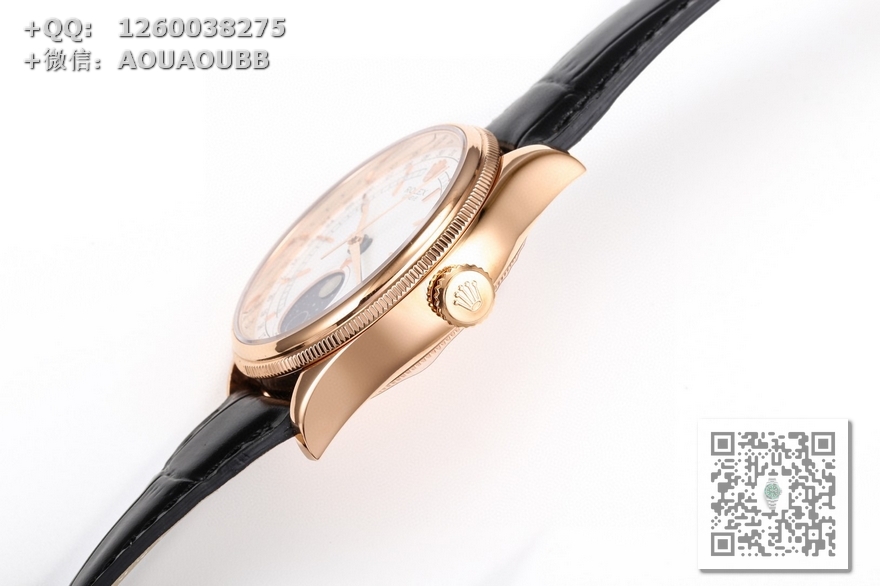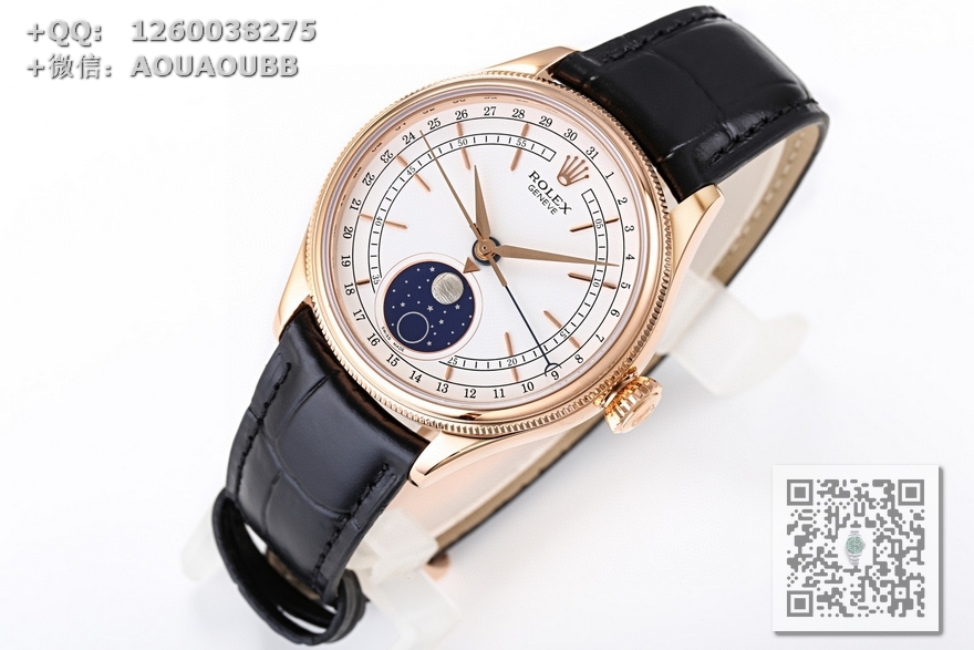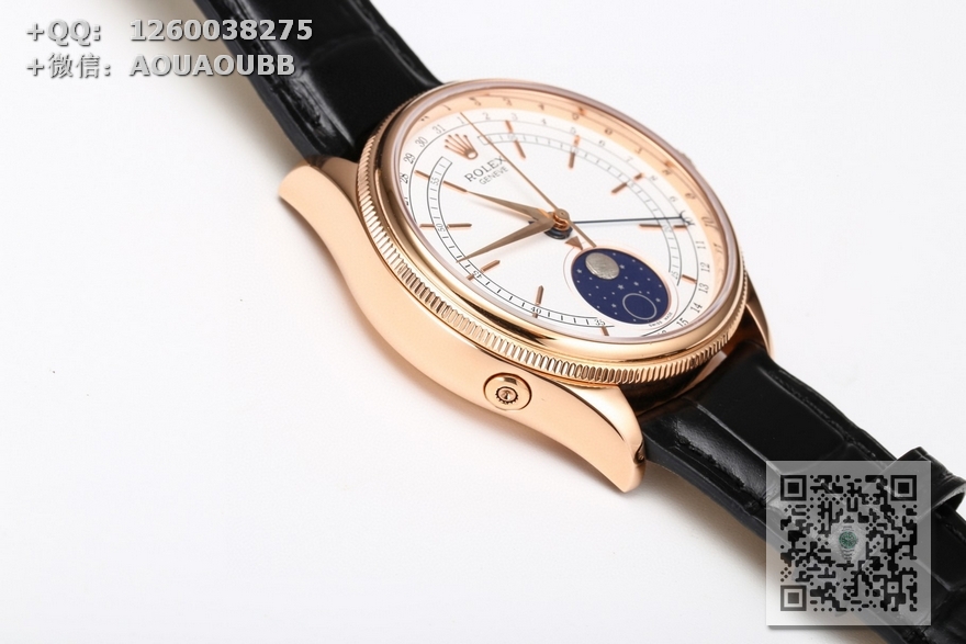 【产品介绍】TWF新品 劳力士切利尼系列50535 月相腕表,最佳版天然陨石月相切利尼全玫瑰金,红金技术。厚度达到包金一般的标准。独家定制机芯,功能做到和原装一致。可以单独调节时针,来调节日历。8点位有一个按钮,来调节月相。同样,月相上的陨石也为真陨石。尺寸:39×11.8,深棕色黑色意大利牛皮还原劳力士特有的阔剑式皮带剪裁,配专用月相调节工具