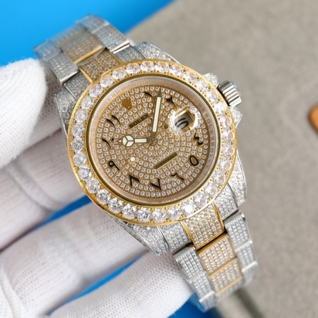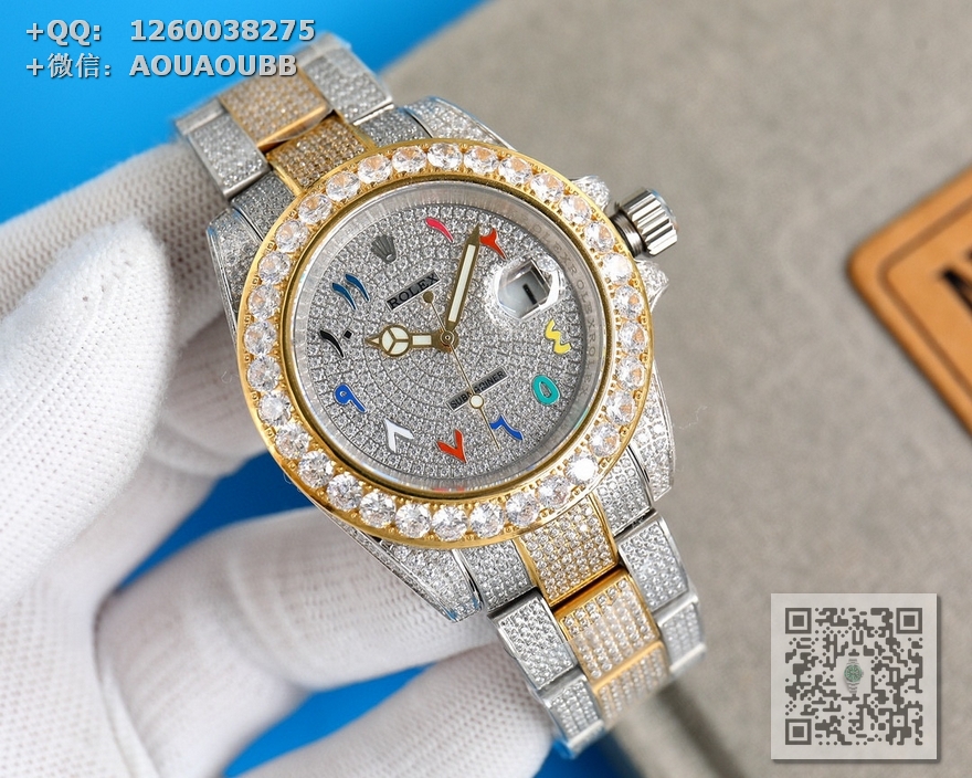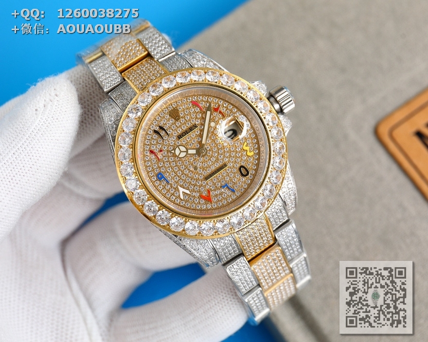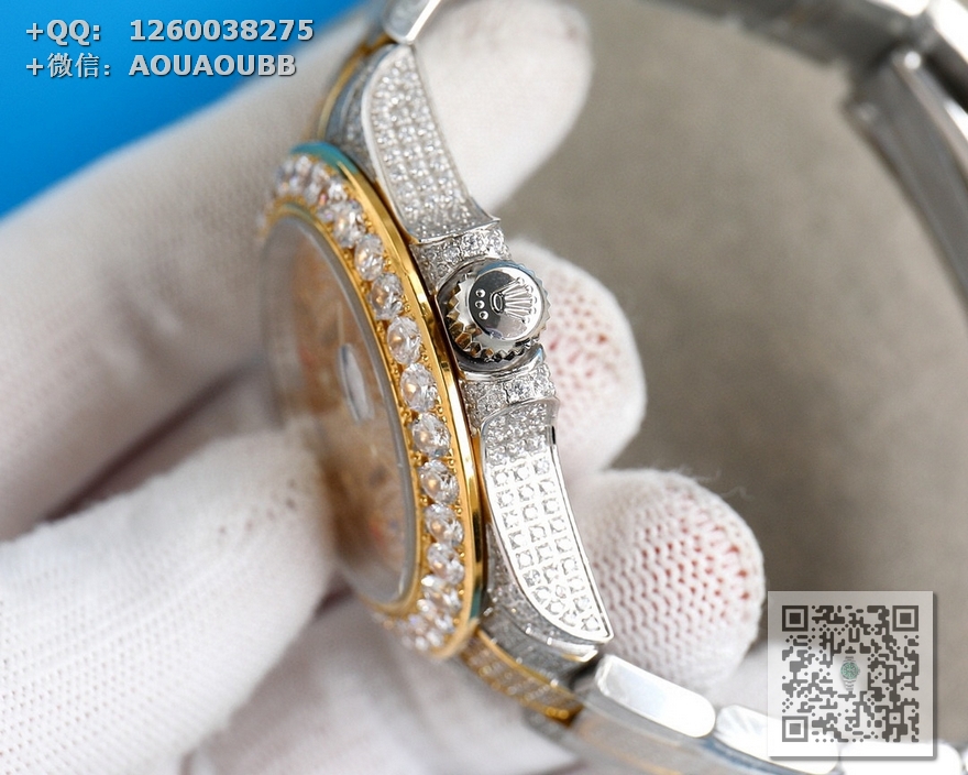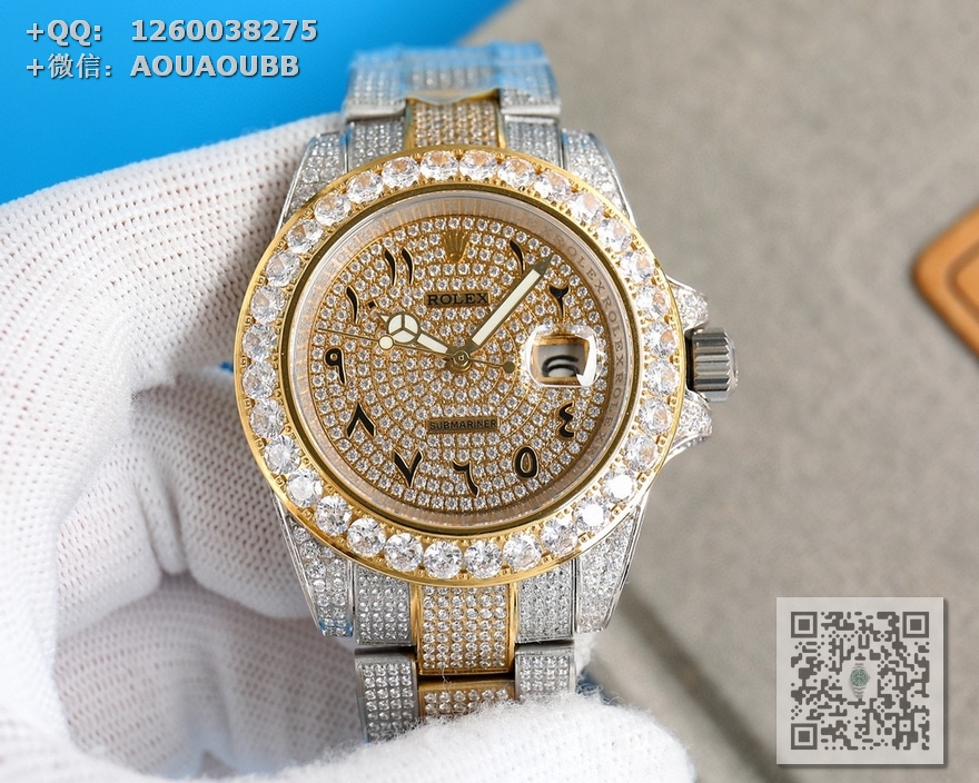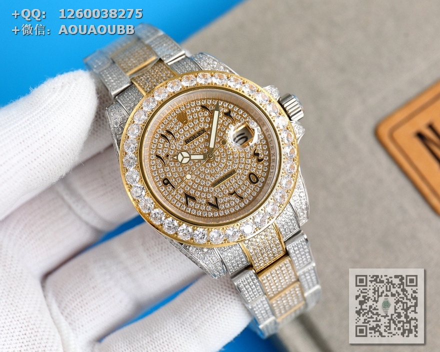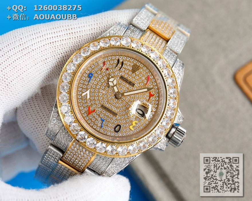 【产品介绍】劳力士奢华极致满天星版本腕表904精钢打造,密镶顶级施华洛世奇美钻,奢华品质的诠释,璀璨夺目,魅力绽放。表壳表链全镶满美钻,金光闪闪,进口2824全自动机芯,腕表尺寸41mm