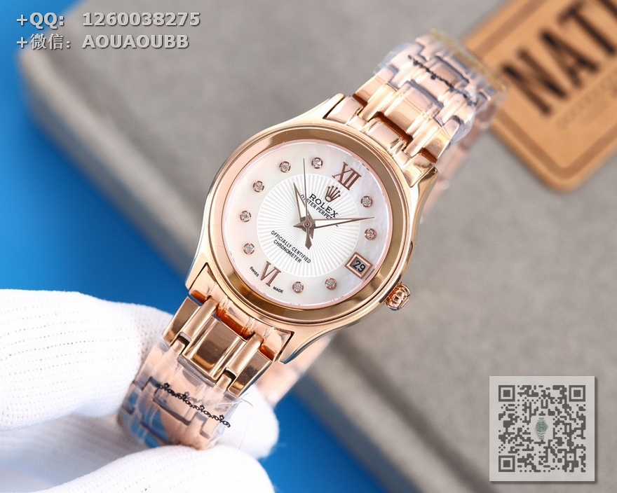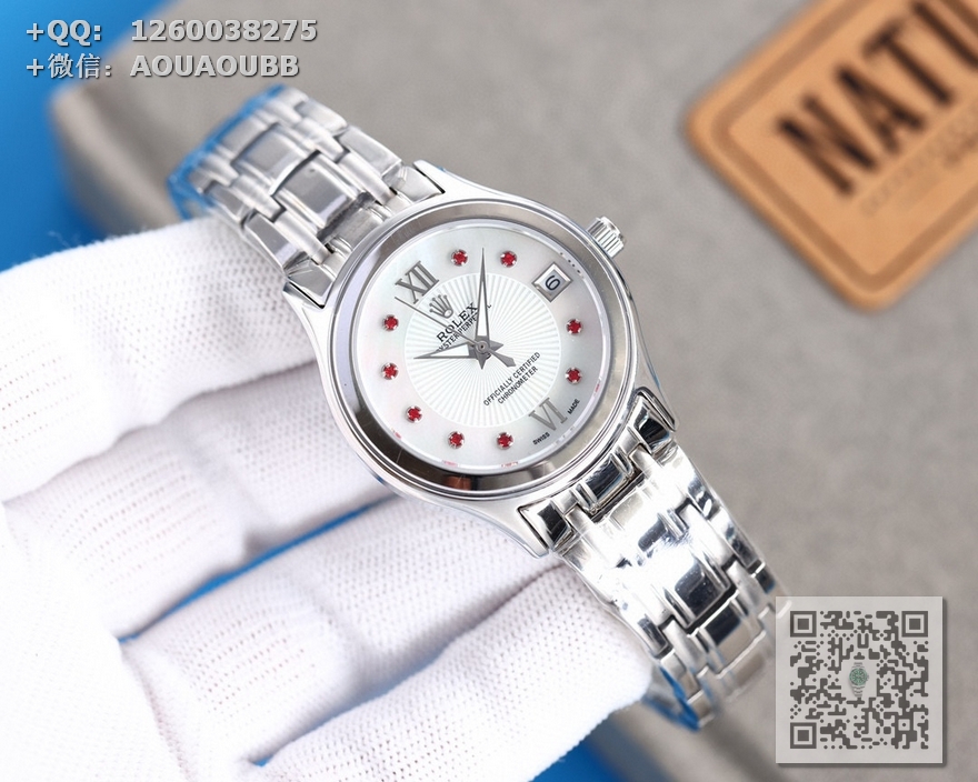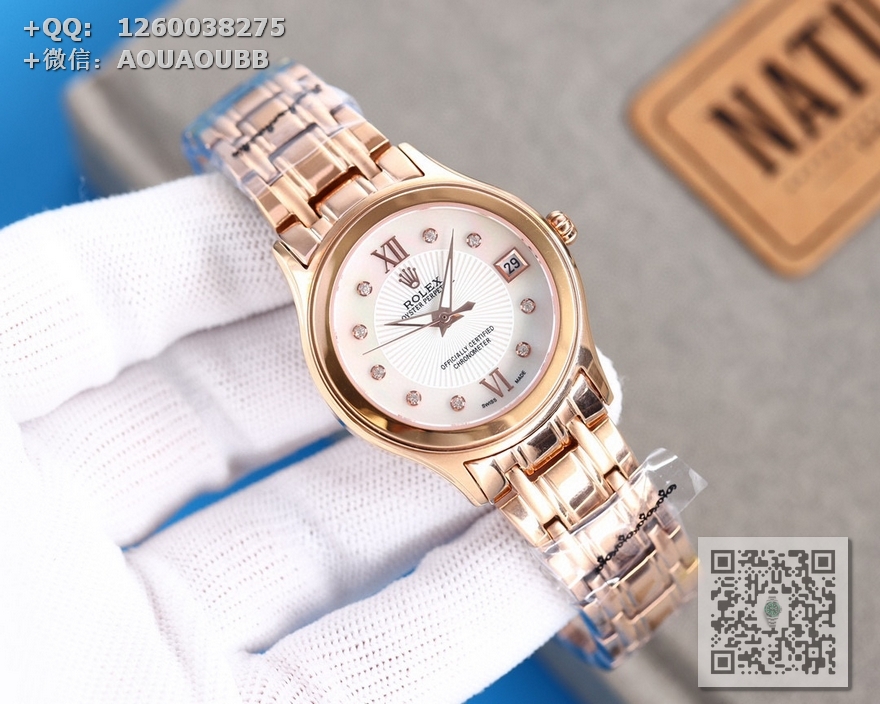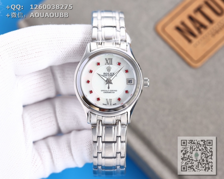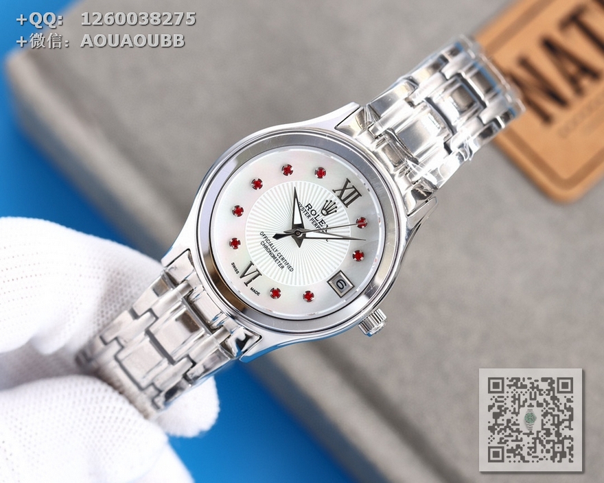 【产品介绍】新款劳力士女士腕表!全新上市!贝壳表面!施华洛水晶钻搭配潮流搭配!简单的表盘设计,简约不单调!精钢表壳,棱角更铉丽,尽显腕间魅力」双卜蓝宝石防花镜面!内置原装进口8219机芯,超稳,零故障!意大利小牛皮表带,钢带均可搭配,女款 标准尺寸:女34mm