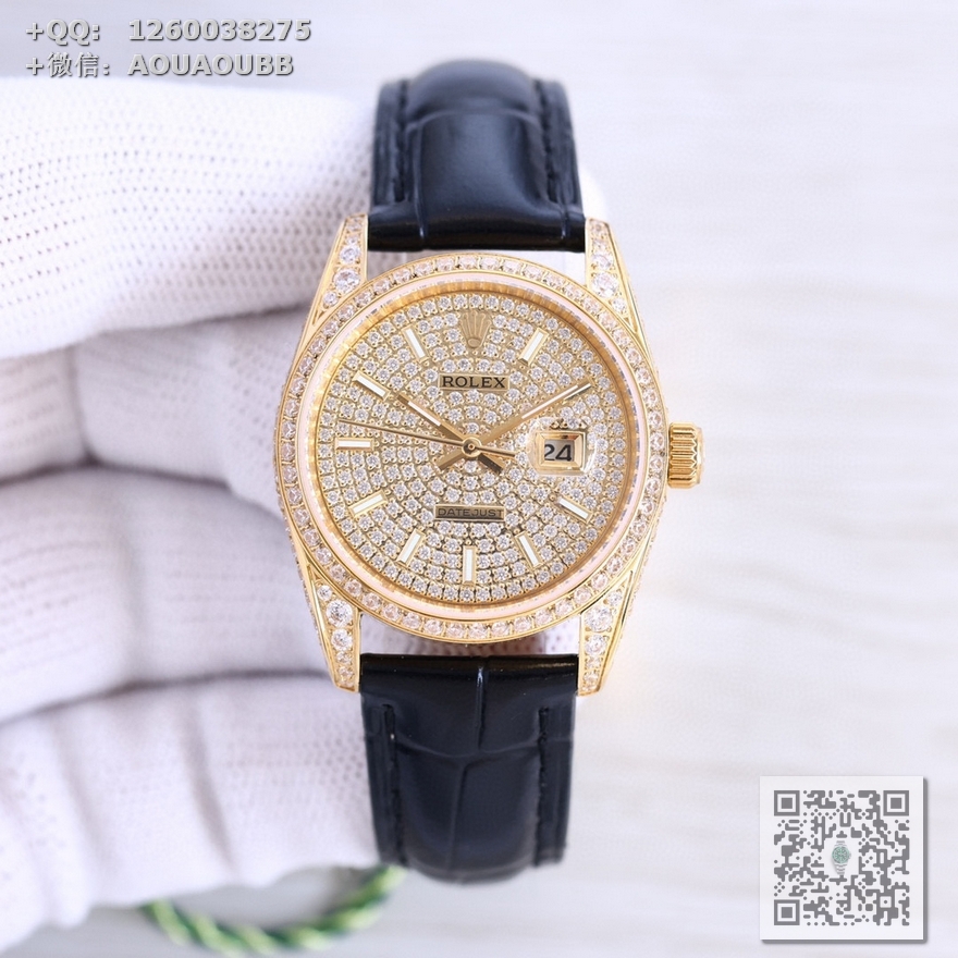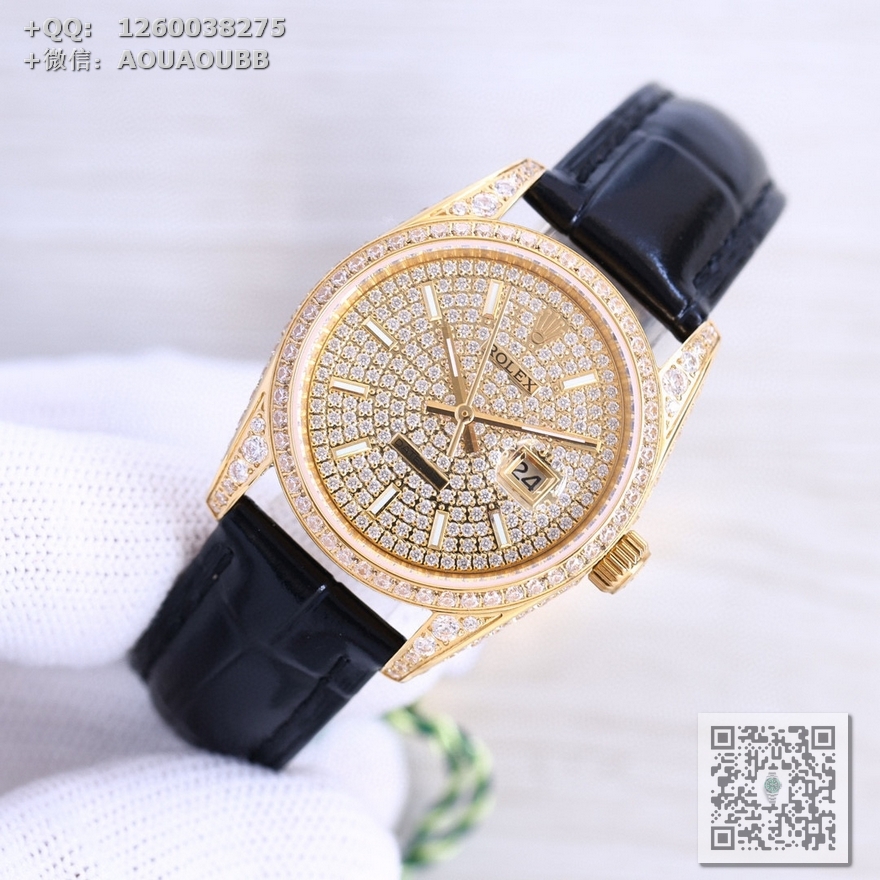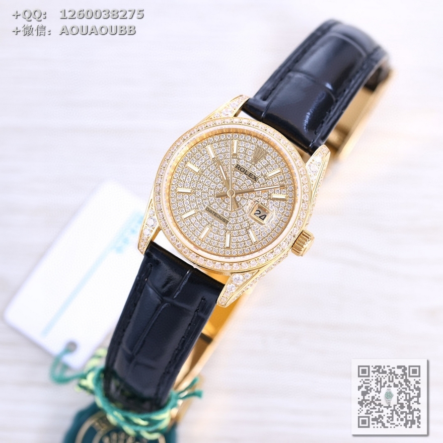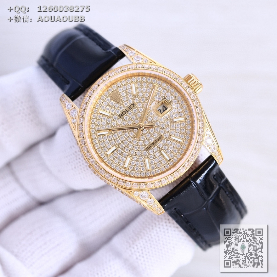【产品介绍】劳力士满钻日志女士款!原装扣皮带款式!奢华满钻镶嵌工艺(不易掉钻!5年内掉免费补新钻)尺寸:女款32mm。厚度10mm