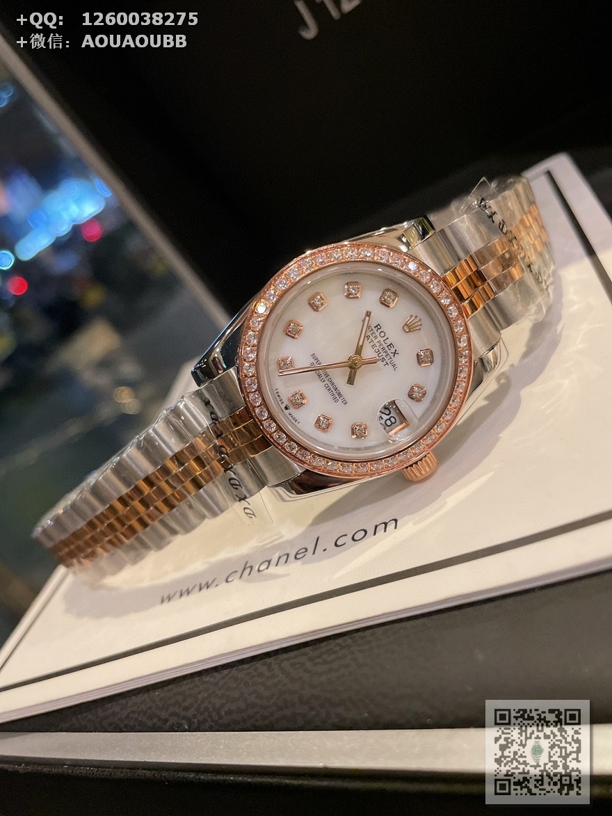 【产品介绍】劳力士日志系列经典女款 实芯五珠钢带-原装压扣 小红书火爆推荐 设计显出独特高贵优雅女神气质!精钢表壳搭配施华洛世奇水晶钻石,纯手工镶嵌而成,女性气质,高端大气,不显浮华的风格广受成功人士喜爱,逐渐深刻人心,并备受各界女士推重。工艺精湛,糅合尊贵、典雅和独特气质于一身