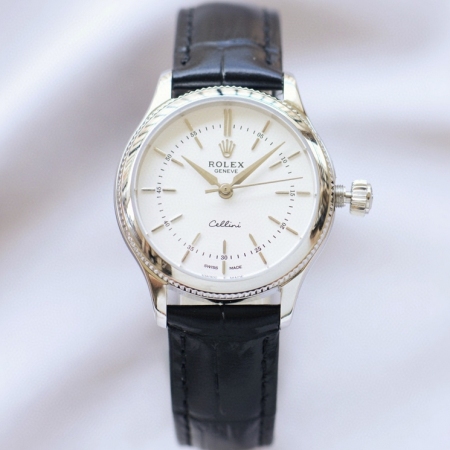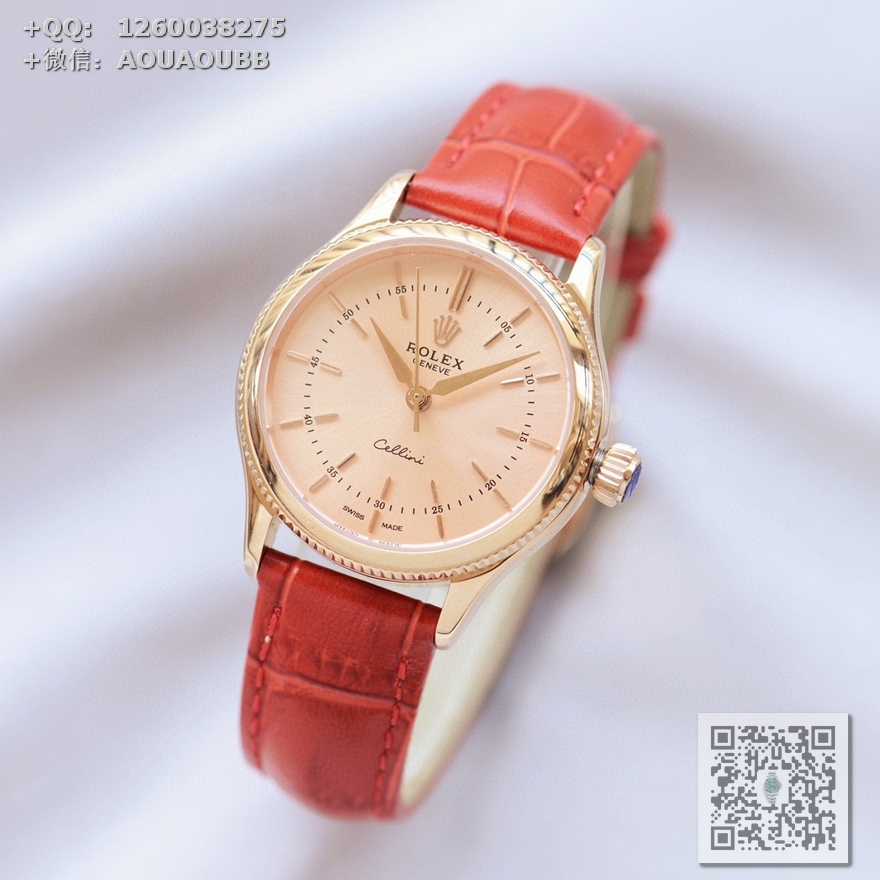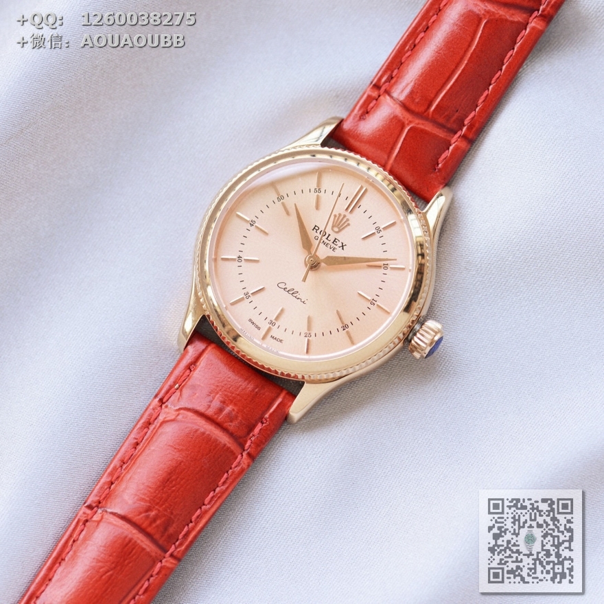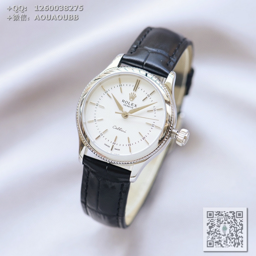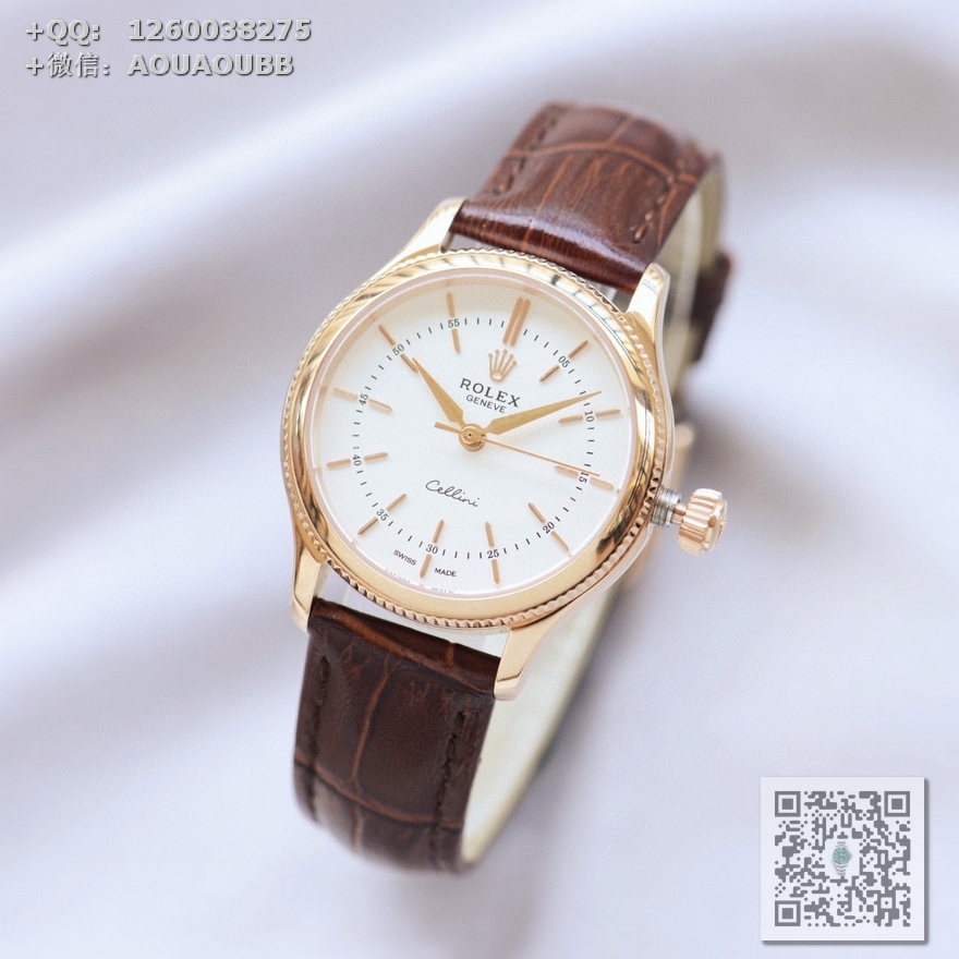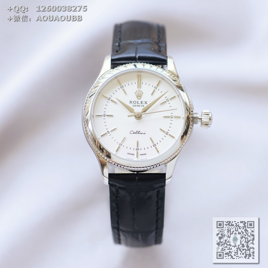 【产品介绍】GS出品 劳力士切利尼系列简约古典女士全自动机械腕表 【简约古典 从容优雅】斯文简单的外观从容优雅,纤薄商务的风格儒雅斯文。【表壳】腕表尺寸32mmX8.5mm 。蓝宝石镜面,纤薄的表壳佩戴舒适,微弧型的表耳贴手合腕。机芯搭载精准而稳定的9015机芯,。表带 扣采用进口意大利小牛皮,质地柔软,透气舒适,富有光泽。由简洁优雅表款以至牙圈,堪称当代女性腕上良伴。实物拍摄品质如一!