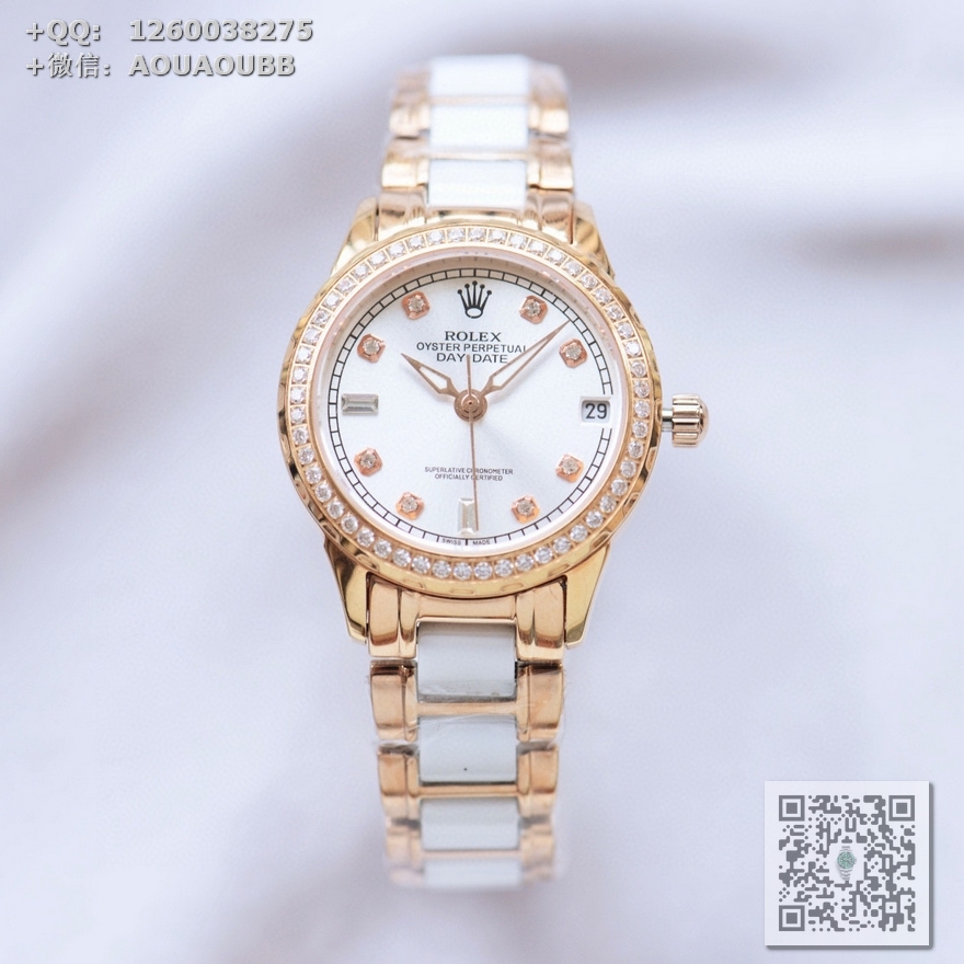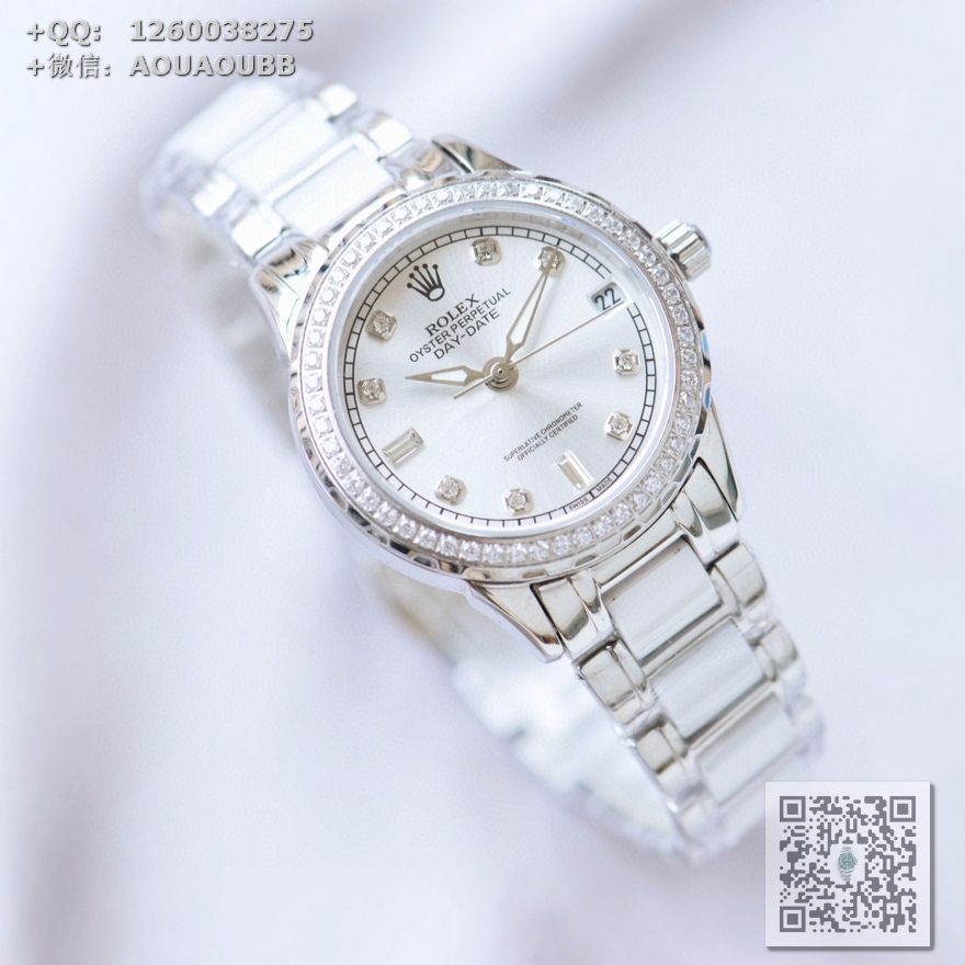 【产品介绍】劳力士新款ROLEX 淑女珠宝系列 升级V8版采用高端太阳纹表盘 环圆镶嵌38威塞尔顿钻石时尚女表 简约三针,独特️字位日历 搭载原装进口全自动机械机芯(零返修),904精钢表壳(厚度10mm),镜面9级蓝宝石水晶防刮玻璃,防水深度:50米表带:陶瓷钢带/意大利精选小牛皮,精细打磨,清新优雅,大方得体 女神必备款 高品质 送爱人 送闺蜜 五星推荐实物拍摄品质如一!