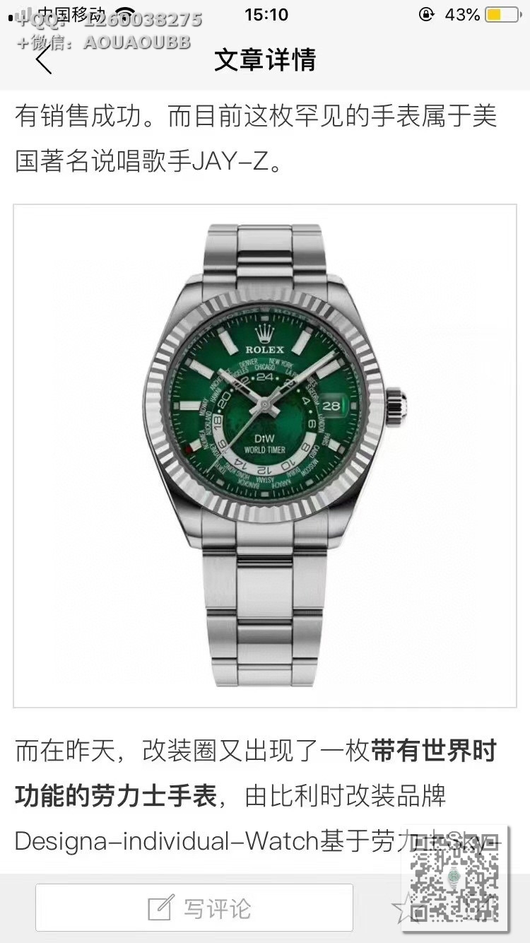 【品牌】劳力士【产品介绍】劳力士Rolex Sky-Dweller 天行者!表圈采用劳力士Ring Command三角坑纹,旋转外圈可调转月份功能!抗刮损蓝宝石水晶,防反光凸透式放大日历窗【表带】蚝式钢!三排链节蚝式摺扣配5毫米易调链节伸展系统【表盘】放射太阳纹理,刻度12小窗口红点月份显示!【功能】日期显示/月份显示/年历显示/双时区!【款式】男款【尺寸】42mm【表带】904L精钢表带,蚝式钢!三排链节蚝式摺扣配5毫米易调链节伸展系统【镜面】抗刮损蓝宝石水晶,防反光凸透式放大日历窗【机芯】9001机芯【防水】100米防水【配件】原装盒,说明书,质保卡,吊牌,香港机打发票【品质检测】保证所有手表实物拍摄,所见即所得 , 手表发货前都会有严格检查测试,确保您收到的手表无质量问题