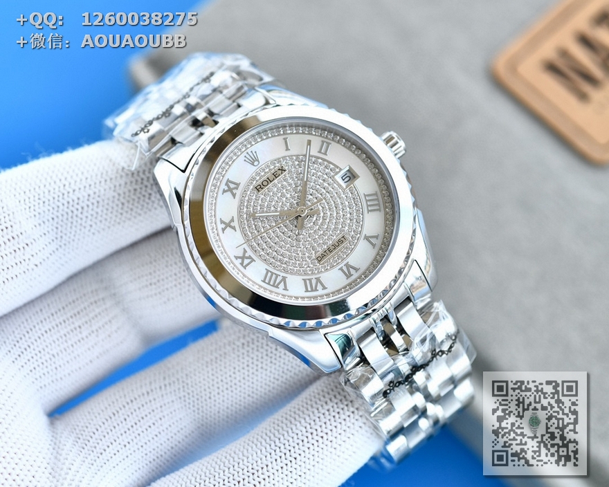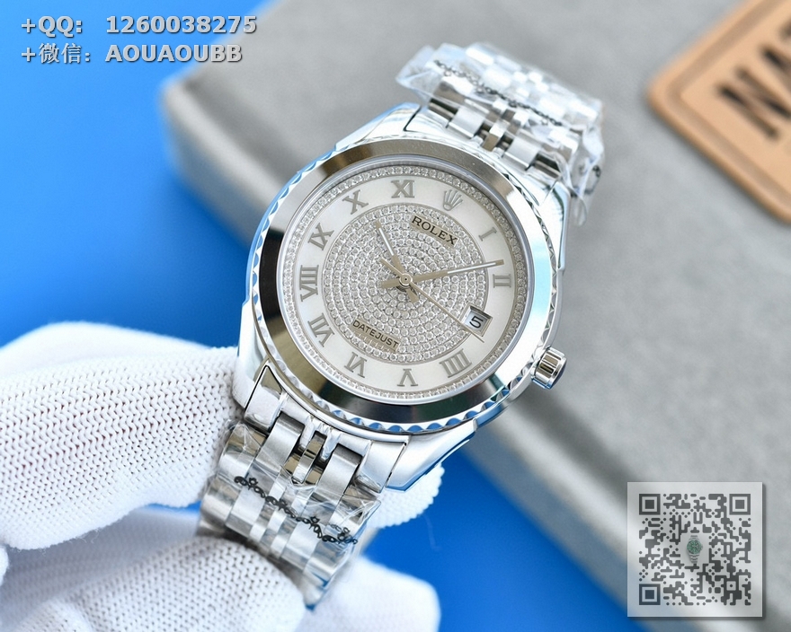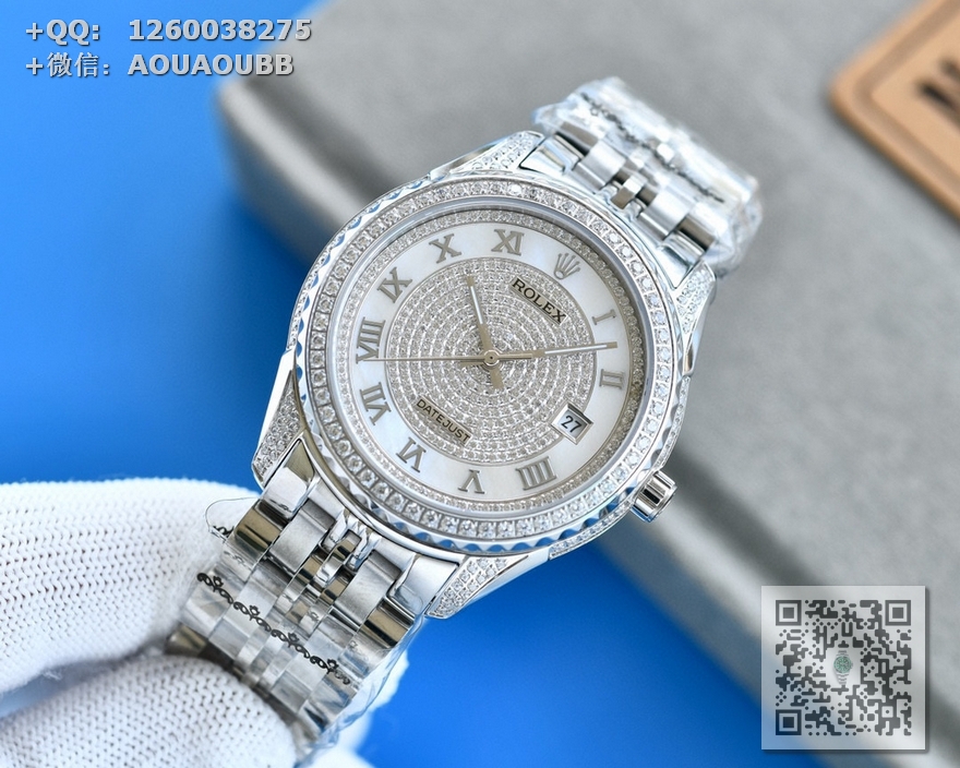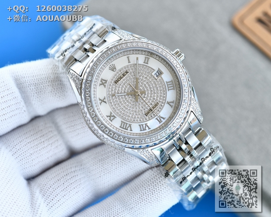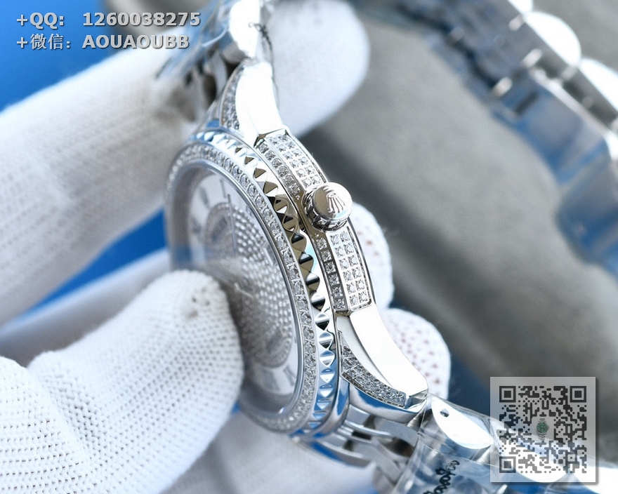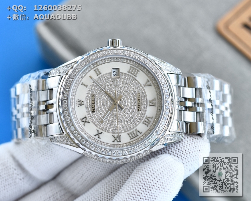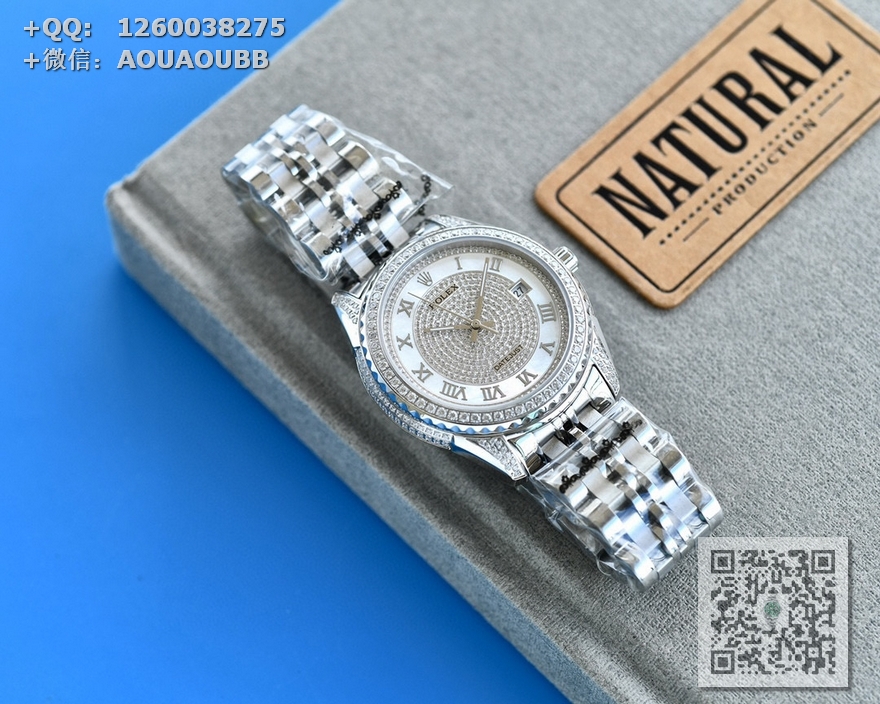 【产品介绍】劳力士ROLEX 新品推出 与时俱进 奢侈华丽 高贵大气,回头颜值率爆表百分百,高品质升级版表壳定制镶嵌施华洛满钻(可选购不带钻壳版本 精致高端 ) 搭配精准进口精工全自动机芯 ,提炼实心精钢 佩戴大气得体 赋予魅力十足 。直径40mm厚度10mm双层防刮原装蓝宝石玻璃! 盘面高级镶嵌施华洛钻搭配天然贝壳一体设计 , 采用进口精牛皮, 原装针扣 , 超强防水100米 。 劳力士Rolex 从来没有改变世界,而是把它留给戴它的人!以嘹亮的铿锵嗓音,震撼人心。以印证完美的追求,永恒不息!