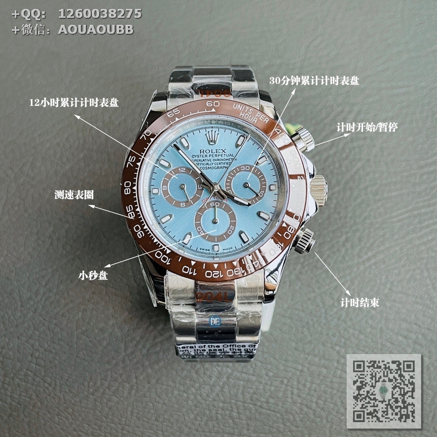 【产品介绍】AR迪通拿一表一码 NFC 全新防伪芯片感应保卡市场最低价,劳力士ROLEX宇宙计型迪通拿40mm 装载极致精准甲板机4130机芯藉恒动摆陀作双向上链,抗刮损蓝宝水晶镜面,316L精钢表壳铸造以及固定的外圈连计速刻度;中央时、分及计时秒;小秒设于6点位置,30分钟和12小时计时盘分别设于3点和9点位置;蚝式保险摺扣配5毫米易调链节伸展系统;原装保护胶罩,可检验圈口的外径尺寸是否与原装一致。超级复刻