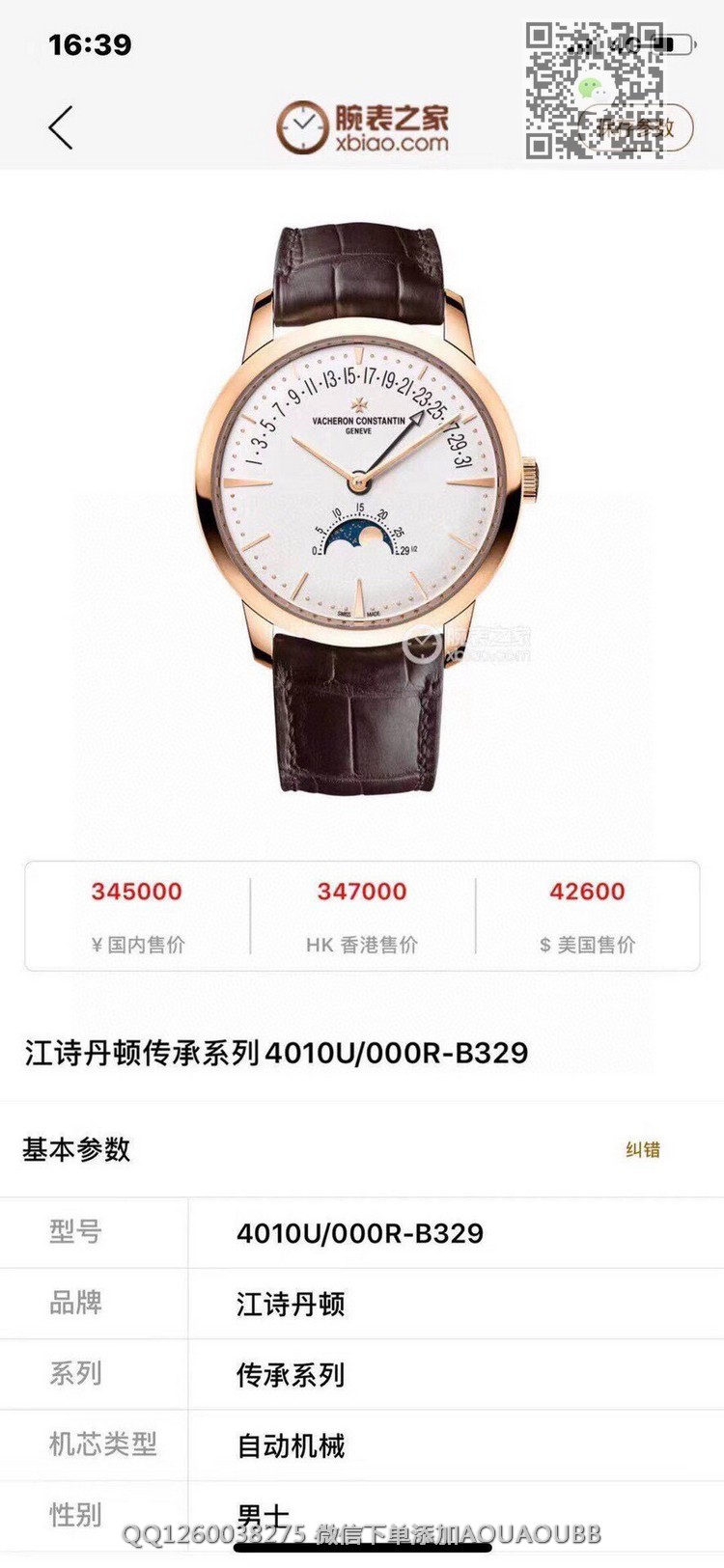 > 江诗丹顿V.Constan > MKS出品 江诗丹顿传承系列4010U/000R-B329男士月相全自动机械腕表 复刻正品cal.2460机芯 尺寸42.5mm 搭配意大利牛皮 原装折叠扣 【品牌】江诗丹顿【产品介绍】Vacheron constantin 经典之美品鉴江诗丹顿传承系列的星辰和逆跳日历款腕表型号4010U/000R-B329热销男士手表推荐承载复刻正品Cal.2460 R31L机芯直径42.5毫米搭配意大利小牛皮原装折叠扣【款式】男款【尺寸】42.5mm【表带】意大利牛皮表带【镜面】蓝宝石镜面【机芯】瑞士cal.2460全自动机械机芯【防水】50米【配件】原装盒,说明书,质保卡,吊牌,香港机打发票【品质检测】保证所有手表实物拍摄,所见即所得 , 手表发货前都会有严格检查测试,确保您收到的手表无质量问题
