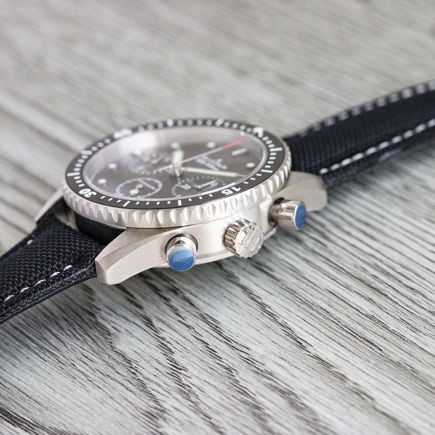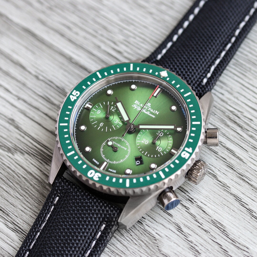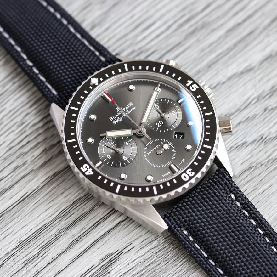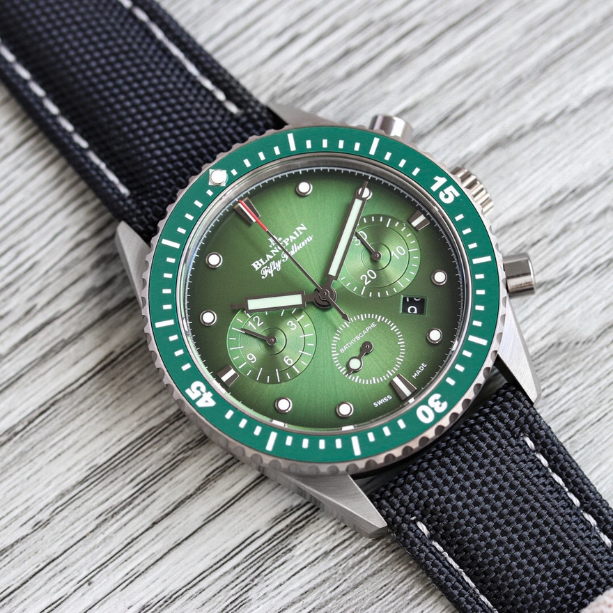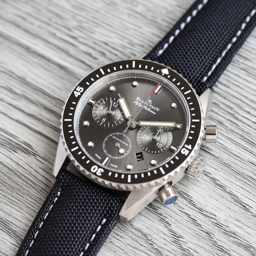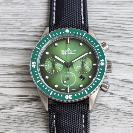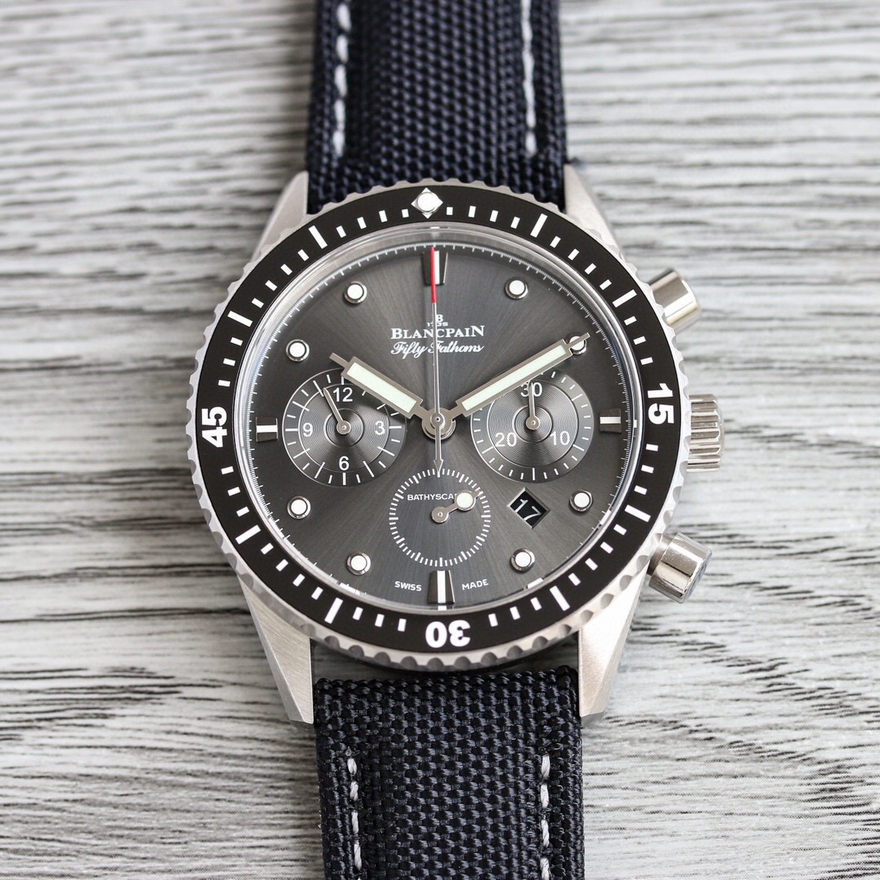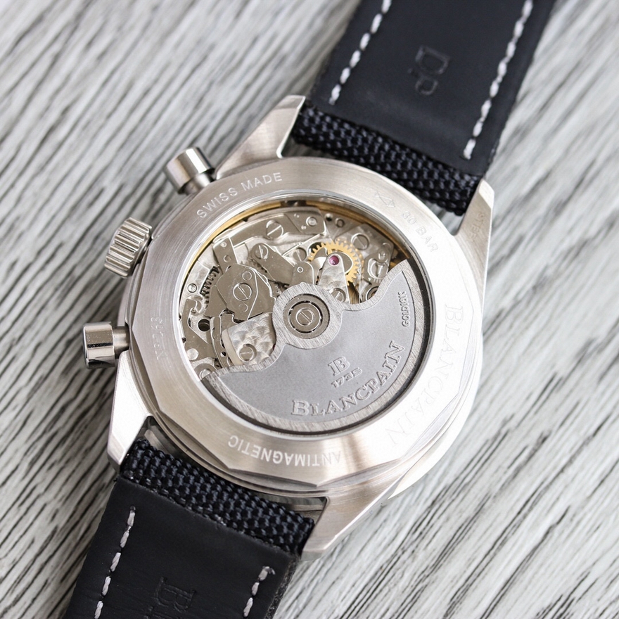 > 宝珀Blancpain > JB出品 宝珀五十噚系列5200-0153-B52A深潜器飞返计时码表男士全自动计时机械腕表 采用ETA7750机芯改宝珀自产Cal.1735机芯 直径:43.6mm 【品牌】宝珀【产品介绍】JB 期待已久的 宝珀 五十浔深潜器飞返计时码表问世了表壳牙圈对版,立体感强!永不退色,手感爽滑且不伤肌肤。表冠(表把)刻字工整,超神级工艺!表扣表扣内外打磨同样一丝不苟,扣针的针尖做了多面倒角打磨,完美还原正品细节!机芯采用ETA7750机芯改宝珀自产Cal.1735机芯。自动上链,计时功能!专业潜水,旋转表圈,且带有超强夜光功能,潜水时能做到精确计时!精致推荐男士多功能机械腕表 打造超真实实物图拍摄【款式】男款【尺寸】直径43.6mm【表带】尼龙纤维表带,内侧牛皮【镜面】蓝宝石镜面【机芯】ETA7750机芯改宝珀自产Cal.1735机芯【防水】50米【配件】原装盒,说明书,质保卡,吊牌,香港机打发票【品质检测】保证所有手表实物拍摄,所见即所得 , 手表发货前都会有严格检查测试,确保您收到的手表无质量问题