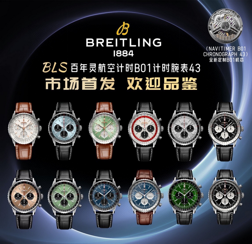 【产品介绍】BLS出品:百年灵全新航空计时腕表(Navitimer)问世70周年,百年灵以大胆色彩焕新演绎经典腕表。尺寸43mm,迭代款无疑是地道的航空计时腕表,带有环形飞行滑尺、棒状刻度、三个小表盘和凹槽表圈,实现轻松握持,BLS全新B01机芯