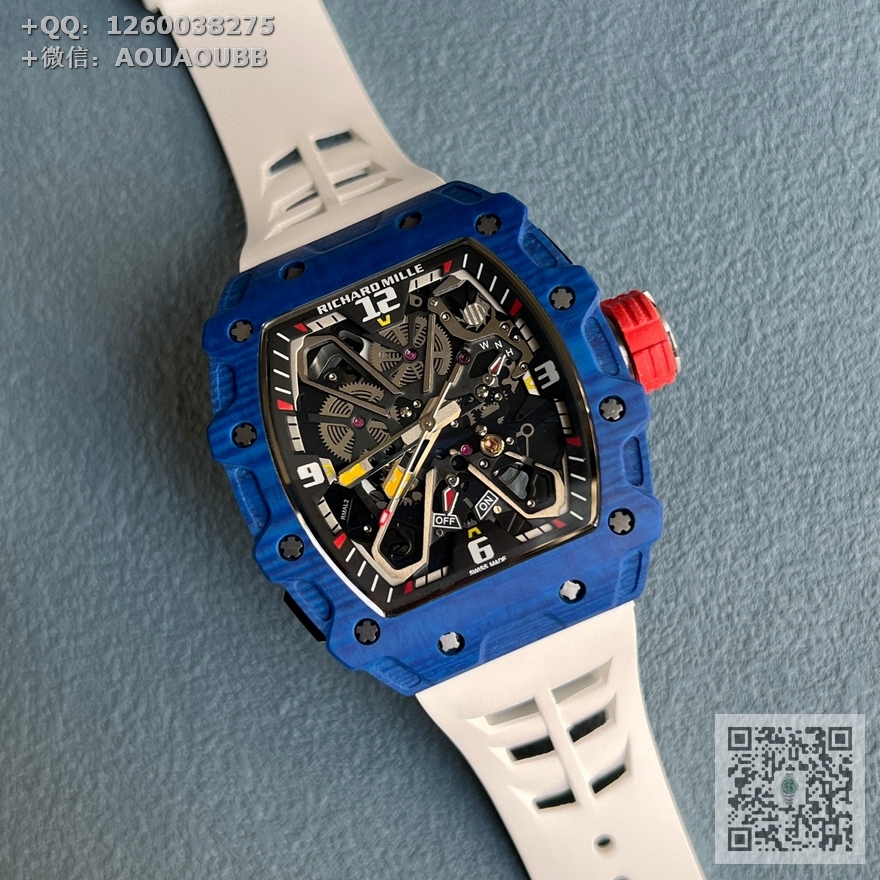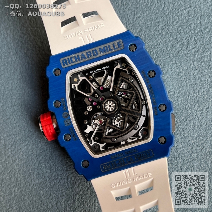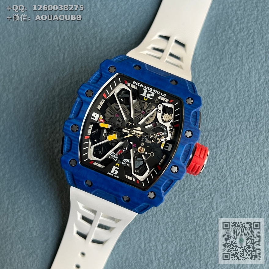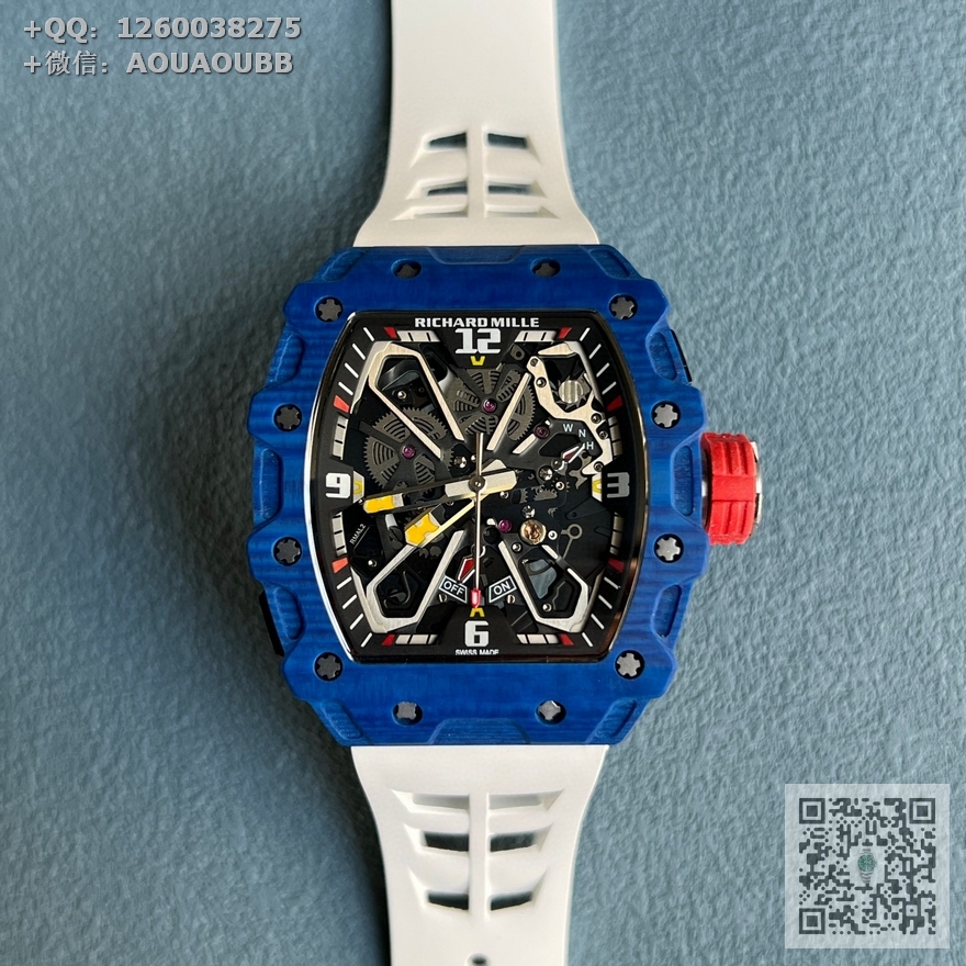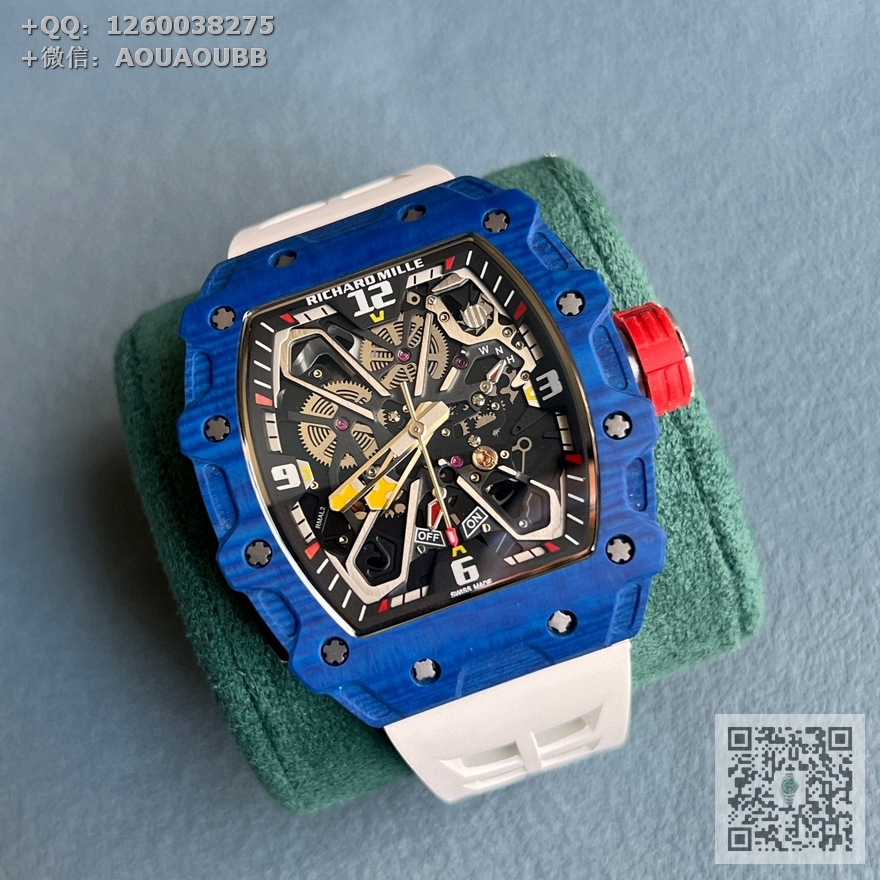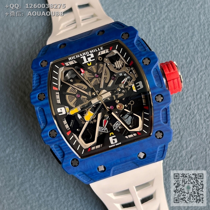 【产品介绍】2023最新爆款!顶级复刻还原正品【 RICHARD MILLE 】理查德米勒 RM35-03 NTPT黑白蓝全碳纤维系列 我们每一只壳全部是手工制作纹路,每一只壳纹路全部不同!!!特点:1:此复刻版表壳和底盖釆用高密度进口NTPT@碳纤维材料 2:碳纤维表壳表底和钛内胆两侧釆用同步CNC加工!使之壳上下与左右二侧毫无缝隙,3:表带釆用马来西亚进口纯橡胶材料制作而成,使之呈现出超韧性及柔软的感觉,市面上最强的RM专用橡胶带,做到能与正品互换鑫的效果4:依原版原理采用钛金属材料作为内胆及釆用最前沿的电火花精切缕空技术!机芯釆用进口seiko自动机芯5:表壳底上的字使用最前沿的超声波精准雕刻技术,使表底整体呈现岀高贵的质感6:玻璃釆用目前市面上最高硬度的蓝宝石水晶玻璃材料!!!