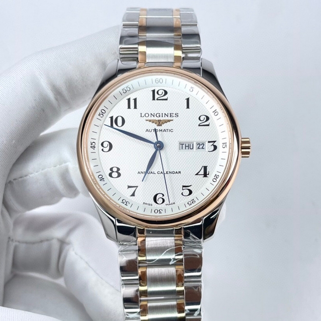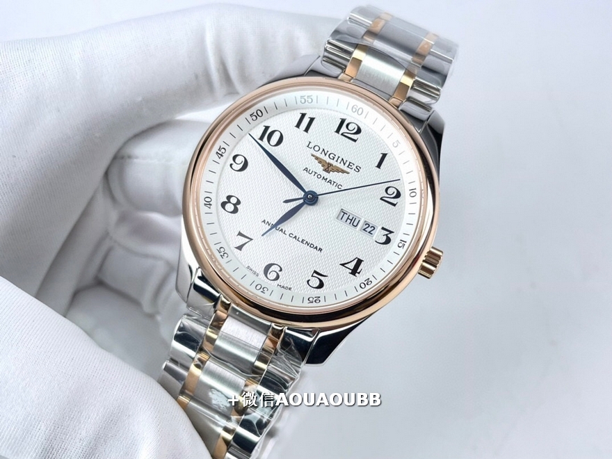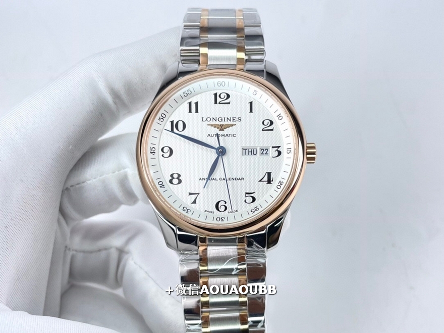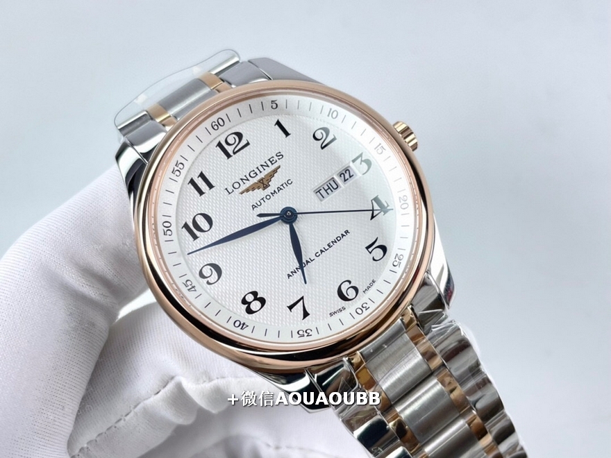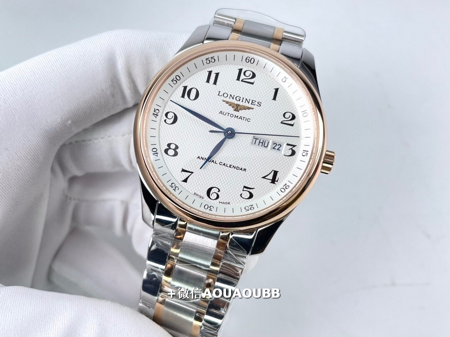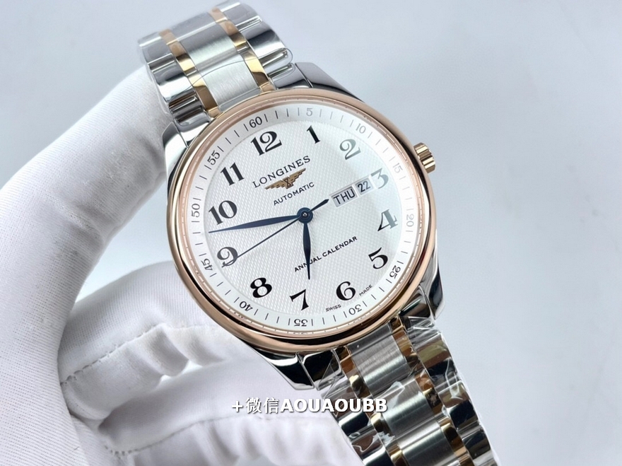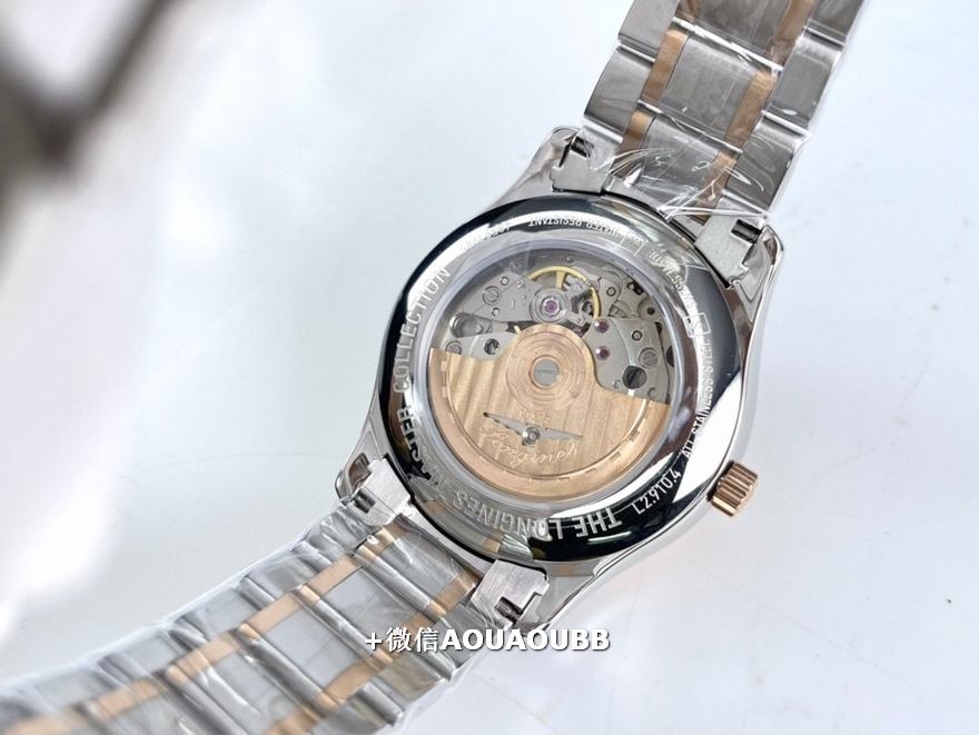 【品牌】浪琴【产品介绍】「浪琴名匠全新升级版」浪琴经典大三针入门款️同步原版40mm尺寸,独家定制底盖、吊牌、保卡3码合一表背遵从原装透底设计,装配全新重工镂空摆锤,同步原版L888.2精工刻字内置日本全新进口8205机芯,承诺无旧机1:1品质,镜面采用双卜蓝宝石玻璃,高清耐磨防刮字面、表针细节同步原版️【款式】男款【尺寸】直径40mm【表带】间玫瑰金精钢表带【镜面】蓝宝石镜面【机芯】原装进口8205机芯【防水】50米【配件】原装盒,说明书,质保卡,吊牌,香港机打发票【品质检测】保证所有手表实物拍摄,所见即所得 , 手表发货前都会有严格检查测试,确保您收到的手表无质量问题