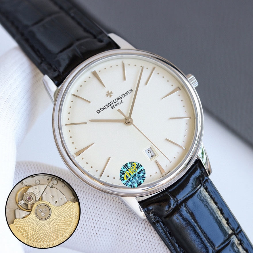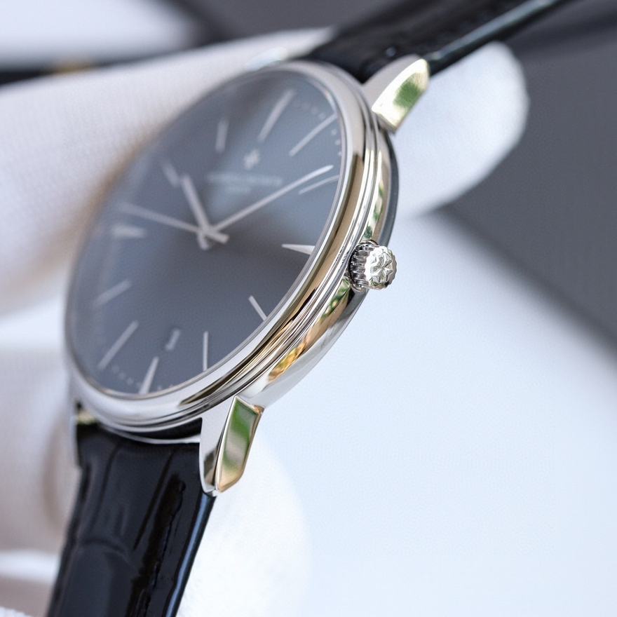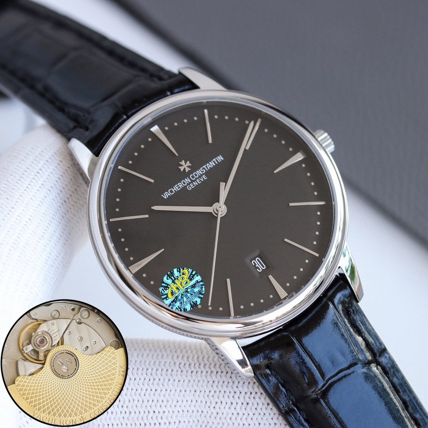 【品牌】江诗丹顿【产品介绍】【MKS最新力作】江诗丹顿传承系列经典腕表!细节方面:侧面和正面皆以抛光工艺润饰,在细心的大师精密打磨下,线条优美自然。在江诗 丹顿logo四周,采用经典的防滑纹路处理,细节体现品质! 指针采取弧形时针与分针同宽设计,更为精致纤巧!表镜前后两片蓝宝石玻璃镜面,均有防眩晕镀膜处理!表带采用进口意大利小牛皮表带,并搭配半马耳他十字型针式表扣。机芯采用进口9015 使机芯更加纤薄,更加稳定!追求完美,成就非凡!欢迎您的品鉴!【款式】男款【尺寸】40mmx9mm【表带】意大利牛皮表带【镜面】蓝宝石镜面【机芯】原装进口9015机芯【防水】50米【配件】原装盒,说明书,质保卡,吊牌,香港机打发票【品质检测】保证所有手表实物拍摄,所见即所得 , 手表发货前都会有严格检查测试,确保您收到的手表无质量问题