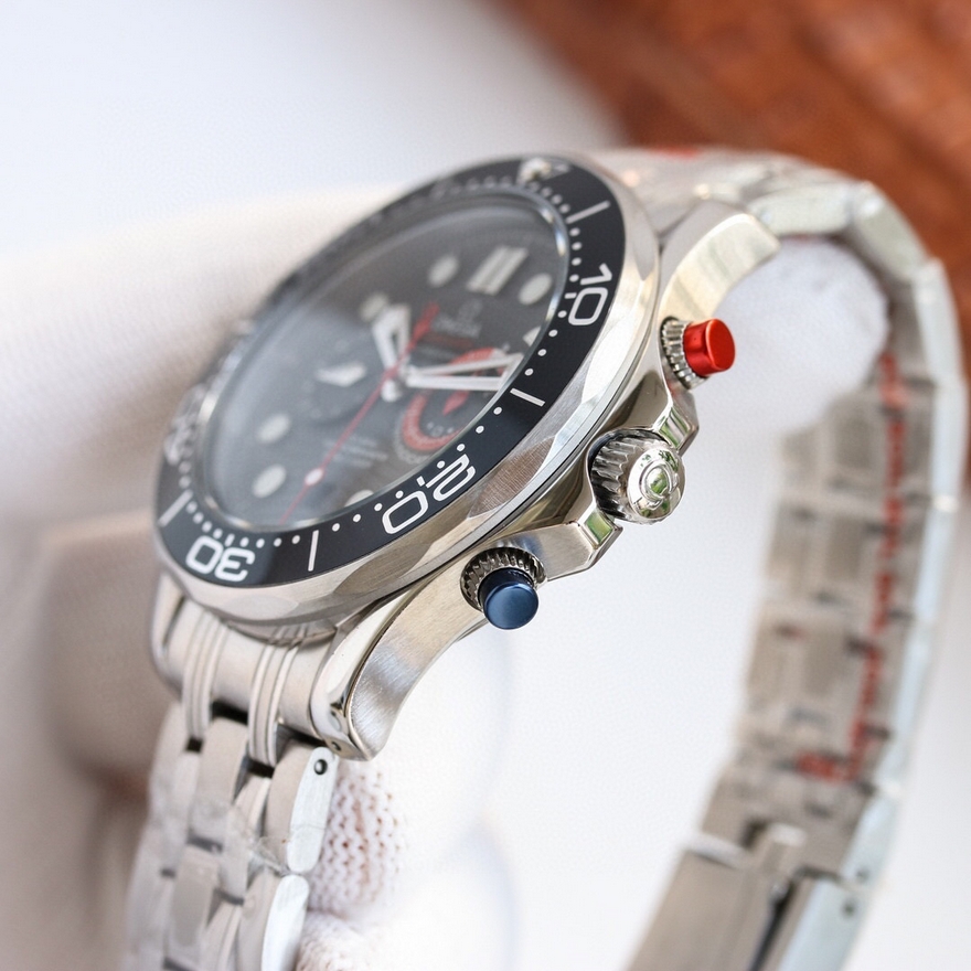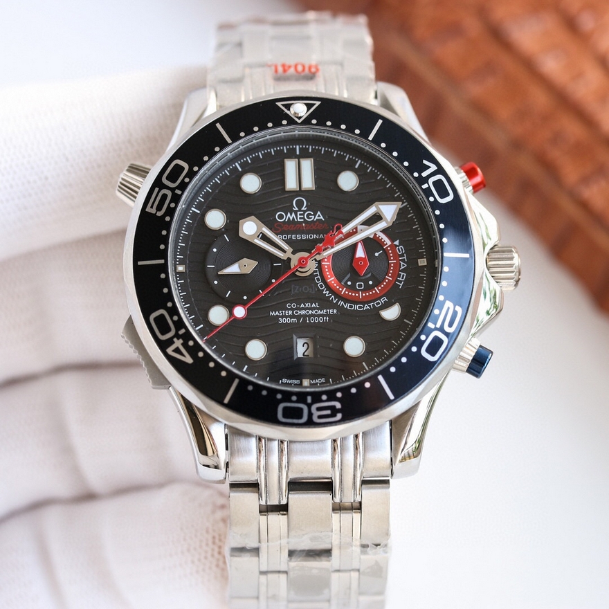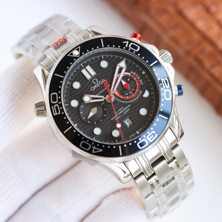 【产品介绍】新表OMEGA 推出 Seamaster Diver 300M America’s Cup Chronograph 美洲杯帆船赛主题计时码表 。第36届美洲杯帆船赛将于3月6日在奥克兰举办,赛事官方计时品牌 OMEGA 刚刚推出一枚主题腕表——「Seamaster Diver 300M America’s Cup Chronograph」,拥有计时锁、防滑按钮等特别适合帆船竞技的专业功能,红蓝白配色充满运动气息。新作采用44mm 抛光精钢表壳,搭配蓝色陶瓷表圈及白色珐琅潜水刻度。两个计时按钮分别包裹一层彩色橡胶,在海上潮湿环境中也能提供出色操作性能。