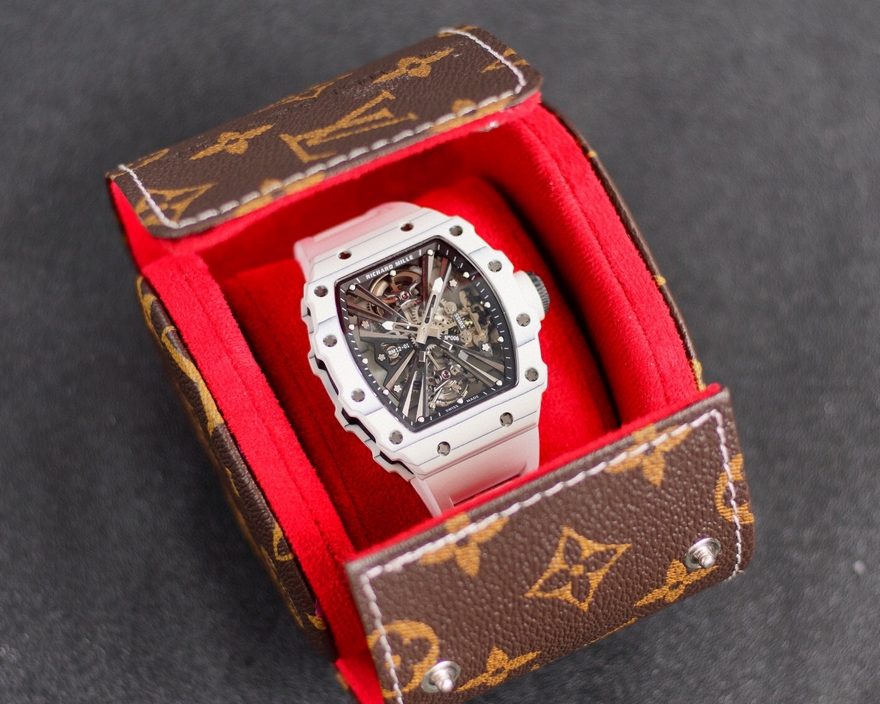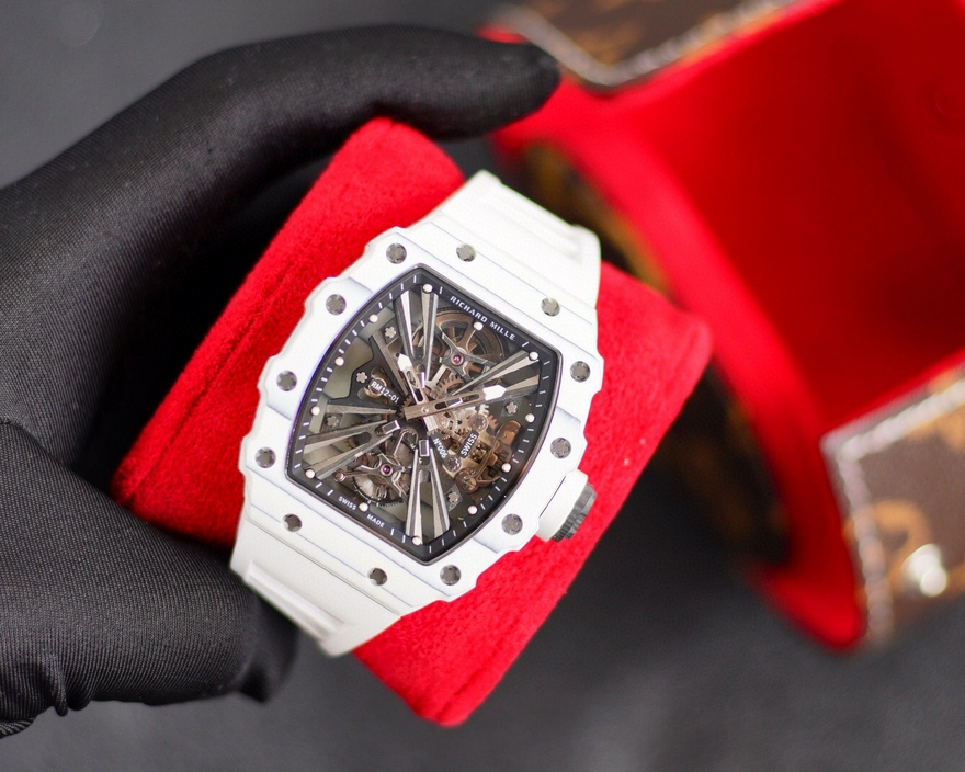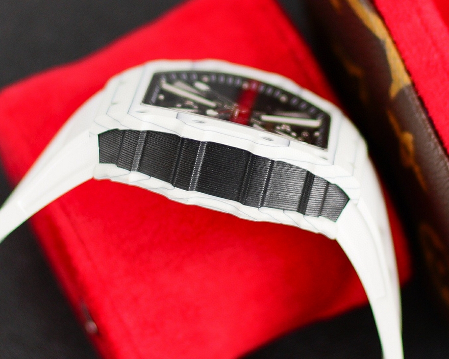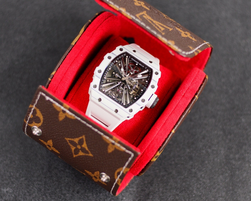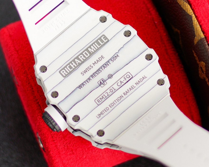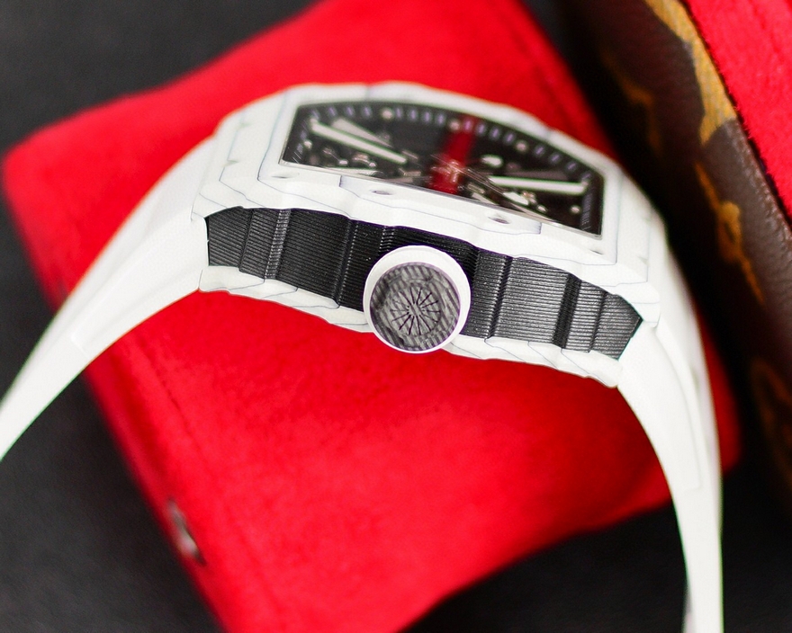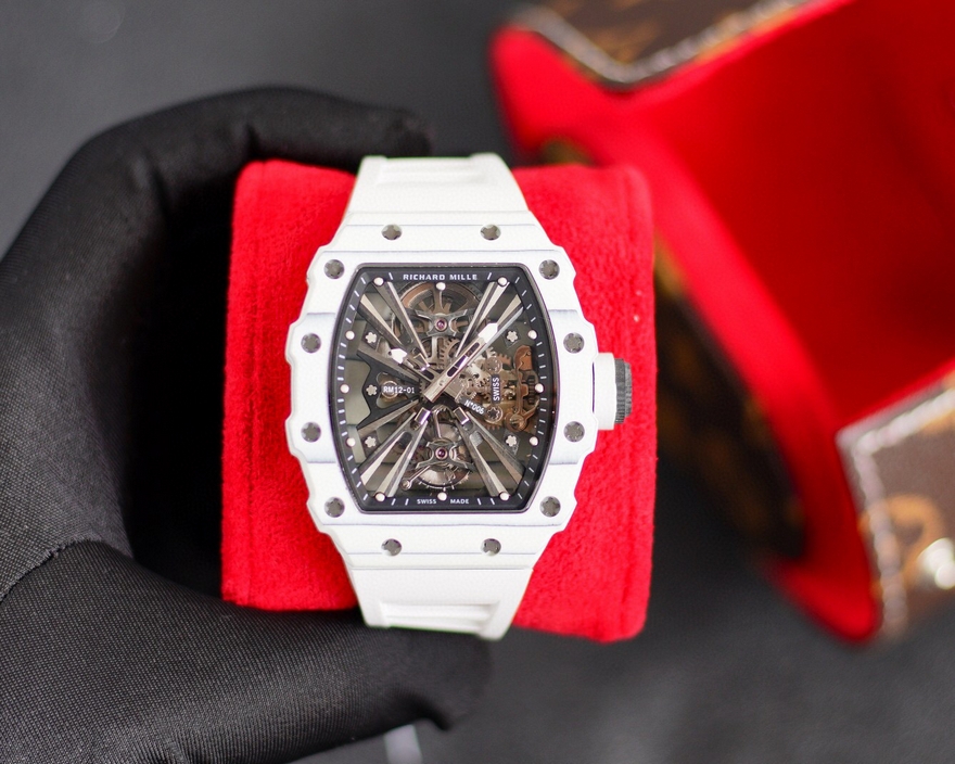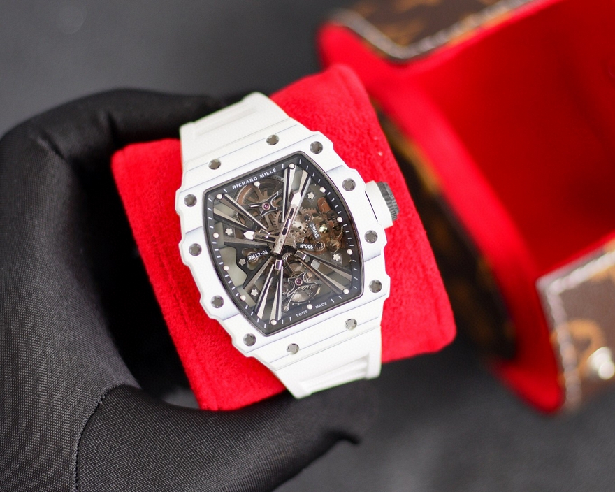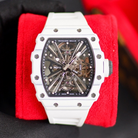 【品牌】理查德米勒【产品介绍】重新演绎[理查德米勒]RM12-01 NTPT陀飞轮非凡运动镂空流线型腕表 Richard Mille重新回顾了传奇性的RM012机芯,将材料方面的创新与钟表建筑融为一体。RM12-01陀飞轮腕表以RM12-01陀飞轮腕表为特色,并在美洲的专卖店独家提供了多种不同的限量版。新款RM12-01陀飞轮腕表的表壳结构遵循三方原理,将所有表壳组合在一起。机芯的线条灵感来自建筑设计的结构形式,管状的倾斜结构提供了最佳的刚度和扭转刚度,并具有出色的耐热性和耐腐蚀性。底板的功能与机芯和桥的功能独特地结合在一起,形成了技术上连贯且在视觉上密不可分的整体。机芯通过打磨,缎面精加工,圆形精加工和高抛光度完美结合,令人自豪地展示出来。它的一体式底板受到赛车底盘的启发,并提高了刚度和抗冲击性,极具特色的是,包围发条盒,大轮和陀飞轮的镂空桥的锐利流线型曲线散发至手动上链机芯的末端。RM12-01限量版表壳尺寸约为51x42x15mm,并提供黑色碳TPT,红色石英TPT,白色石英TPT。【款式】男款【尺寸】51x42x15mm【表带】帆布编织表带【镜面】蓝宝石镜面【机芯】RM012陀飞轮机芯【防水】50米防水【配件】原装盒,说明书,质保卡,吊牌,香港机打发票【品质检测】保证所有手表实物拍摄,所见即所得 , 手表发货前都会有严格检查测试,确保您收到的手表无质量问题
