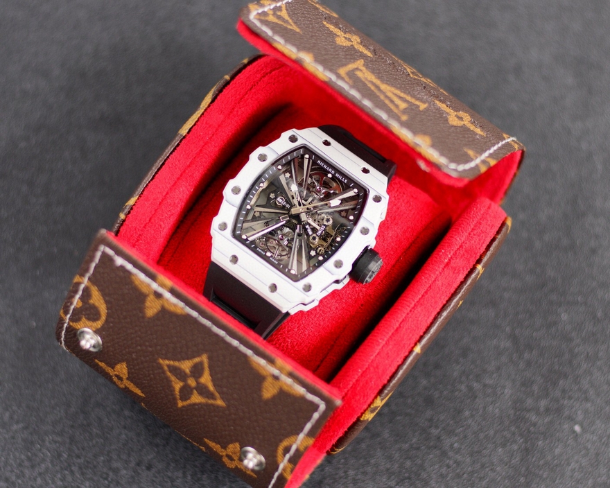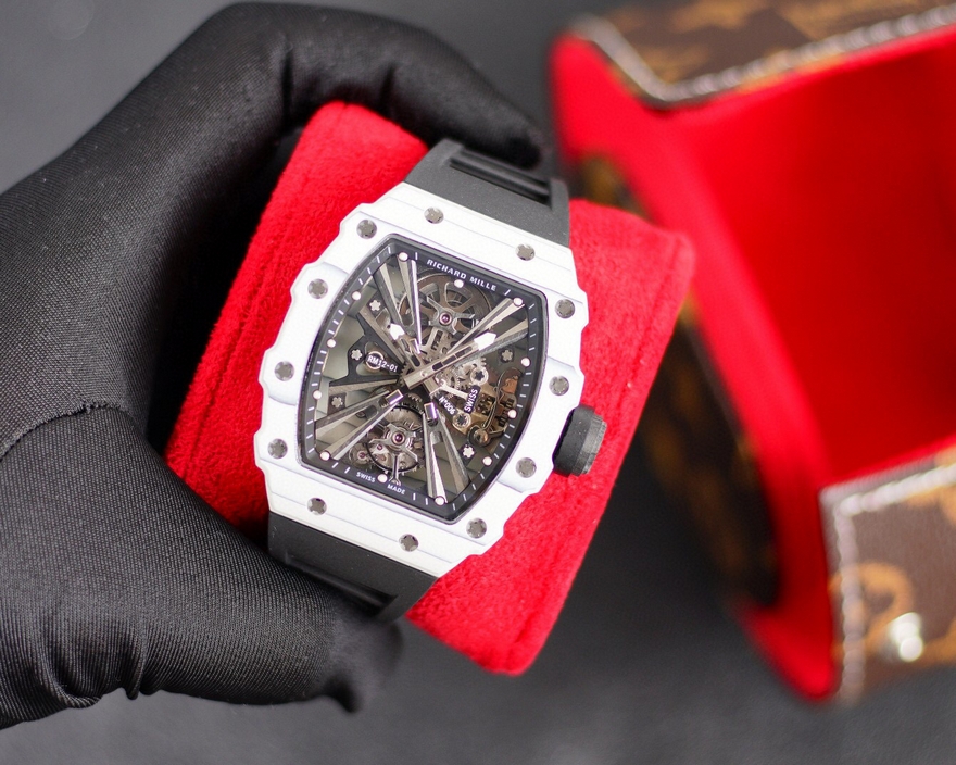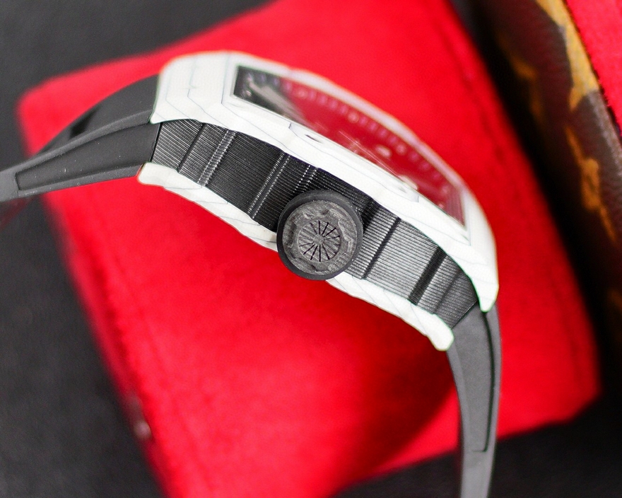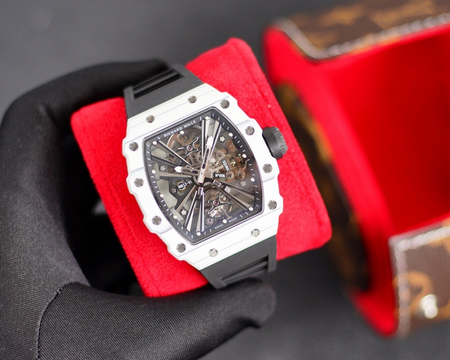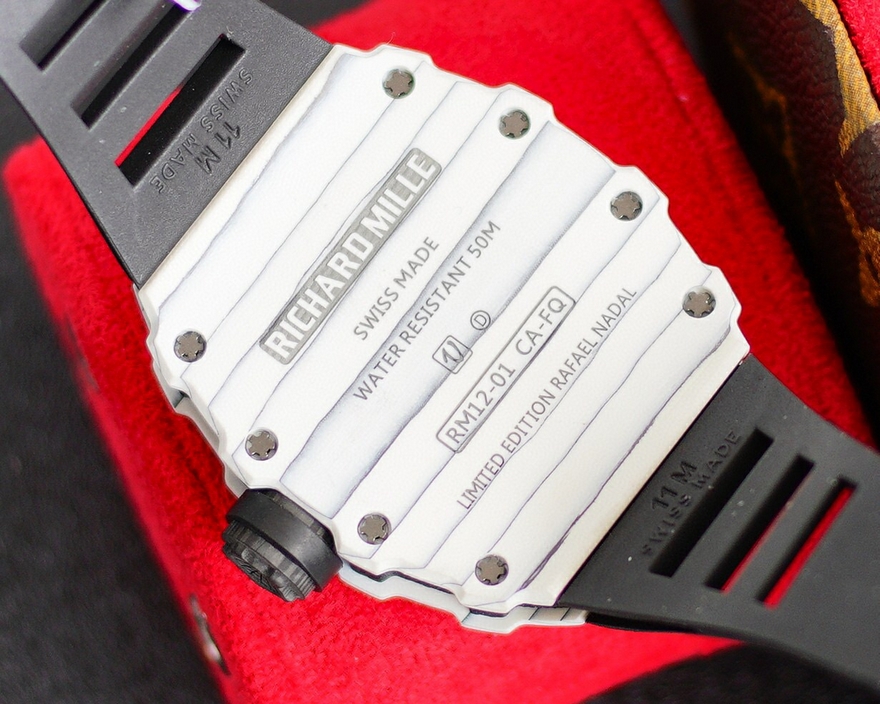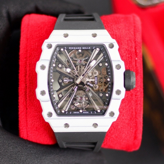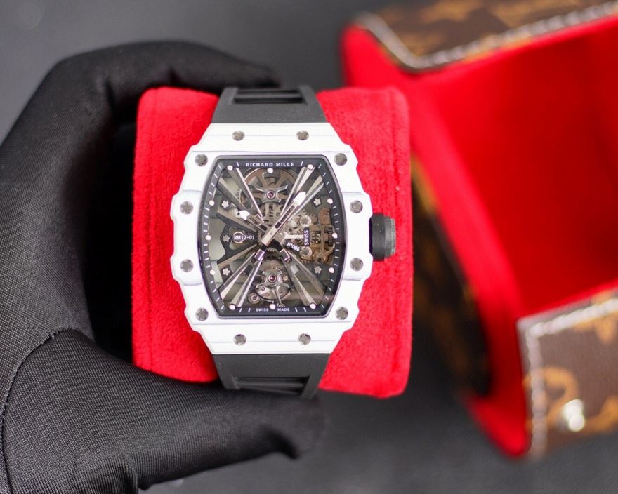 【品牌】理查德米勒【产品介绍】重新演绎[理查德米勒]RM12-01 NTPT陀飞轮非凡运动镂空流线型腕表 Richard Mille重新回顾了传奇性的RM012机芯,将材料方面的创新与钟表建筑融为一体。RM12-01陀飞轮腕表以RM12-01陀飞轮腕表为特色,并在美洲的专卖店独家提供了多种不同的限量版。新款RM12-01陀飞轮腕表的表壳结构遵循三方原理,将所有表壳组合在一起。机芯的线条灵感来自建筑设计的结构形式,管状的倾斜结构提供了最佳的刚度和扭转刚度,并具有出色的耐热性和耐腐蚀性。底板的功能与机芯和桥的功能独特地结合在一起,形成了技术上连贯且在视觉上密不可分的整体。机芯通过打磨,缎面精加工,圆形精加工和高抛光度完美结合,令人自豪地展示出来。它的一体式底板受到赛车底盘的启发,并提高了刚度和抗冲击性,极具特色的是,包围发条盒,大轮和陀飞轮的镂空桥的锐利流线型曲线散发至手动上链机芯的末端。RM12-01限量版表壳尺寸约为51x42x15mm,并提供黑色碳TPT,红色石英TPT,白色石英TPT。【款式】男款【尺寸】51x42x15mm【表带】橡胶表带【镜面】蓝宝石镜面【机芯】RM012陀飞轮机芯【防水】50米防水【配件】原装盒,说明书,质保卡,吊牌,香港机打发票【品质检测】保证所有手表实物拍摄,所见即所得 , 手表发货前都会有严格检查测试,确保您收到的手表无质量问题
