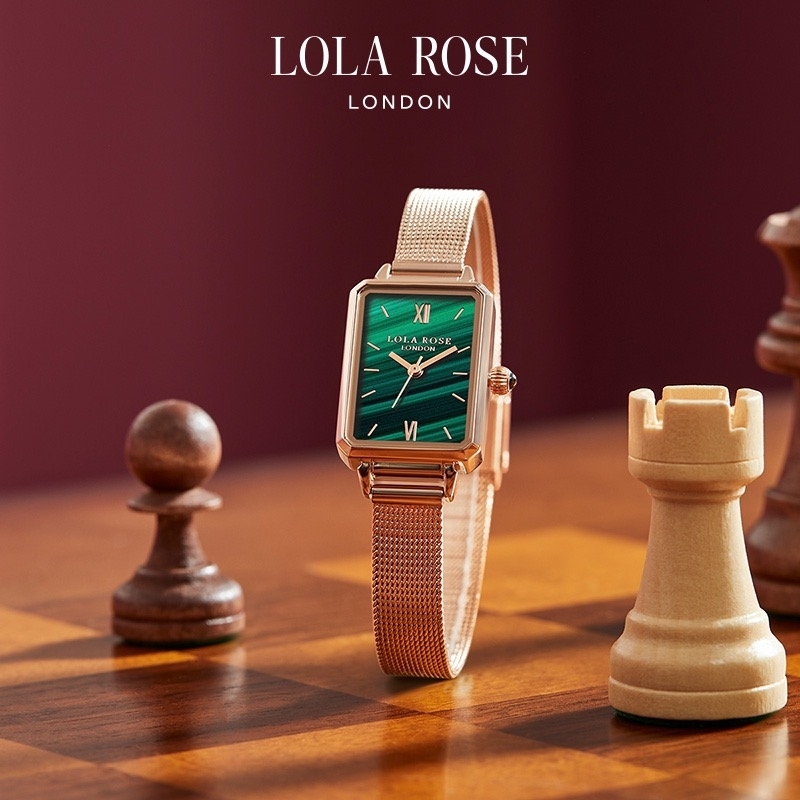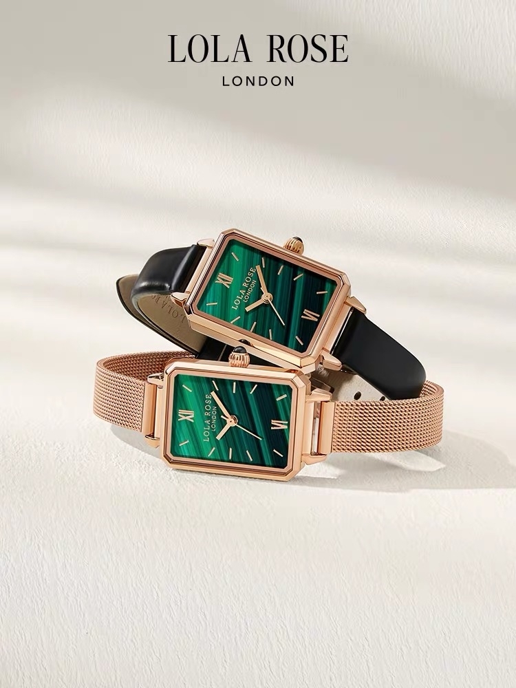 【产品介绍】 种草小红书爆款。LolaRose英国小众简约文艺小表盘ins孔雀石纹理 色彩大胆出色,浓烈却干净治愈,给人自由的时空感,标志性的色彩搭配经久耐用的细长的表带,典型的时尚式新花样,腕表采用原装机芯,走时精准无误,配全套包装。