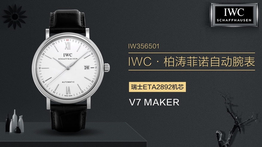 V7出品 IWC万国表柏涛菲诺系列IW356501男士全自动机械腕表 搭载原装瑞士ETA2892A2机芯/顶级美洲鳄鱼皮 尺寸40mmx9.2mm