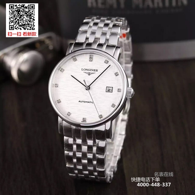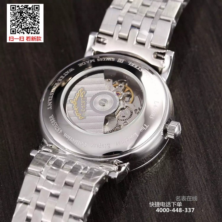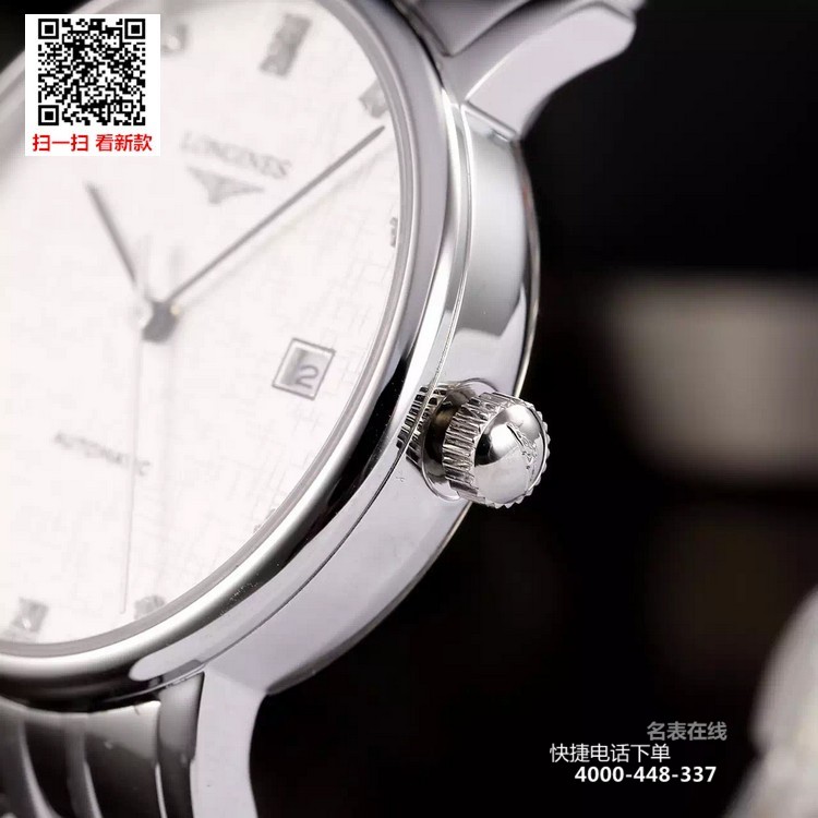 {品牌}:浪琴{款式}:男款/女款{尺寸}:男直径约40mm;女款直径约30mm{表带}:精钢表带{镜面}:蓝宝石抗划镜面{机芯}:瑞士ETA全自动机械机芯{防水}:50米{配件}:原装盒,说明书,质保卡,吊牌,香港机打发票