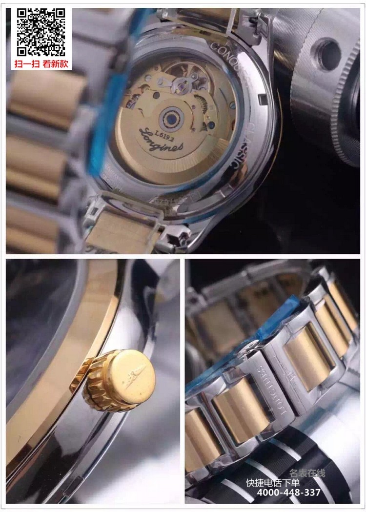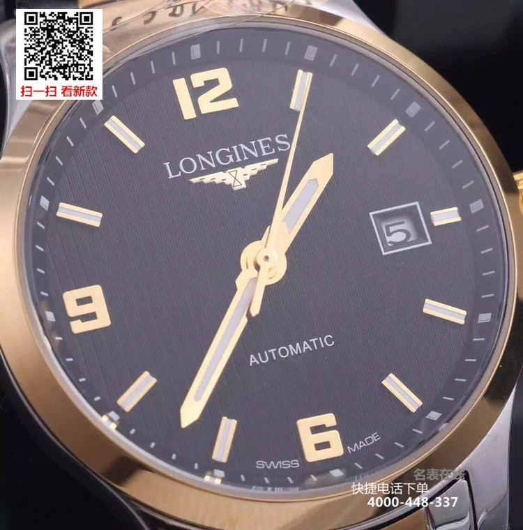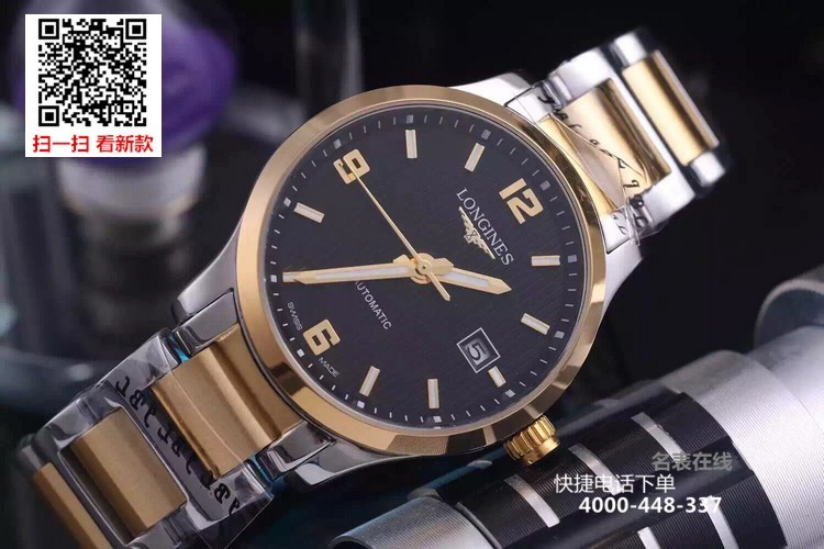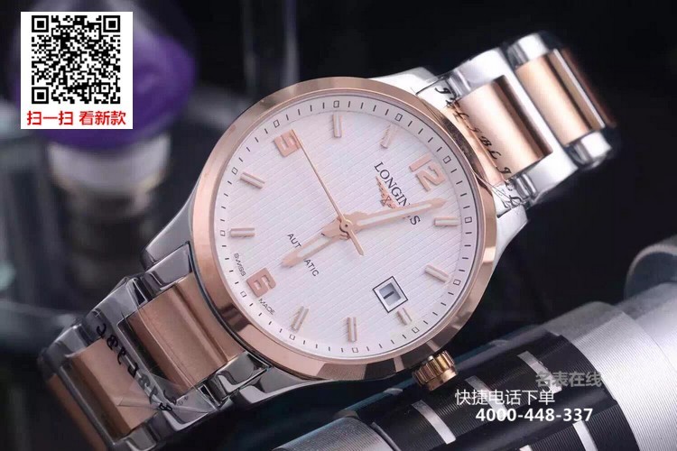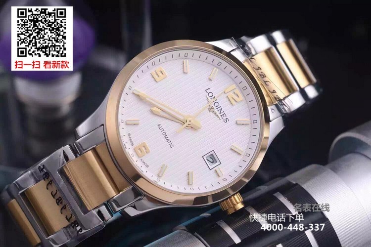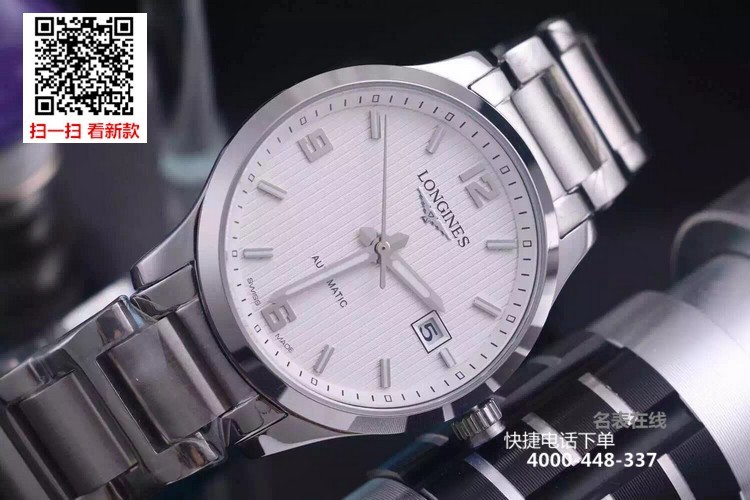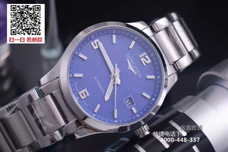 {品牌}:浪琴{款式}:男款{尺寸}:直径约41mm{表带}:精钢/真皮表带{镜面}:蓝宝石抗划镜面{机芯}:瑞士ETA全自动机械机芯{防水}:50米{配件}:原装盒,说明书,质保卡,吊牌,香港机打发票