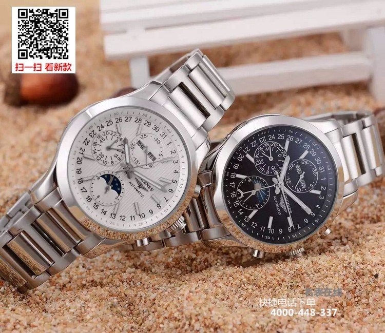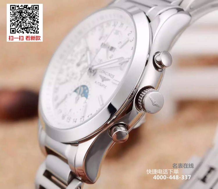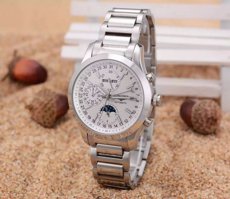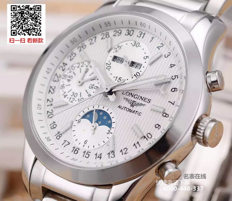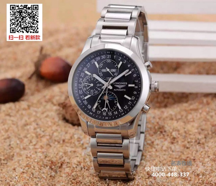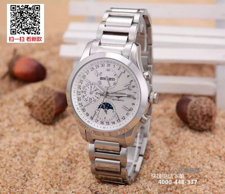 {品牌}:浪琴{款式}:男款{尺寸}:男直径约40mm{表带}:精钢表带{镜面}:蓝宝石抗划镜面{机芯}:瑞士ETA全自动机械机芯{防水}:50米{配件}:原装盒,说明书,质保卡,吊牌,香港机打发票