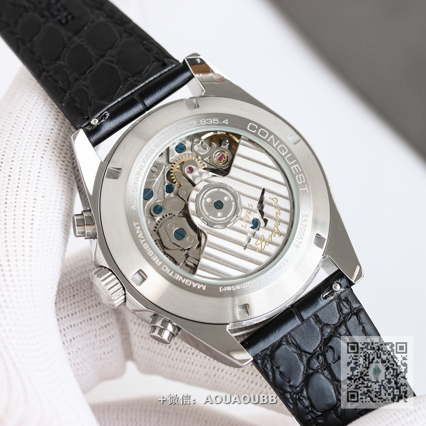 【品牌】浪琴【产品介绍】TW浪琴 LONGINES-浪琴康卡斯悦动计时系列浪琴熊猫眼机芯采用顶级7750三位小秒,九位计分,六位计12时,功能全面对版,品质保证(非小厂改装机芯)品质胶带表带 用时半年用原版开模与原版可互通互换太阳纹表盘,唱片盘小盘,cnc字面钉,细节对版定制超强计速陶瓷圈,贴合度完美。大厂正批花指针,时分针批花立体视觉超强42表盘计时系列黄金尺寸本次手表的特点玻璃和表壳衔接的地方 完全透明,看不到任何白边玻璃边缘弧形跟原装一致玻璃凸出陶瓷圈高度 跟原装一样陶瓷圈使用clean 字体更加立体圆润陶瓷圈边缘有轻微圆角表盘字钉有圆角打磨夜光填充高度适中 亮度也ok字体印刷立体黑色小圈尺寸与原装一致表带 原设计一致,材质一致表带/表壳 配合 无缝隙品质保证【款式】男款【尺寸】直径42mm【表带】精钢表带/意大利牛皮/橡胶表带 三种表带类型可供选择 三选一【镜面】蓝宝石镜面【机芯】7750机芯【防水】50米【配件】原装盒,说明书,质保卡,吊牌,香港机打发票【品质检测】保证所有手表实物拍摄,所见即所得 , 手表发货前都会有严格检查测试,确保您收到的手表无质量问题