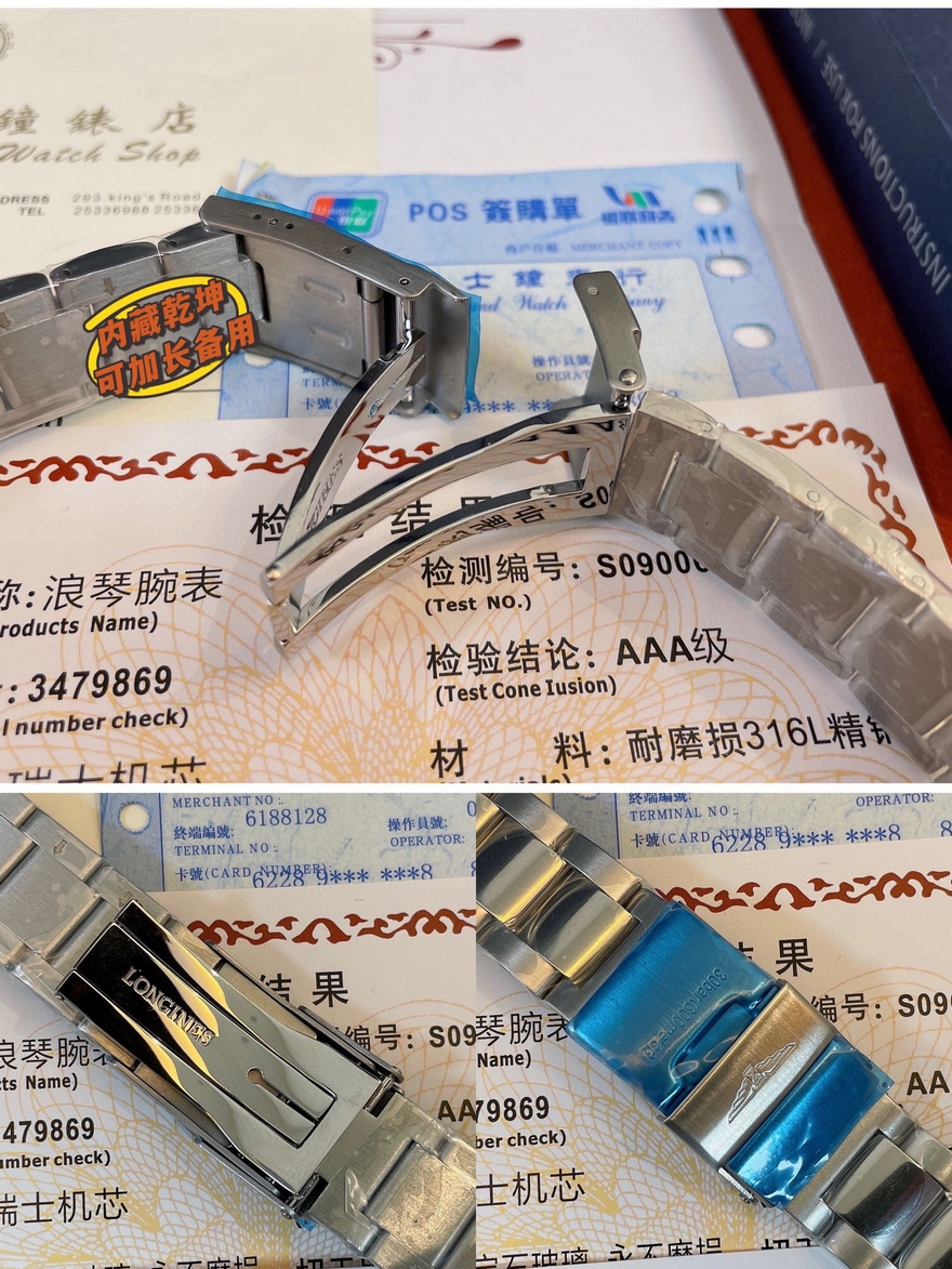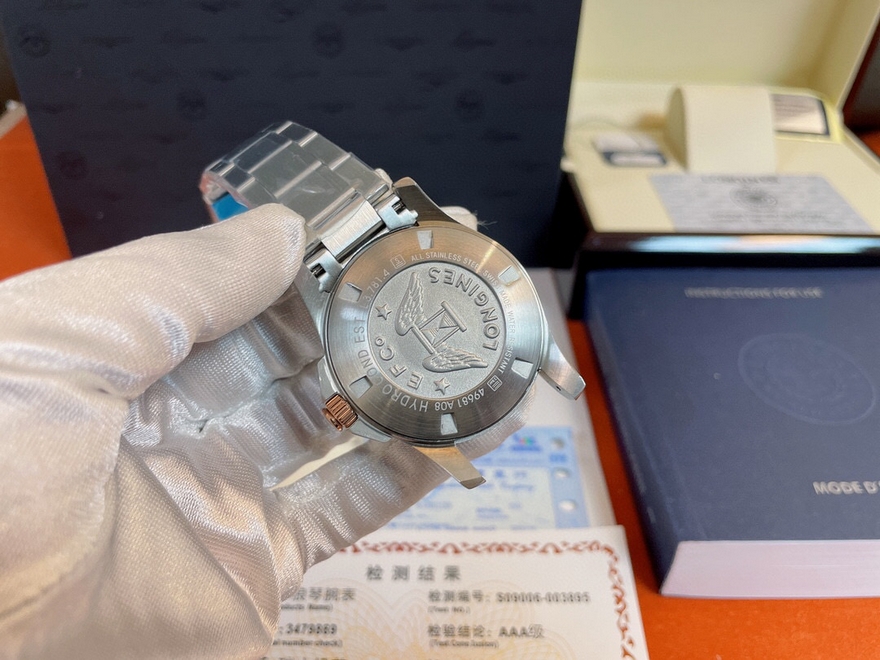 【品牌】浪琴【产品介绍】浪琴 康卡斯运动系列表盘直径41mm 厚度12mm 蓝宝石防刮花玻璃经典设计元素,太阳饰纹表盘搭配醒目抛光指针,细节锱铢必较,316精钢表带➕双折叠式的安全保险扣搭配进口全自动机械机芯,无需顾虑走时误差,质量王者保证,零返修【款式】男款【尺寸】41mmx12mm【表带】精钢表带【镜面】蓝宝石镜面【机芯】原装进口821A机芯【防水】50米【配件】原装盒,说明书,质保卡,吊牌,香港机打发票【品质检测】保证所有手表实物拍摄,所见即所得 , 手表发货前都会有严格检查测试,确保您收到的手表无质量问题
