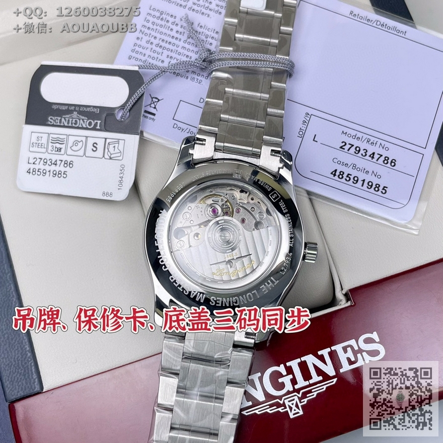 浪琴经典大三针入门款️同步原版40mm尺寸,独家定制底盖、吊牌、保卡3码合一