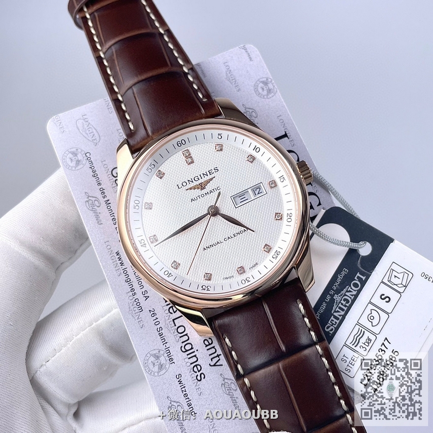 【品牌】浪琴【产品介绍】「浪琴名匠全新升级版」浪琴经典大三针入门款️同步原版40mm尺寸,独家定制底盖、吊牌、保卡3码合一表背遵从原装透底设计,装配全新重工镂空摆锤,同步原版L888.2精工刻字内置日本全新进口8205机芯,承诺无旧机1:1品质,镜面采用双卜蓝宝石玻璃,高清耐磨防刮字面、表针细节同步原版️【款式】男款【尺寸】直径40mm【表带】意大利牛皮表带【镜面】蓝宝石镜面【机芯】原装进口8205机芯【防水】50米【配件】原装盒,说明书,质保卡,吊牌,香港机打发票【品质检测】保证所有手表实物拍摄,所见即所得 , 手表发货前都会有严格检查测试,确保您收到的手表无质量问题
