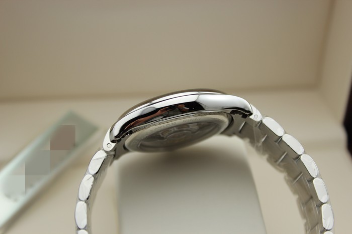 - 表盘:银色“麦粒”饰纹 运行时间:漆绘阿位伯数字 指针:蓝钢指针